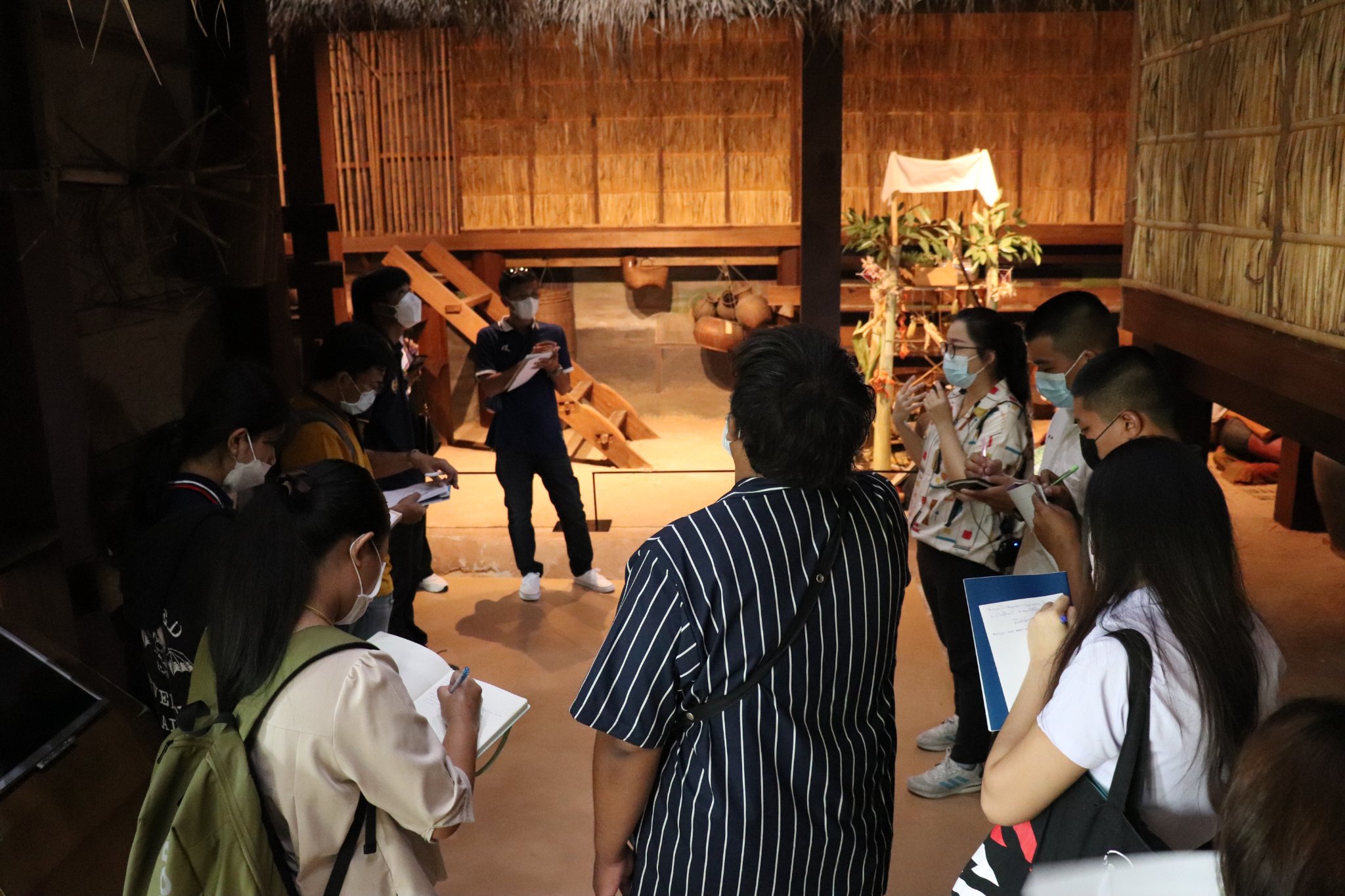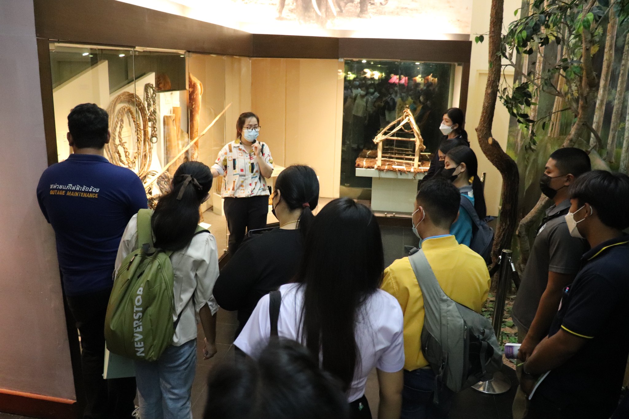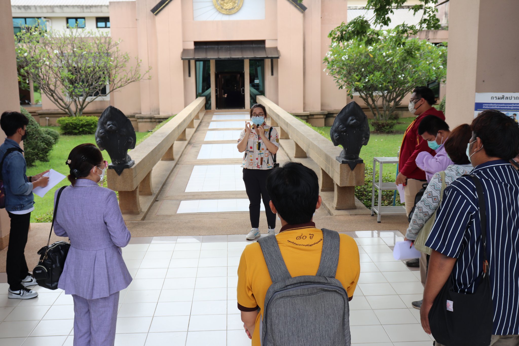 วันเสาร์ที่ ๒ กรกฎาคม พ.ศ. ๒๕๖๕ เวลา ๐๙.๐๐ น. นักศึกษารายวิชาความงามของชีวิต มหาวิทยาลัยราชภัฏสุรินทร์ จำนวน ๓๐ คน อาจารย์จำนวน ๑ คน เข้าเยี่ยมชมพิพิธภัณฑสถานแห่งชาติ สุรินทร์ โดยปฏิบัติตามการเฝ้าระวังการแพร่ระบาดของเชื้อโควิด - ๑๙ อย่างเคร่งครัด โดยมีนางสาวกมลรัตน์ ชวนสบาย ภัณฑารักษ์ปฏิบัติการ ให้การต้อนรับและบรรยายนำชม