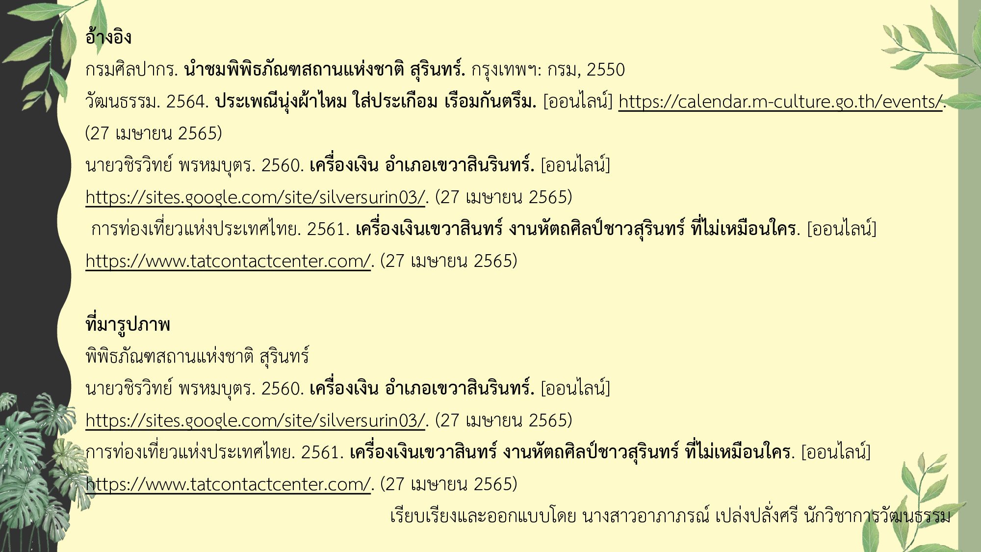 รัว รืง มืง สะเร็น ประจำเดือกรกฎาคม ๒๕๖๕ เรื่อง "ประเกือม เครื่องเงินสุรินทร์"