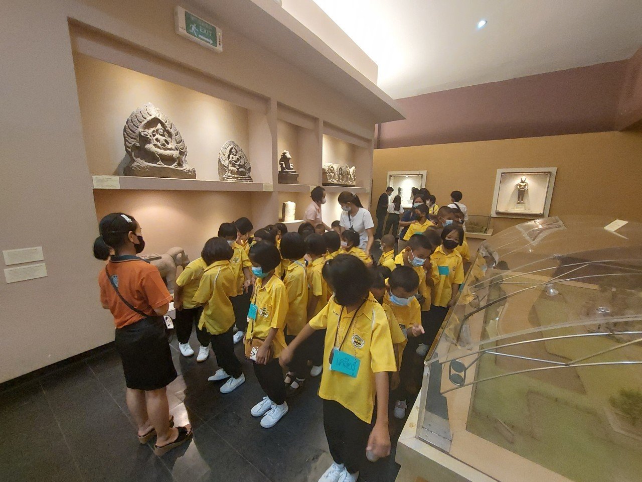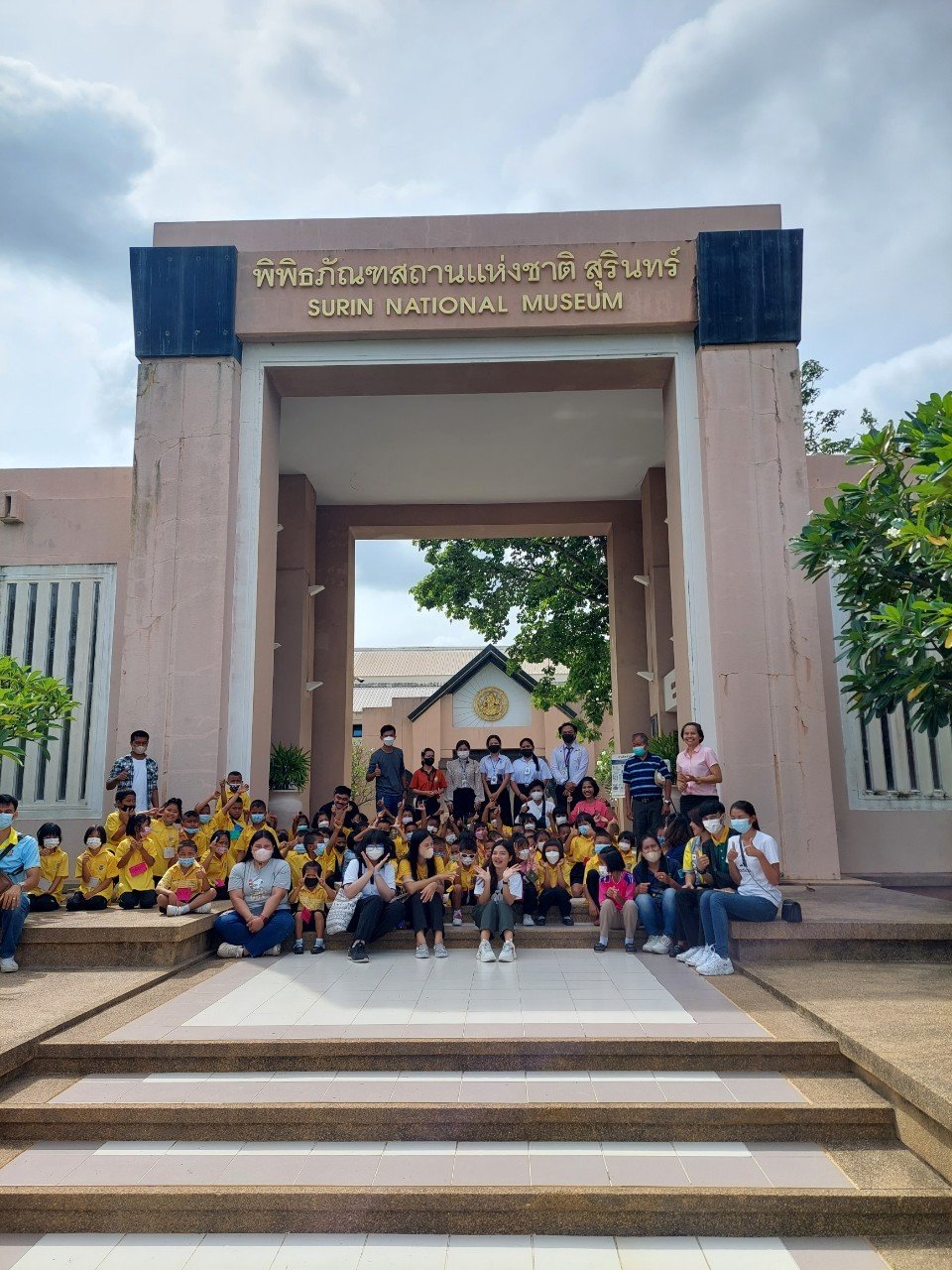 วันพฤหัสบดีที่ ๗ กรกฎาคม พ.ศ.๒๕๖๕ เวลา ๐๙.๓๐ น. นักเรียนชั้นอนุบาล ๑ ถึงชั้นประถมศึกษาที่ ๓ โรงเรียนบ้านยาง อำเภอรัตนบุรี จังหวัดสุรินทร์ จำนวน ๗๑ คน คุณครูจำนวน ๑๙ คน เข้าเยี่ยมชมพิพิธภัณฑสถานแห่งชาติ สุรินทร์ โดยแบ่งการบรรยายนำชมออกเป็น ๒ กลุ่มย่อย เพื่อป้องกันการแพร่ระบาดของเชื้อโควิด - ๑๙ โดยมีพนักงานประจำห้องและนักศึกษาฝึกประสบการณ์ ให้การต้อนรับและบรรยายนำชม