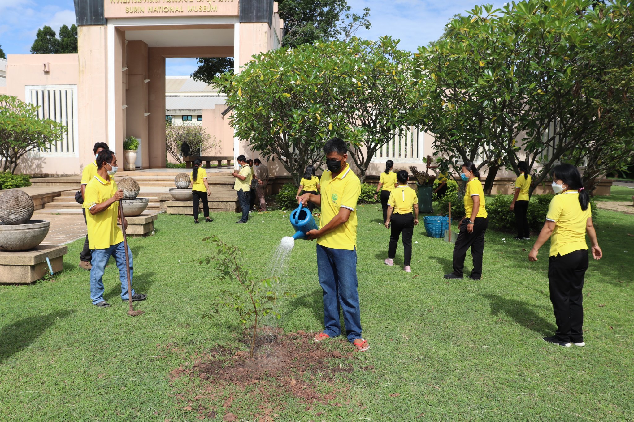 วันศุกร์ที่ ๒๒ กรกฎาคม พ.ศ. ๒๕๖๕ เวลา ๑๕.๐๐ น. นางปริญญา สุขใหญ่ หัวหน้าพิพิธภัณฑสถานแห่งชาติ สุรินทร์ พร้อมข้าราชการ พนักงานราชการและเจ้าหน้าที่พิพิธภัณฑสถานแห่งชาติ สุรินทร์ ได้จัดกิจกรรมถวายพระพรชัยมงคลเฉลิมพระเกียรติพระบาทสมเด็จพระปรเมนทรรามาธิบดีศรีสินทรมหาวชิราลงกรณ พระวชิรเกล้าเจ้าอยู่หัว เนื่องในโอกาสวันเฉลิมพระชนมพรรษา ๒๘ กรกฎาคม ๒๕๖๕ และจัดกิจกรรมจิตอาสาปลูกต้นไม้(ต้นรวงผึ้ง) และทำความสะอาดบริเวณโดยรอบพิพิธภัณฑสถานแห่งชาติ สุรินทร์