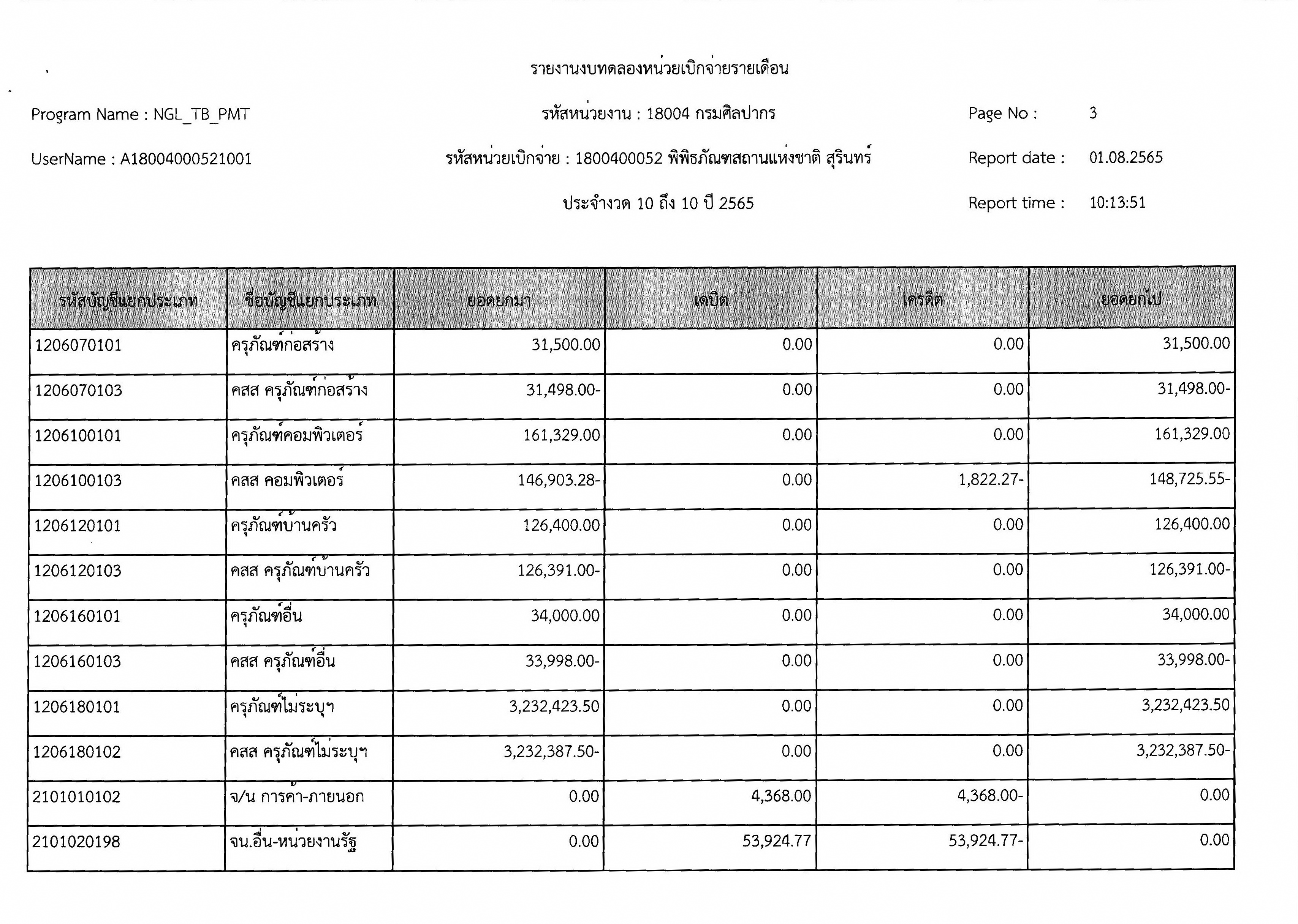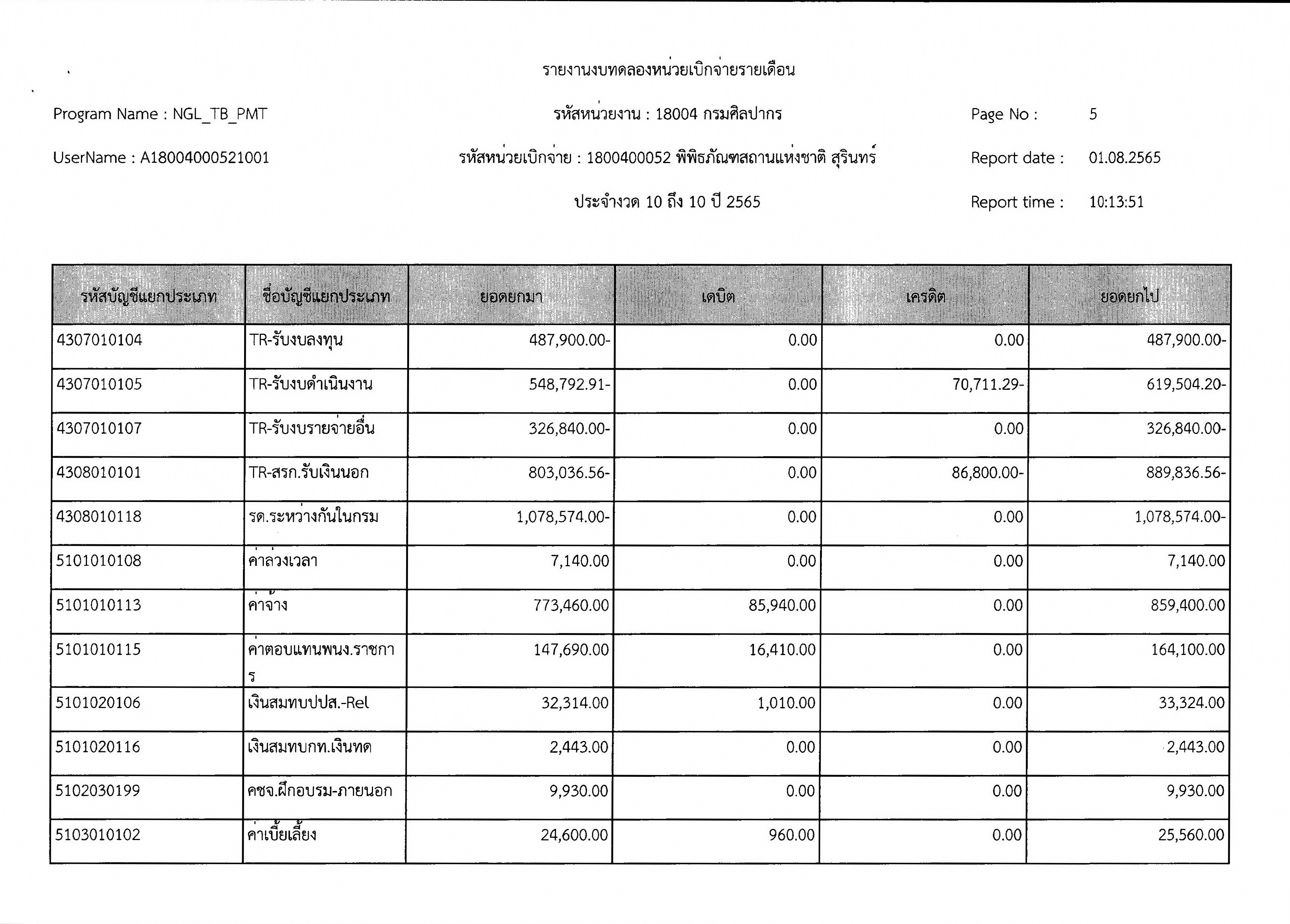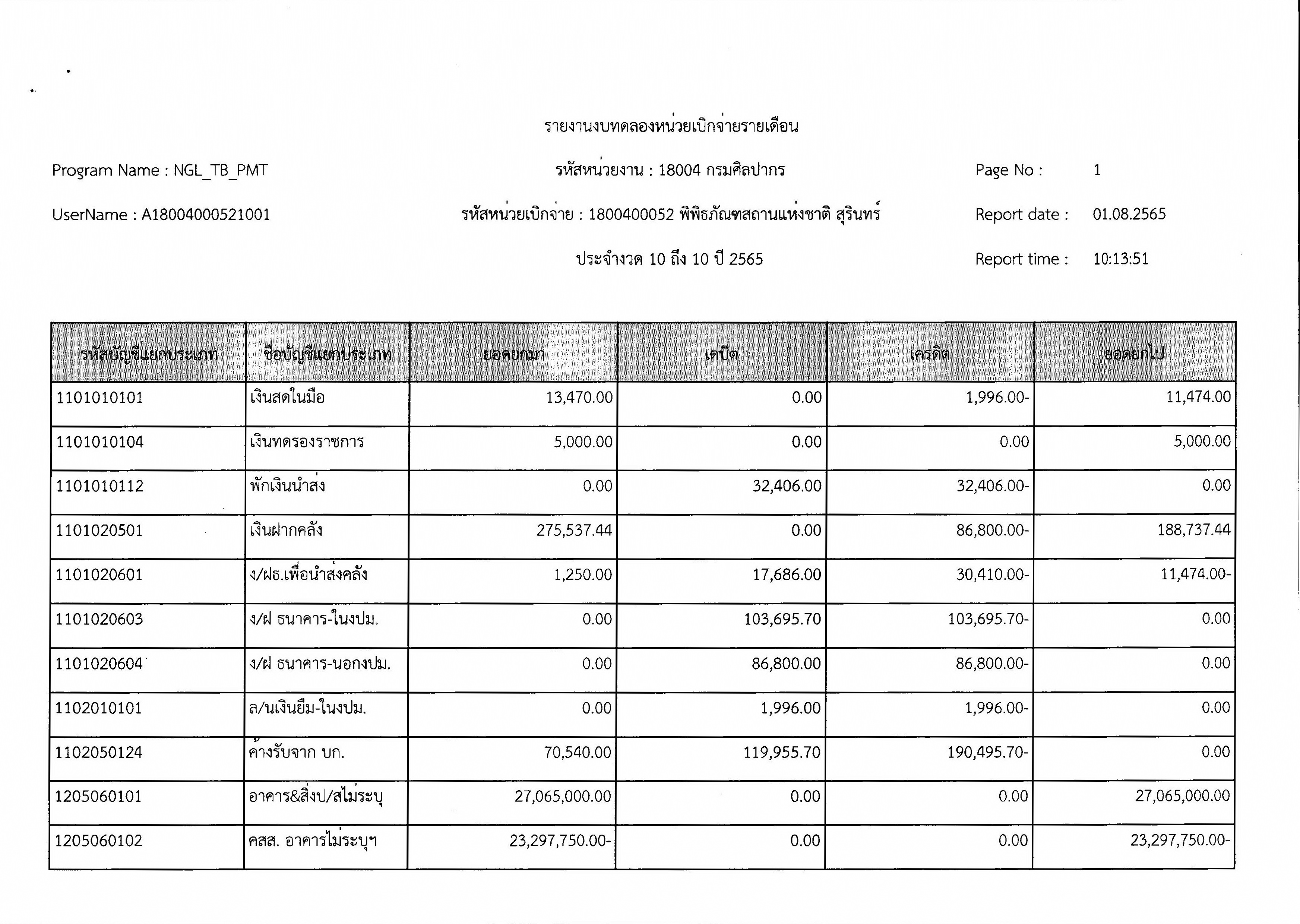 รายงานงบทดลองหน่วยเบิกจ่ายรายเดือนกรกฎาคม ๒๕๖๕