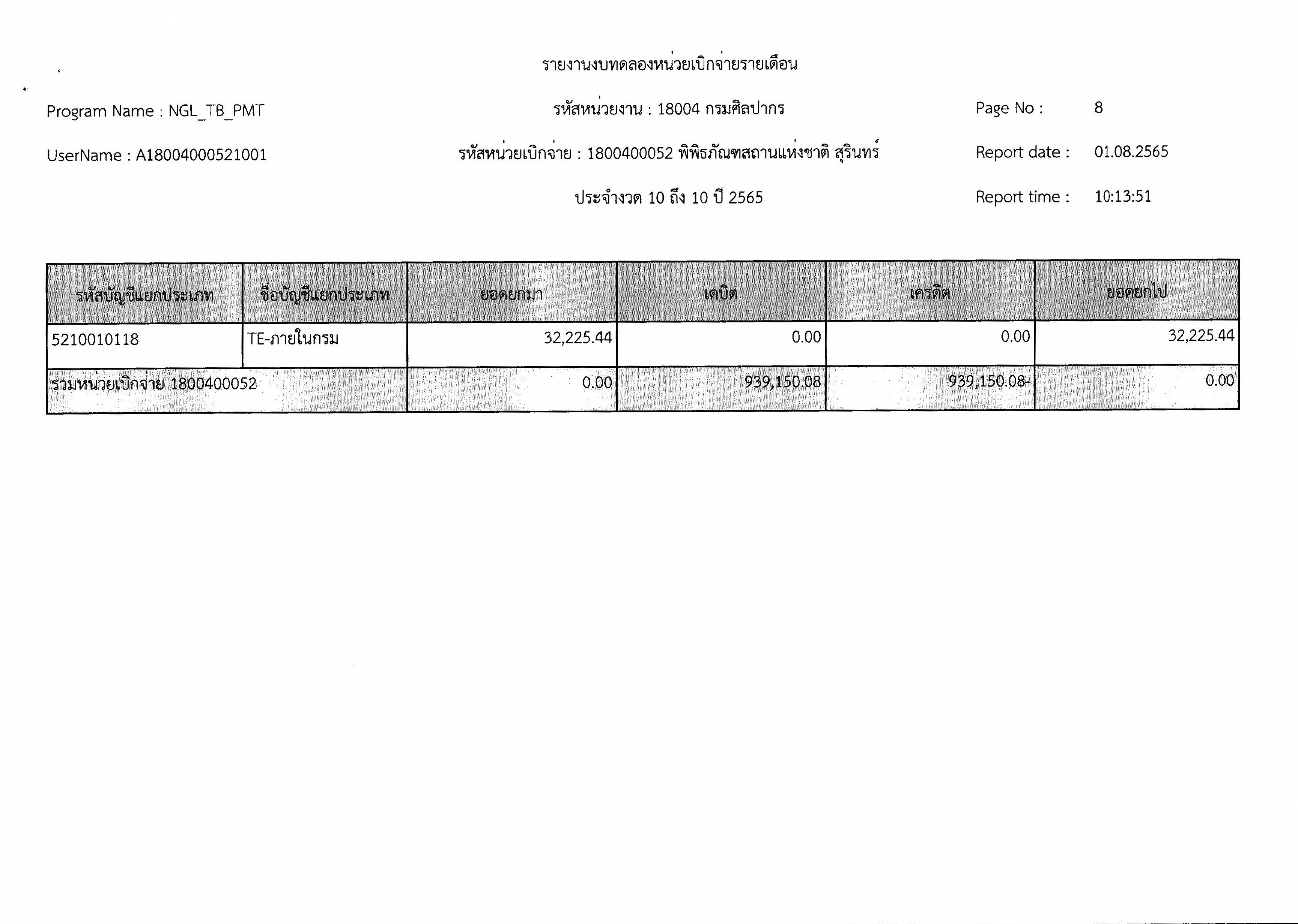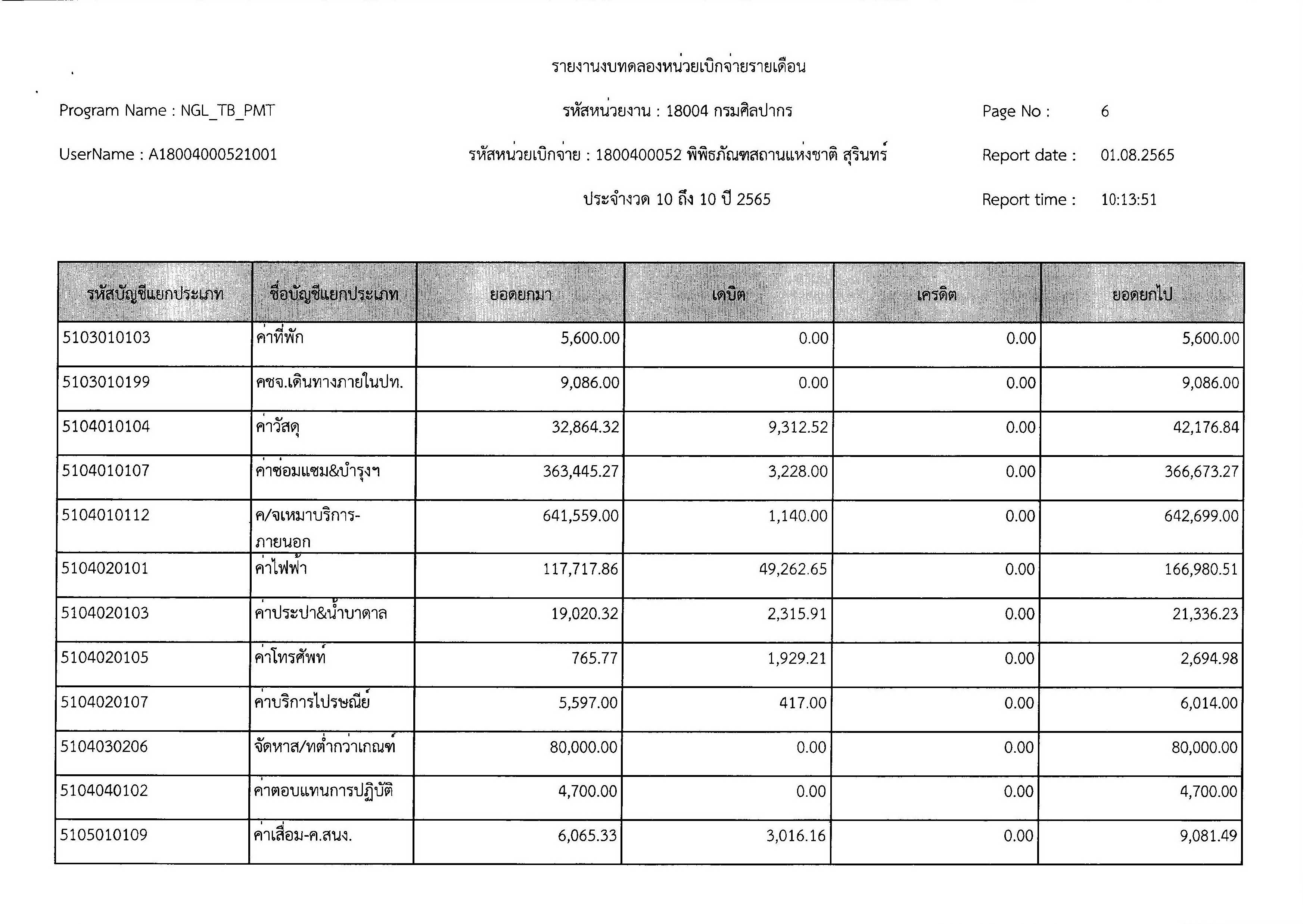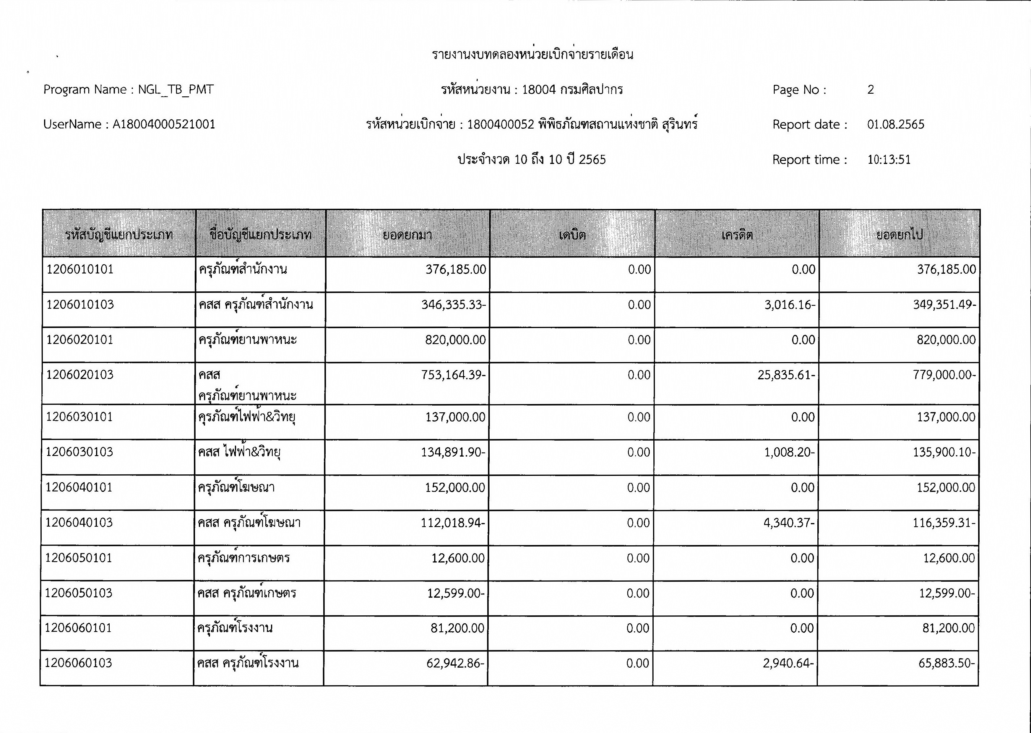 รายงานงบทดลองหน่วยเบิกจ่ายรายเดือนกรกฎาคม ๒๕๖๕