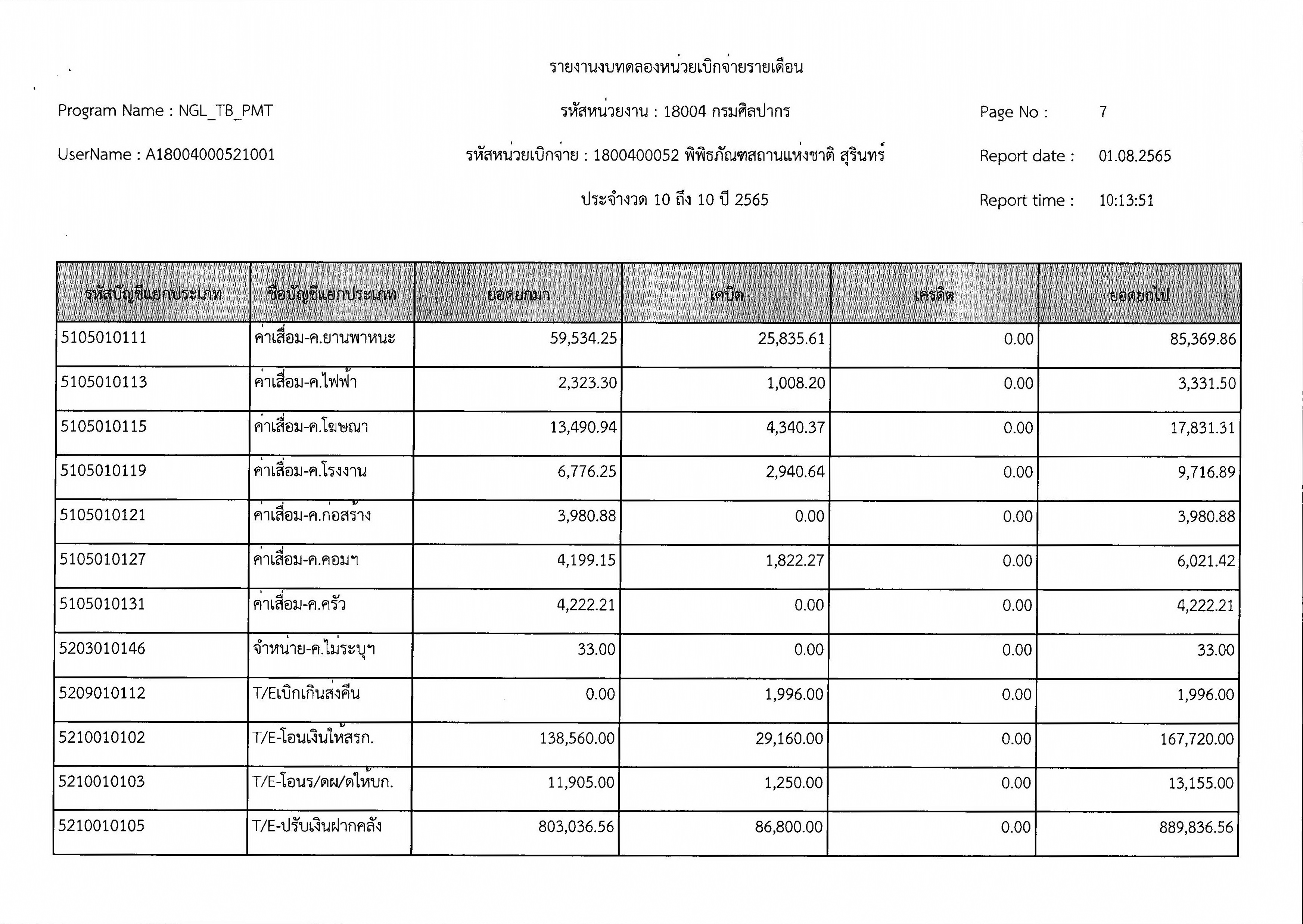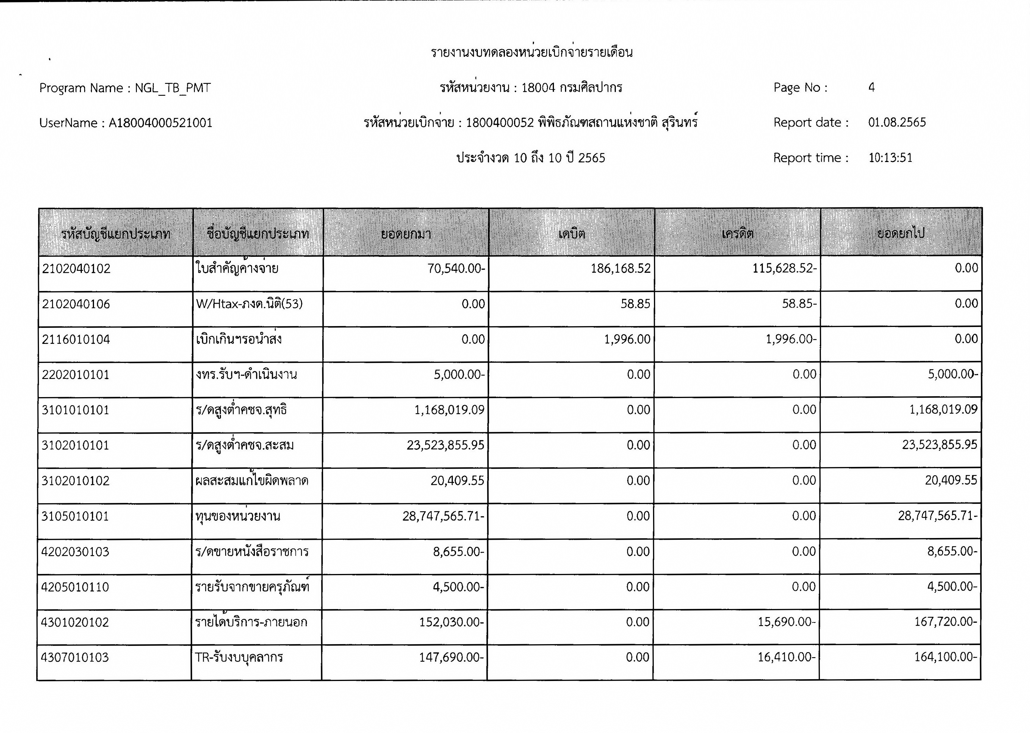 รายงานงบทดลองประจำเดือนกรกฎาคม ๒๕๖๕