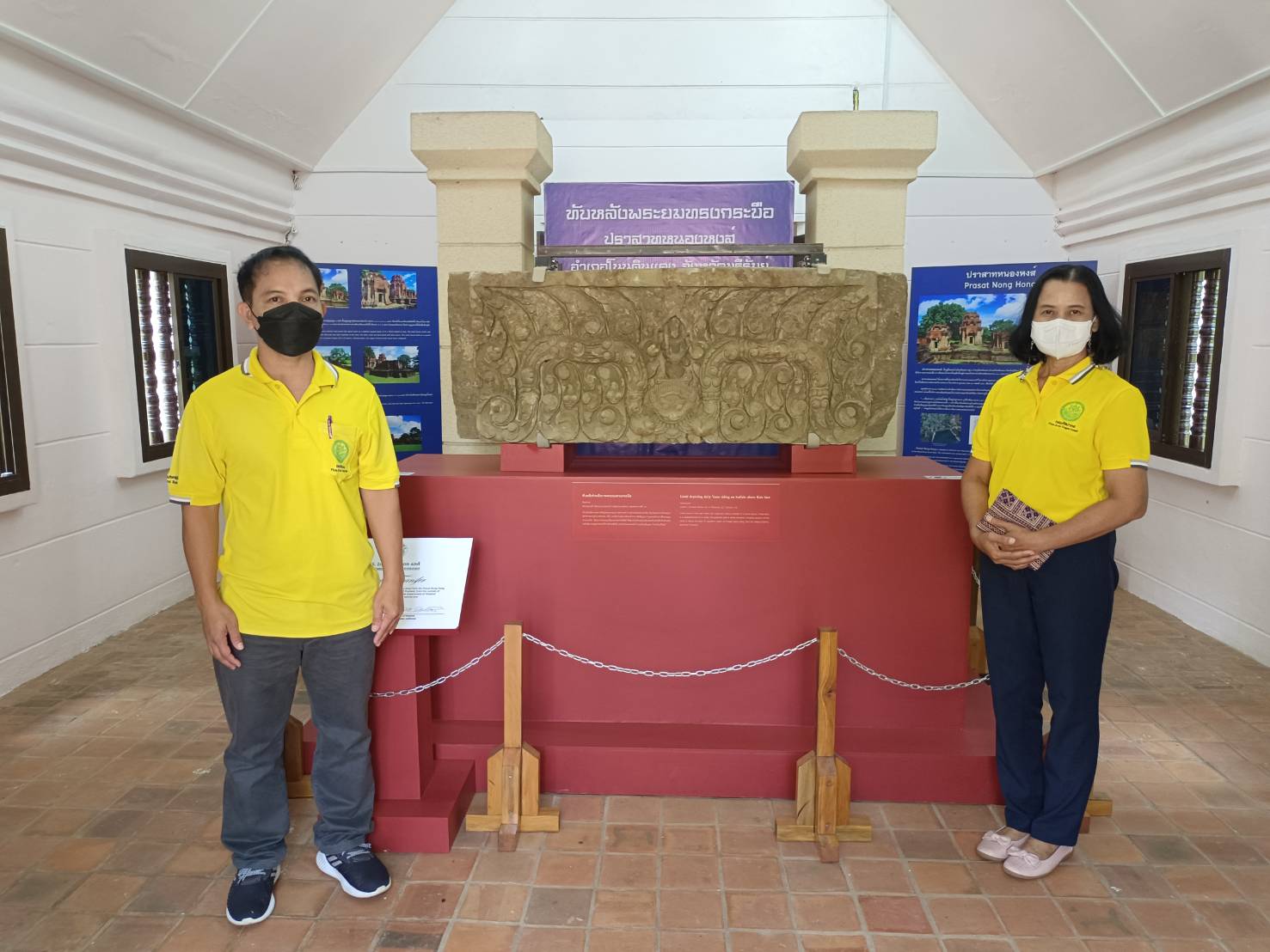 วันศุกร์ที่ ๕ สิงหาคม พ.ศ. ๒๕๖๕ นางปริญญา สุขใหญ่ หัวหน้าพิพิธภัณฑสถานแห่งชาติ สุรินทร์ และเจ้าหน้าที่ร่วมกิจกรรมฟังการเสวนาประกอบนิทรรศการพิเศษ เรื่อง ทับหลังปราสาทหนองหงส์ กลับคืนถิ่นบุรีรัมย์ ณ อุทยานประวัติศาสตร์พนนมรุ้ง ตำบลตาเป๊ก อำเภอเฉลิมพระเกียรติ จังหวัดบุรีรัมย์