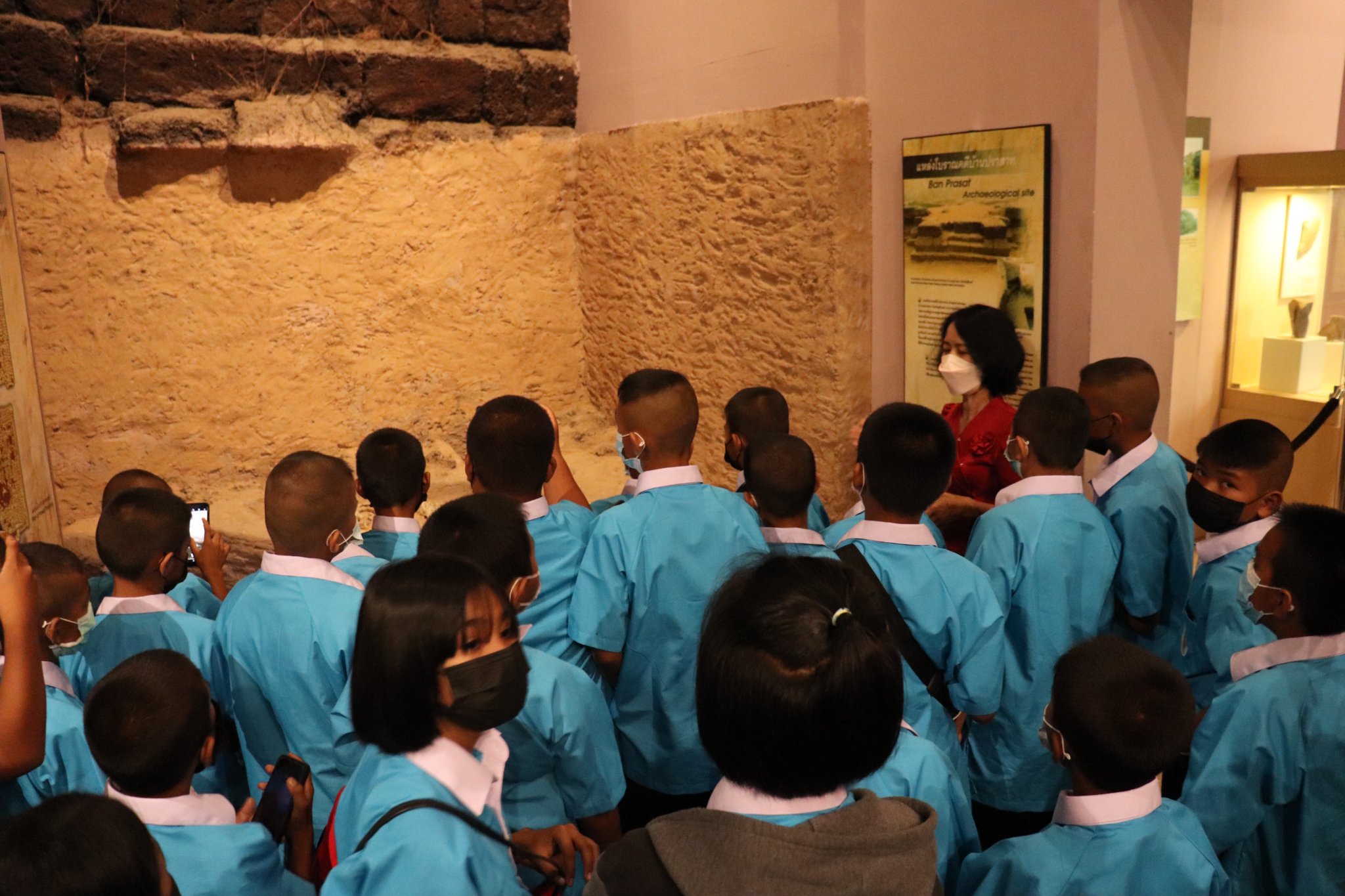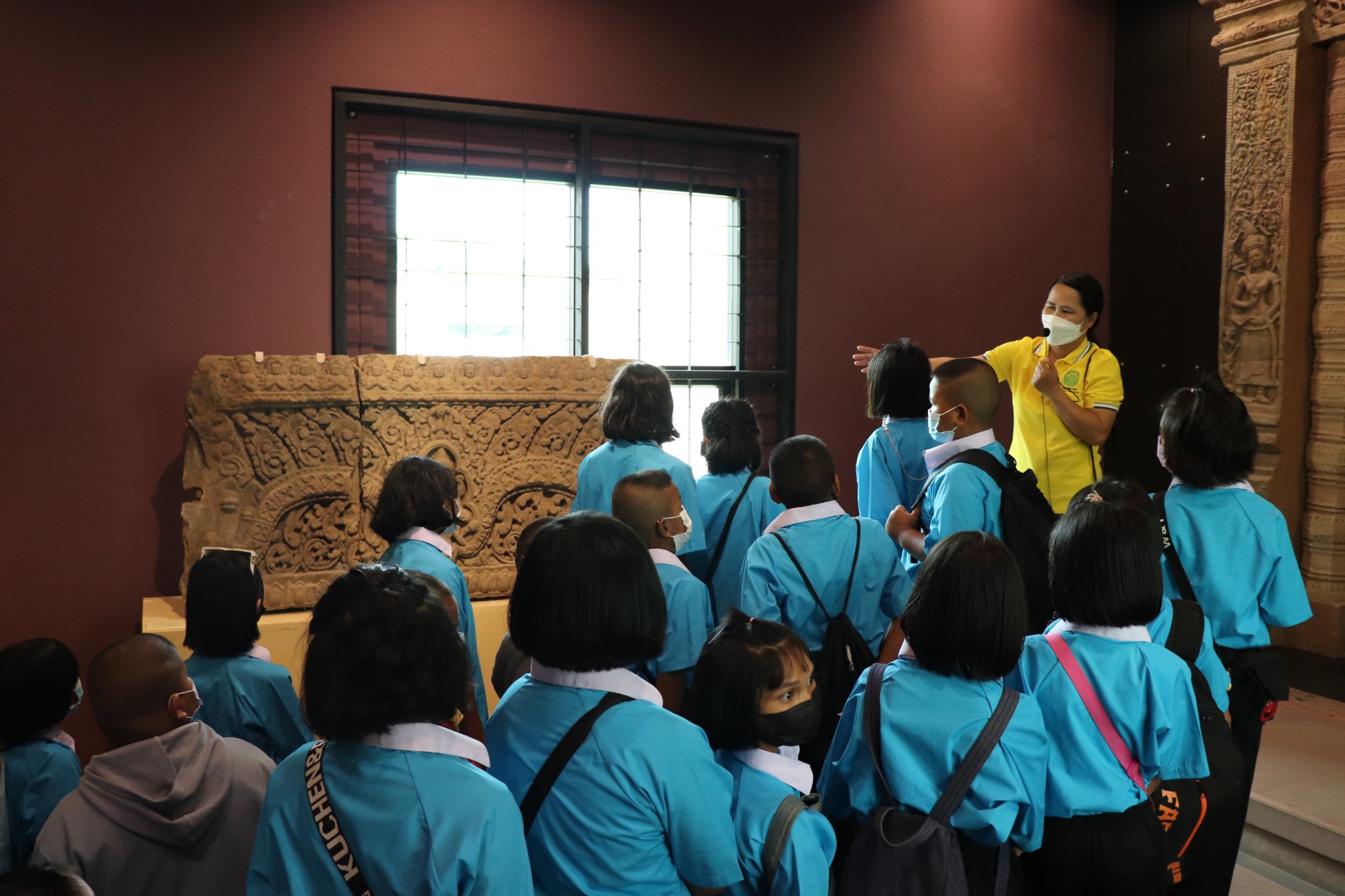 วันพุธที่ ๑๐ สิงหาคม พ.ศ. ๒๕๖๕ เวลา ๐๙.๐๐ น. นักเรียนชั้นประถมศึกษาที่ ๔ - ๖ โรงเรียนบ้านสำโรง ตำบลหนองเทพ อำเภอโนนนารายณ์ จังหวัดสุรินทร์ จำนวน ๗๑ คน คุณครูจำนวน ๑๕ คน เข้าเยี่ยมชมพิพิธภัณฑสถานแห่งชาติ สุรินทร์ โดยแบ่งการบรรยายนำชมออกเป็น ๒ กลุ่มย่อย เพื่อป้องกันการแพร่ระบาดของเชื้อโควิด - ๑๙ อย่างเคร่งครัด โดยมีนางศรีสุดา ศรีสด นางถนอม หลวงกลาง พนักงานประจำห้อง ให้การต้อนรับและบรรยายนำชม