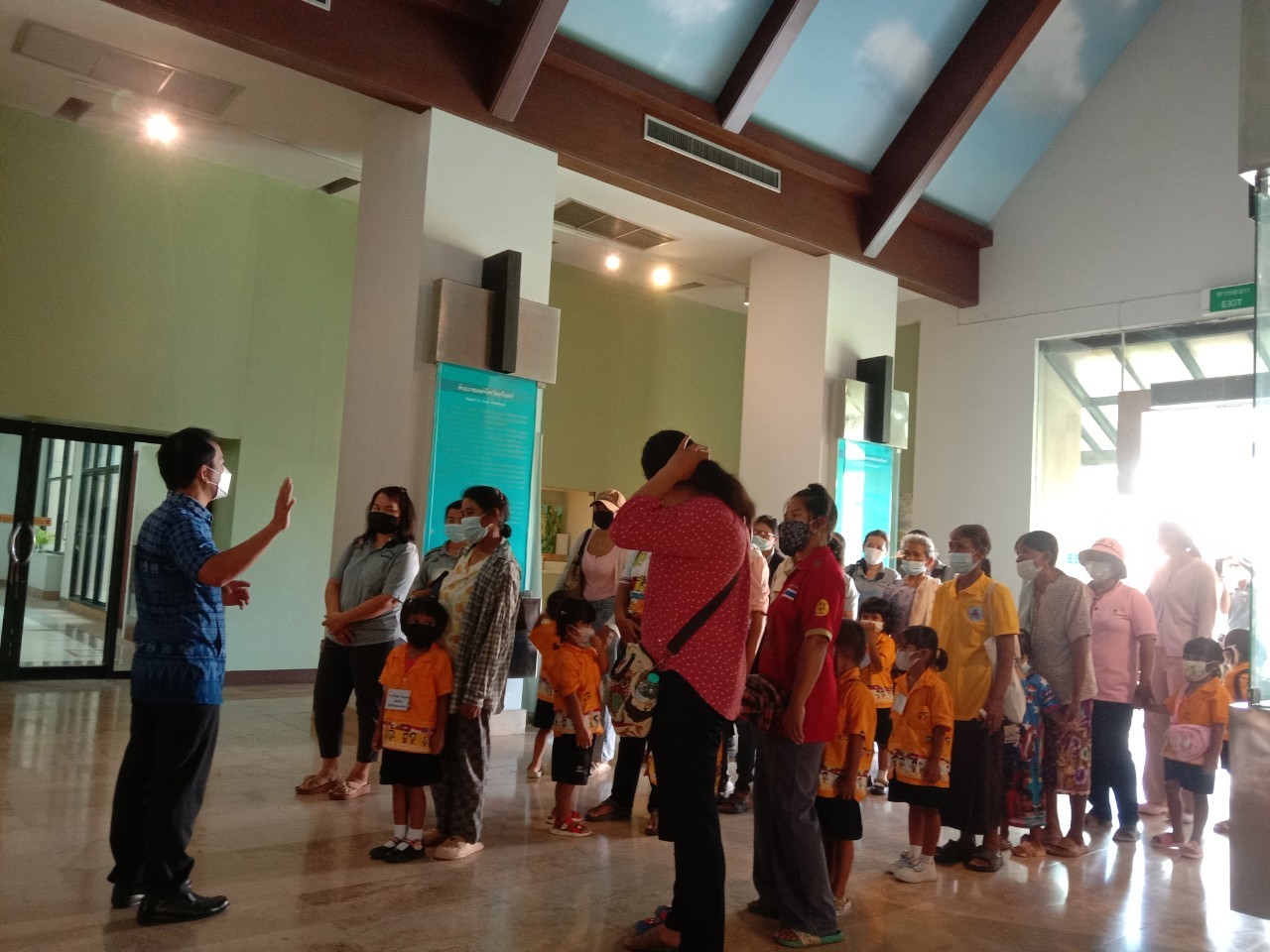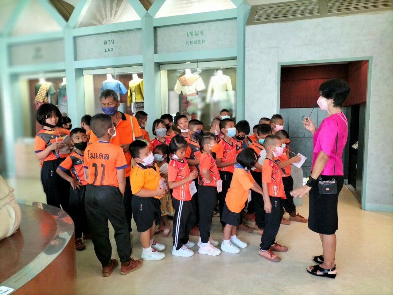 วันศุกร์ที่ ๒ กันยายน พ.ศ. ๒๕๖๕ เวลา ๑๐.๐๐ น. นักเรียนชั้นอนุบาล ๑ ถึงชั้นประถมศึกษาที่ ๖ โรงเรียนกลุ่มเครือข่ายโรงเรียนขนาดเล็ก จังหวัดบุรีรัมย์ จำนวน ๑๐๔ คน คุณครูและผู้ปกครอง จำนวน ๓๐ คน เข้าเยี่ยมชมพิพิธภัณฑสถานแห่งชาติ สุรินทร์ โดยแบ่งการบรรยายนำชมออกเป็น ๓ กลุ่มย่อย เพื่อป้องกันการแพร่ระบาดของเชื้อโควิด - ๑๙ อย่างเคร่งครัด โดยมีนายกรภัทร์ สุขใหญ่ พนักงานประจำพิพิธภัณฑ์ นางถนอม หลวงกลาง นางศรีสุดา สีสด พนักงานประจำห้อง ให้การต้อนรับและบรรยายนำชม