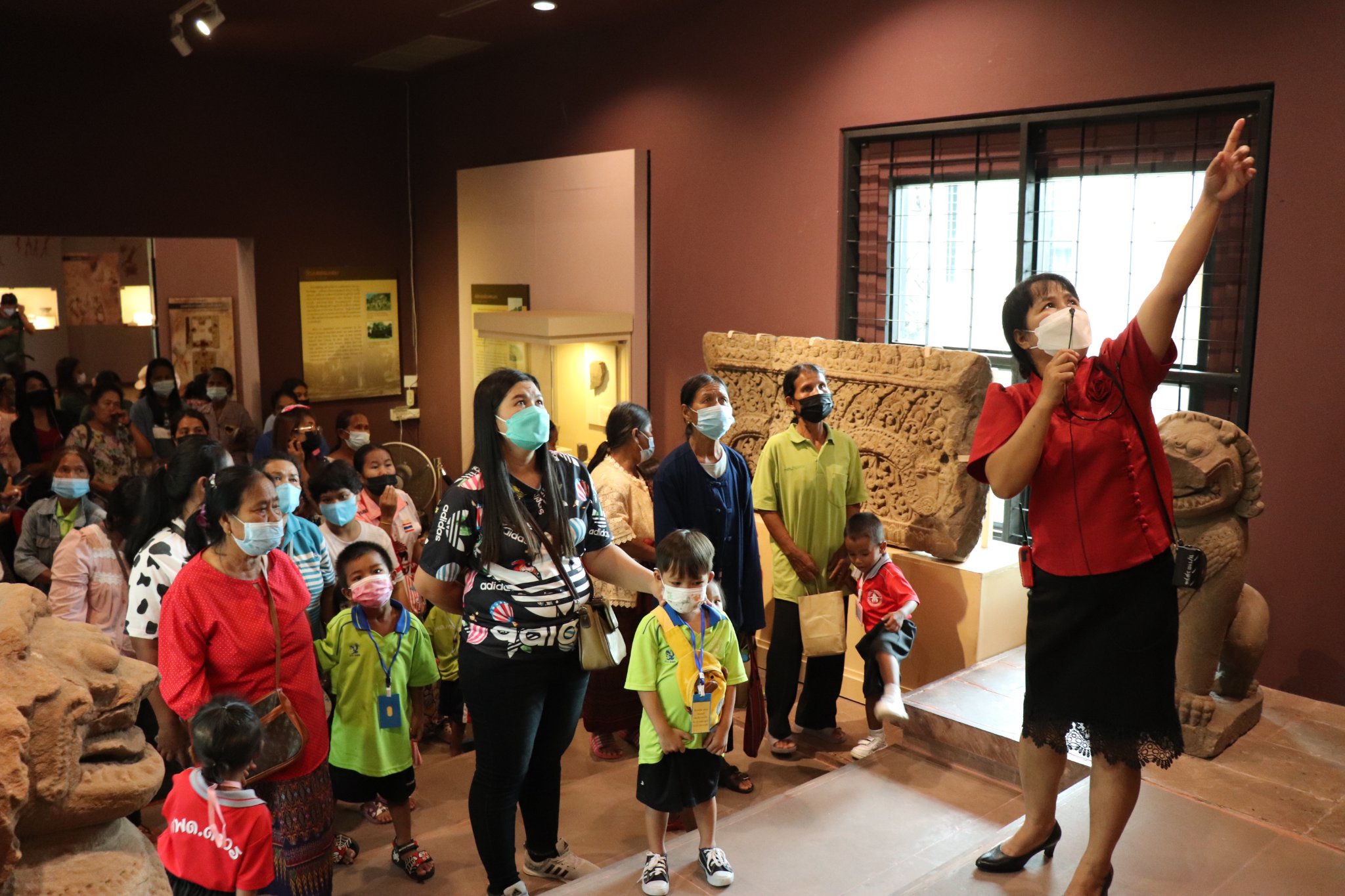 วันศุกร์ที่ ๙ กันยายน พ.ศ. ๒๕๖๕ เวลา ๑๐.๓๐ น. นักเรียนศูนย์พัฒนาเด็กเล็กองค์การบริหารส่วนตำบลโคกสะอาด อำเภอปราสาท จังหวัดสุรินทร์ จำนวน ๑๓๐ คน คุณครูและผู้ปกครองจำนวน ๑๐๐ คน เข้าเยี่ยมชมพิพิธภัณฑสถานแห่งชาติ สุรินทร์ โดยแบ่งการบรรยายนำชมออกเป็น ๒ กลุ่มย่อย เพื่อป้องกันการแพร่ระบาดของเชื้อโควิด - ๑๙ อย่างเคร่งครัด โดยมีนางศรีสุดา ศรีสด นายแก่นแก้ว หอมนวล พนักงานประจำห้อง ให้การต้อนรับและบรรยายนำชม