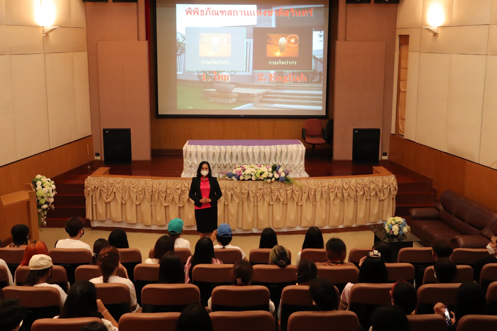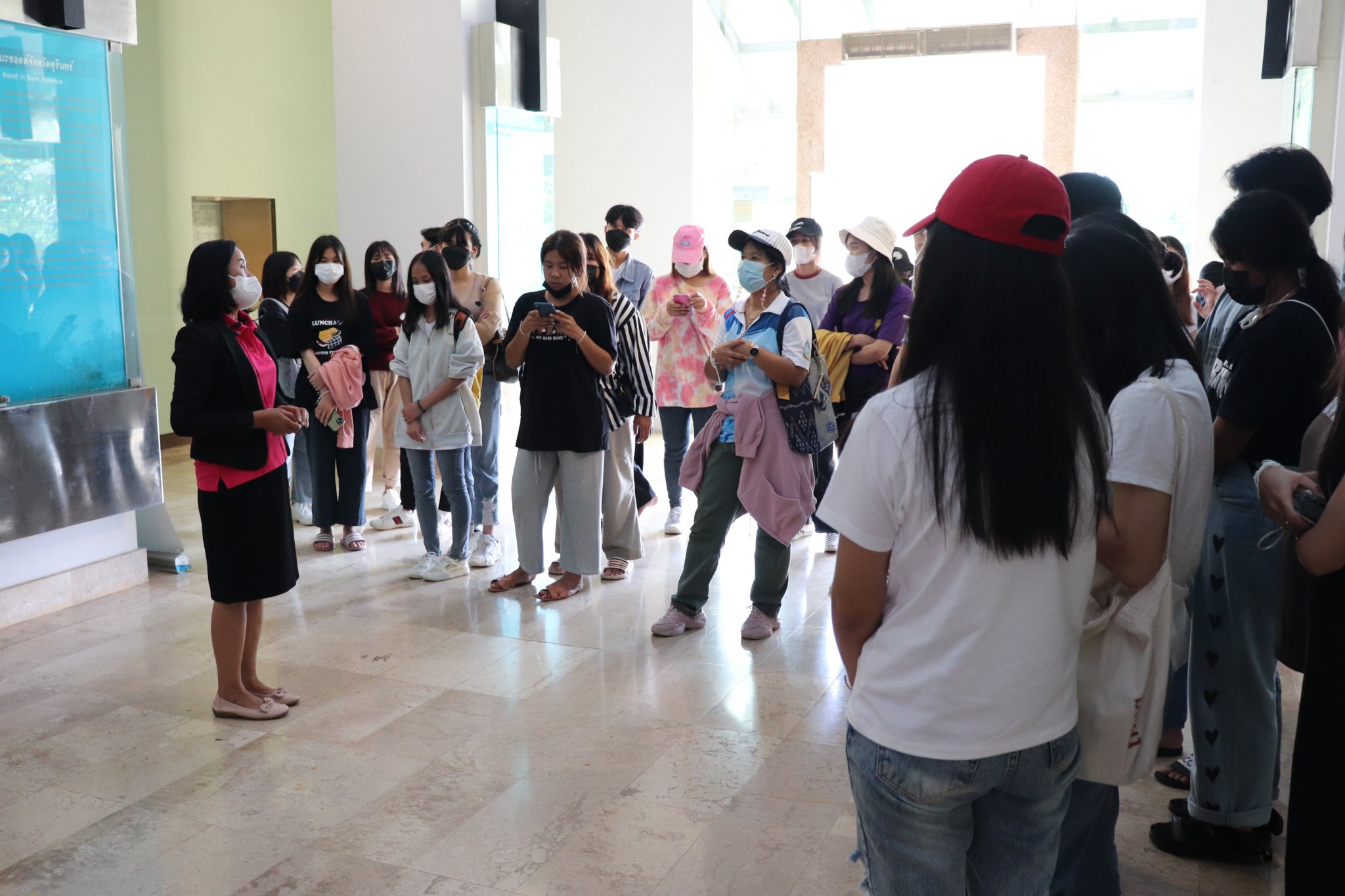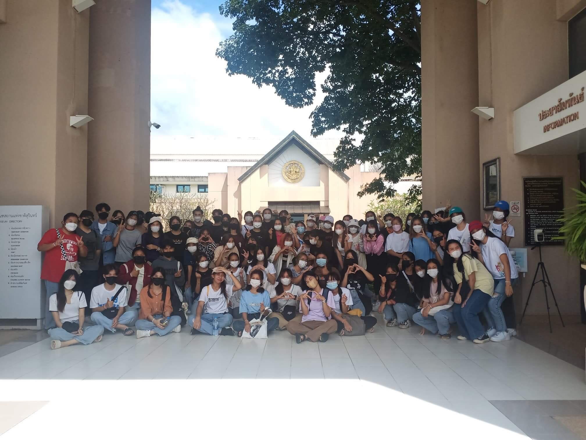 วันอาทิตย์ที่ ๑๑ กันยายน พ.ศ. ๒๕๖๕ เวลา ๑๔.๐๐ น. นักศึกษาสาขาวิชาภาษาไทย คณะศิลปศาสตร์ มหาวิทยาลัยอุบลราชธานี จำนวน ๗๐ คน อาจารย์จำนวน ๔ คน เข้าเยี่ยมชมพิพิธภัณฑสถานแห่งชาติ สุรินทร์ โดยแบ่งการบรรยายนำชมออกเป็น ๒ กลุ่มย่อย เพื่อป้องกันการแพร่ระบาดของเชื้อโควิด - ๑๙ อย่างเคร่งครัด โดยมีนางปริญญา สุขใหญ่ หัวหน้าพิพิธภัณฑสถานแห่งชาติ สุรินทร์ และนางสาวอาภาภรณ์ เปล่งปลั่งศรี นักวิชาการวัฒนธรรม ให้การต้อนรับและบรรยายนำชม