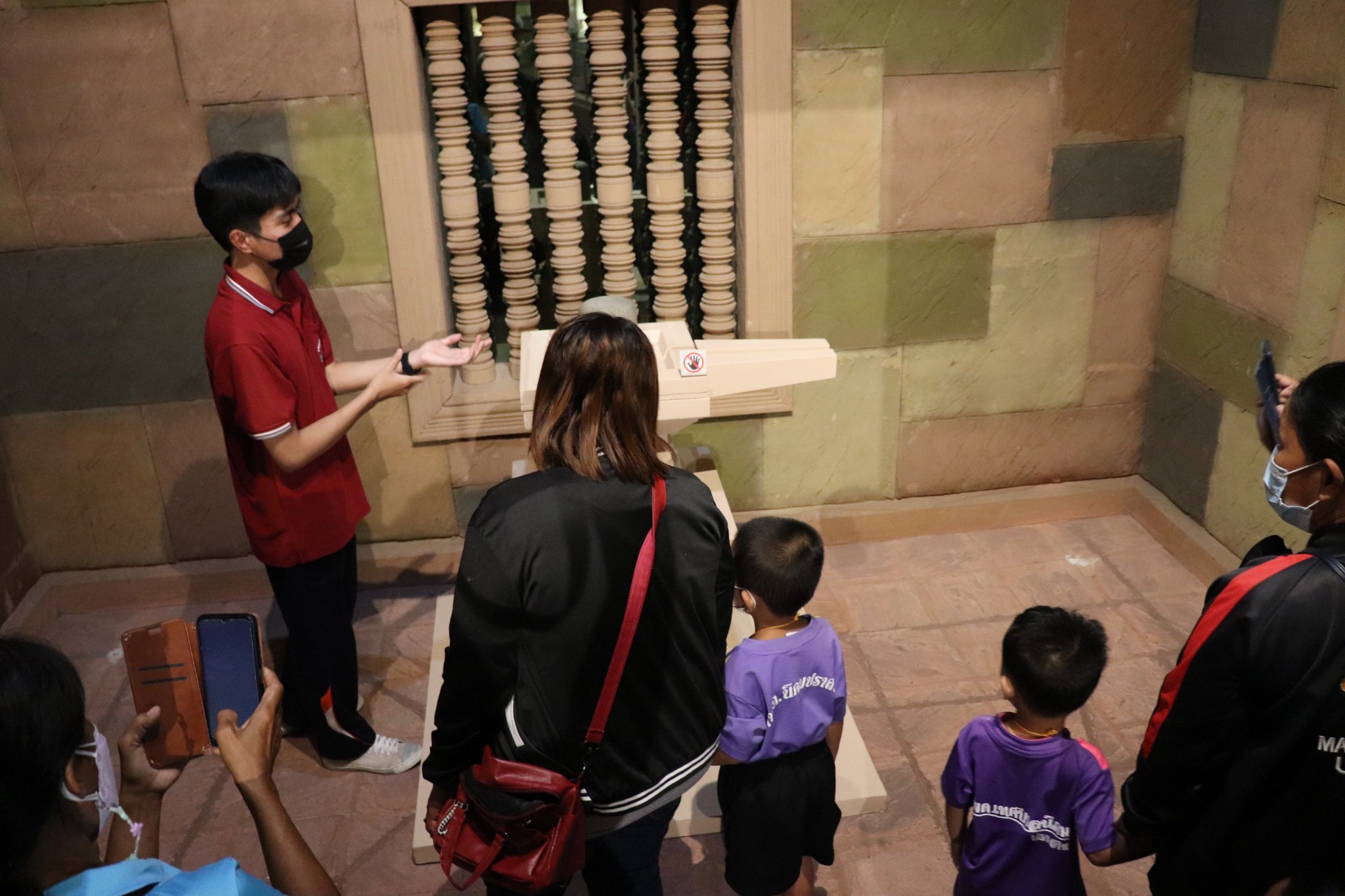 วันพุธที่ ๑๔ กันยายน พ.ศ. ๒๕๖๕ เวลา ๑๓.๓๐ น. นักเรียนศูนย์พัฒนาเด็กเล็กเทศบาลตำบลตลาดนิคมปราสาท อำเภอปราสาท จังหวัดสุรินทร์ จำนวน ๕๐ คน คุณครูและผู้ปกครองจำนวน ๓๐คน เข้าเยี่ยมชมพิพิธภัณฑสถานแห่งชาติ สุรินทร์ โดยแบ่งการบรรยายนำชมออกเป็น ๒ กลุ่มย่อย เพื่อป้องกันการแพร่ระบาดของเชื้อโควิด - ๑๙ อย่างเคร่งครัด โดยมีนายกรภัทร์ สุขใหญ่ พนักงานประจำพิพิธภัณฑ์ และน้องๆ นักศึกษาฝึกประสบการณ์วิชาชีพ ให้การต้อนรับและบรรยายนำชม