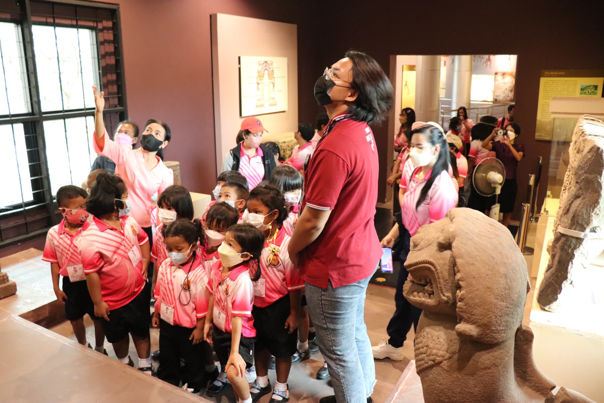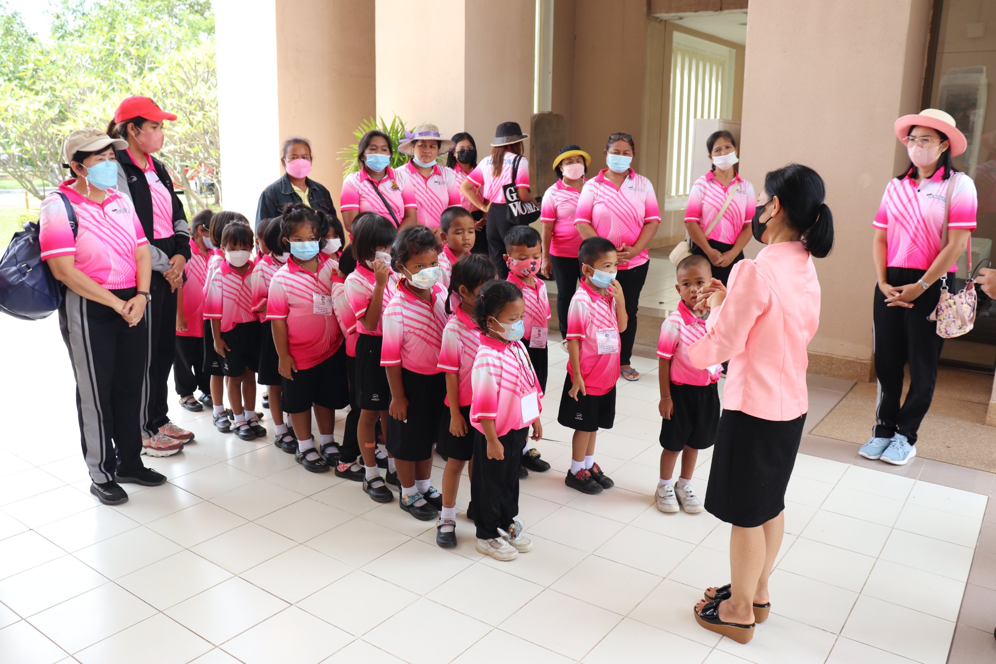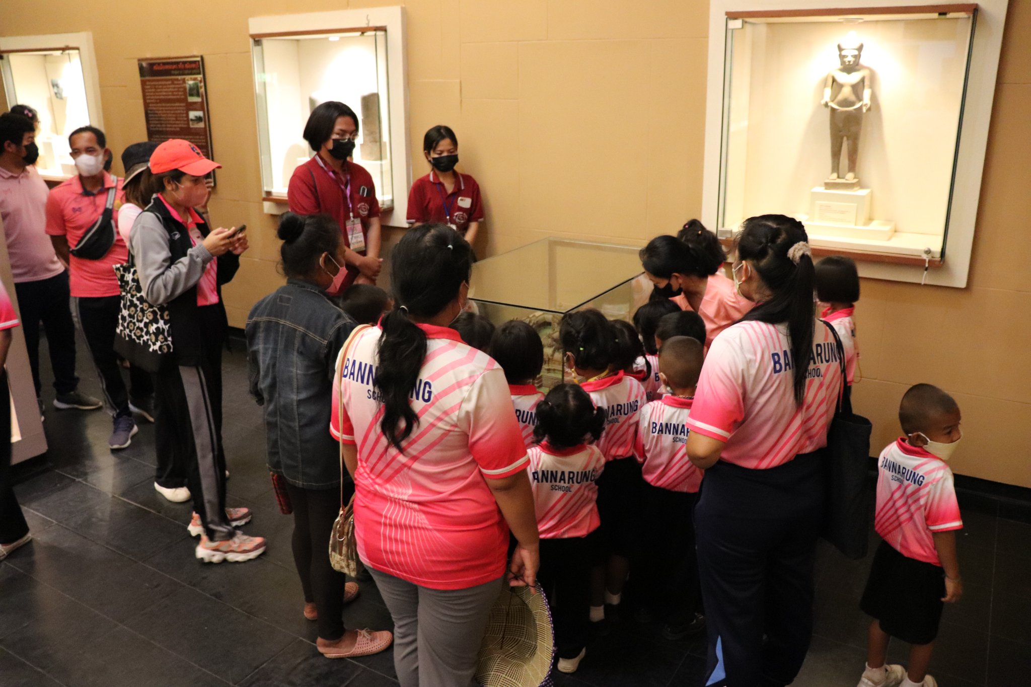 วันพุธที่ ๑๔ กันยายน พ.ศ. ๒๕๖๕ เวลา ๑๔.๐๐ น. น้องๆ นักเรียนชั้นอนุบาล ๒-๓ โรงเรียนบ้านนารุ่ง(ญาณมุนีราษฎร์สามัคคี) อำเภอศีขรภูมิ จังหวัดสุรินทร์ จำนวน ๕๐ คน คุณครู จำนวน ๒๐ คน เข้าเยี่ยมชมพิพิธภัณฑสถานแห่งชาติ สุรินทร์ โดยแบ่งการบรรยายนำชมออกเป็น ๒ กลุ่มย่อย เพื่อป้องกันการแพร่ระบาดของเชื้อโควิด - ๑๙ อย่างเคร่งครัด โดยมีนางสาวอภิญญา สุขใหญ่ พนักงานประจำห้อง และน้องๆ นักศึกษาฝึกประสบการณ์วิชาชีพ ให้การต้อนรับและบรรยายนำชม