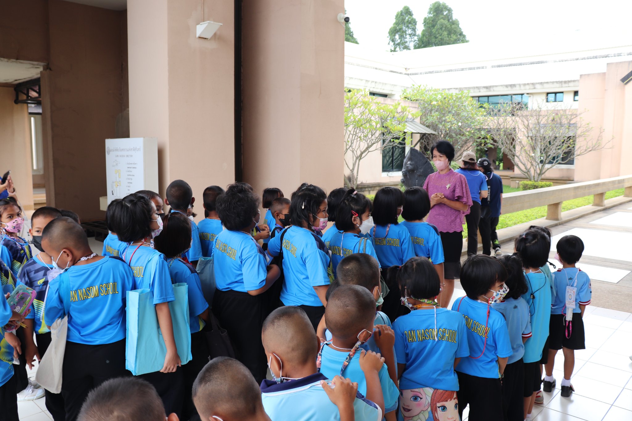 วันศุกร์ที่ ๑๖ กันยายน พ.ศ. ๒๕๖๕ เวลา ๑๑.๐๐ น. นักเรียนชั้นอนุบาล ๑ ถึงชั้นประถมศึกษาที่ ๓ โรงเรียนบ้านนาสม(วิไลราษฎร์ศึกษา) ตำบลเฉนียง อำเภอเมือง จังหวัดสุรินทร์ จำนวน ๔๐ คน คุณครูจำนวน ๑๐ คน เข้าเยี่ยมชมพิพิธภัณฑสถานแห่งชาติ สุรินทร์ โดยปฏิบัติตามกฎเฝ้าระวังการแพร่ระบาดของเชื้อโควิด - ๑๙ อย่างเคร่งครัด โดยมีนางถนอม หลวงกลาง พนักงานประจำห้อง ให้การต้อนรับและบรรยายนำชม