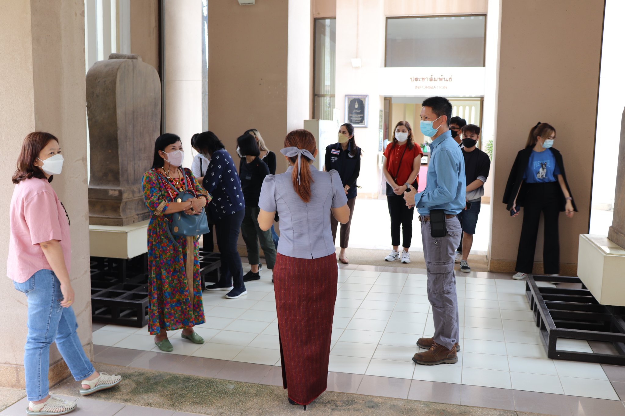 วันศุกร์ที่ ๗ ตุลาคม พ.ศ. ๒๕๖๕ เวลา ๑๓.๐๐ น. องค์การบริหารส่วนจังหวัดสุรินทร์นำคณะบริษัทเครือสหพัฒน์ จังหวัดชลบุรี จำนวน ๒๐ คน เข้าเยี่ยมชมพิพิธภัณฑสถานแห่งชาติ สุรินทร์ โดยปฏิบัติตามกฎเฝ้าระวังการแพร่ระบาดของเชื้อโควิด - ๑๙ อย่างเคร่งครัด โดยมี นางสาวอาภาภรณ์ เปล่งปลั่งศรี นักวิชาการวัฒนธรรม และพนักงานประจำห้องทุกคน ให้การต้อนรับและบรรยายนำชม