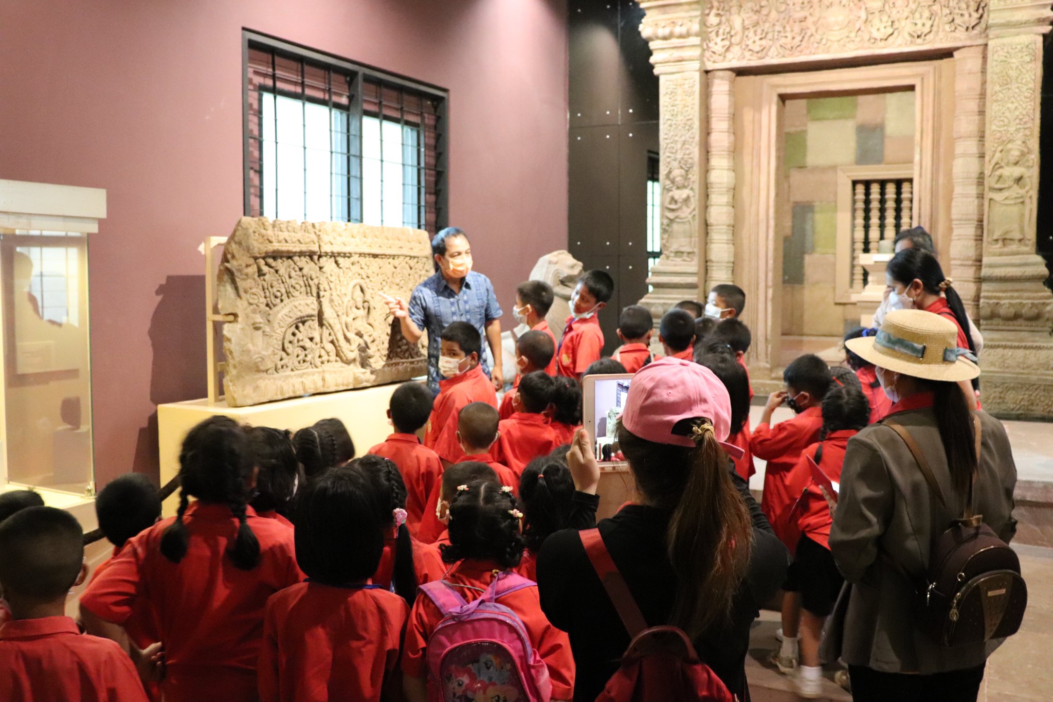 วันศุกร์ที่ ๗ ตุลาคม พ.ศ. ๒๕๖๕ เวลา ๑๔.๐๐ น. นักเรียนชั้นอนุบาล ๒ ถึงชั้นมัธยมศึกษาที่ ๓ โรงเรียนบ้านแพงพวย(สังฆคุรุราษฎร์บำรุง) ตำบลนางรอง อำเภอนางรอง จังหวัดบุรีรัมย์ จำนวน ๒๐๙ คน คุณครูจำนวน ๑๕ คน เข้าเยี่ยมชมพิพิธภัณฑสถานแห่งชาติ สุรินทร์ โดยแบ่งการบรรยายนำชมออกเป็น ๓ กลุ่มย่อย เพื่อป้องกันการแพร่ระบาดของเชื้อโควิด - ๑๙ อย่างเคร่งครัด โดยมีนายกรภัทร์ สุขใหญ่ พนักงานประจำพิพิธภัณฑ์ นางสาวอาภาภรณ์ เปล่งปลั่งศรี นักวิชาการวัฒนธรรม และนางถนอม หลวงกลาง พนักงานประจำห้อง ให้การต้อนรับและบรรยายนำชม