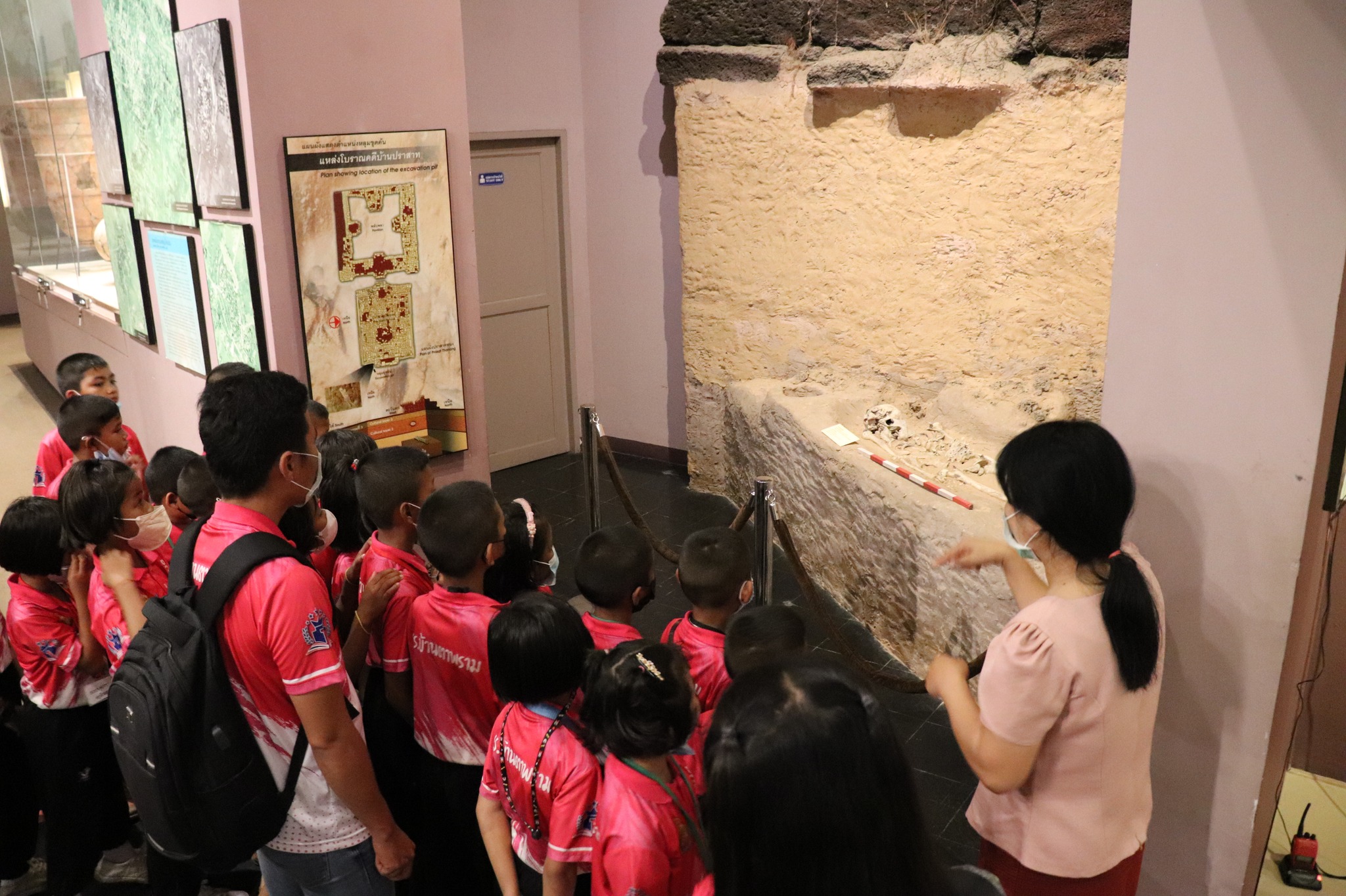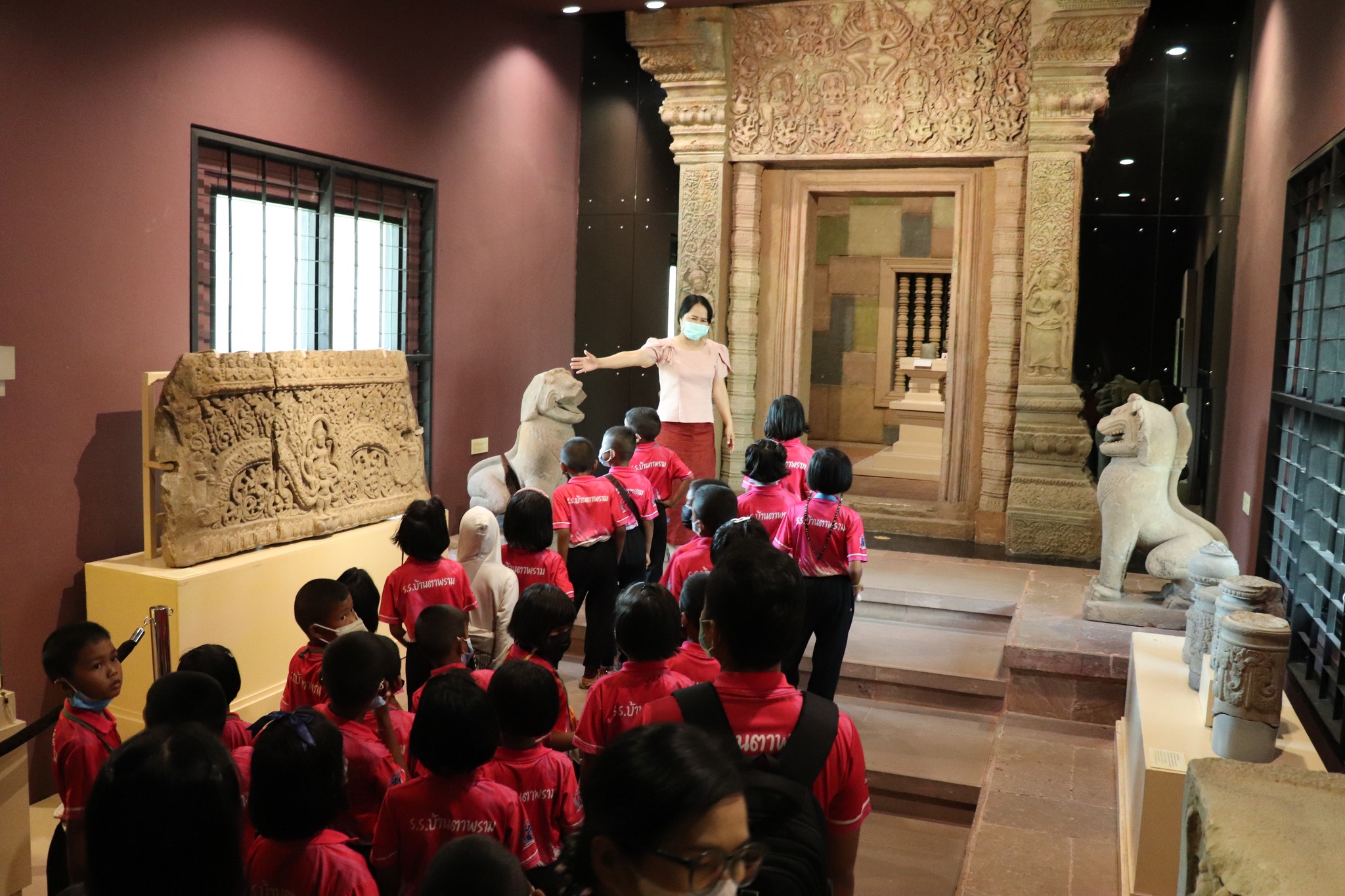 วันศุกร์ที่ ๑๘ พฤศจิกายน พ.ศ. ๒๕๖๕ เวลา ๑๐.๐๐ น. นักเรียนชั้นประถมศึกษาที่ ๑ - ๓ โรงเรียนบ้านตาพราม ตำบลเทพรักษา อำเภอสังขะ จังหวัดสุรินทร์ จำนวน ๓๐ คน และคุณครู ๕ คน เข้าเยี่ยมชมพิพิธภัณฑสถานแห่งชาติ สุรินทร์ โดยปฏิบัติตามกฎเฝ้าระวังการแพร่ระบาดของเชื้อโควิด - ๑๙ อย่างเคร่งครัด โดยมีนางศรีสุดา ศรีสด พนักงานประจำห้อง ให้การต้อนรับและบรรยายนำชม