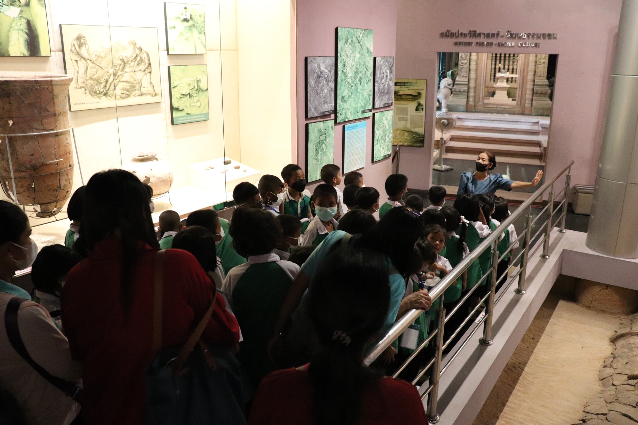 วันศุกร์ที่ ๑๘ พฤศจิกายน พ.ศ. ๒๕๖๕ เวลา ๐๙.๓๐ น. นักเรียนชั้นอนุบาล ๒ ถึงชั้นประถมศึกษาที่ ๖ โรงเรียนบ้านสะพานหัน ตำบลทุ่งมน อำเภอปราสาท จังหวัดสุรินทร์ จำนวน ๑๒๙ คน คุณครูจำนวน ๑๕ คน เข้าเยี่ยมชมพิพิธภัณฑสถานแห่งชาติ สุรินทร์ โดยแบ่งการบรรยายนำชมออกเป็น ๒ กลุ่มย่อย เพื่อป้องกันการแพร่ระบาดของเชื้อโควิด - ๑๙ อย่างเคร่งครัด โดยมีนางสาวอาภาภรณ์ เปล่งปลั่งศรี นักวิชาการวัฒนธรรม นางสาวอภิญญา สุขใหญ่ พนักงานประจำห้อง ให้การต้อนรับและบรรยายนำชม