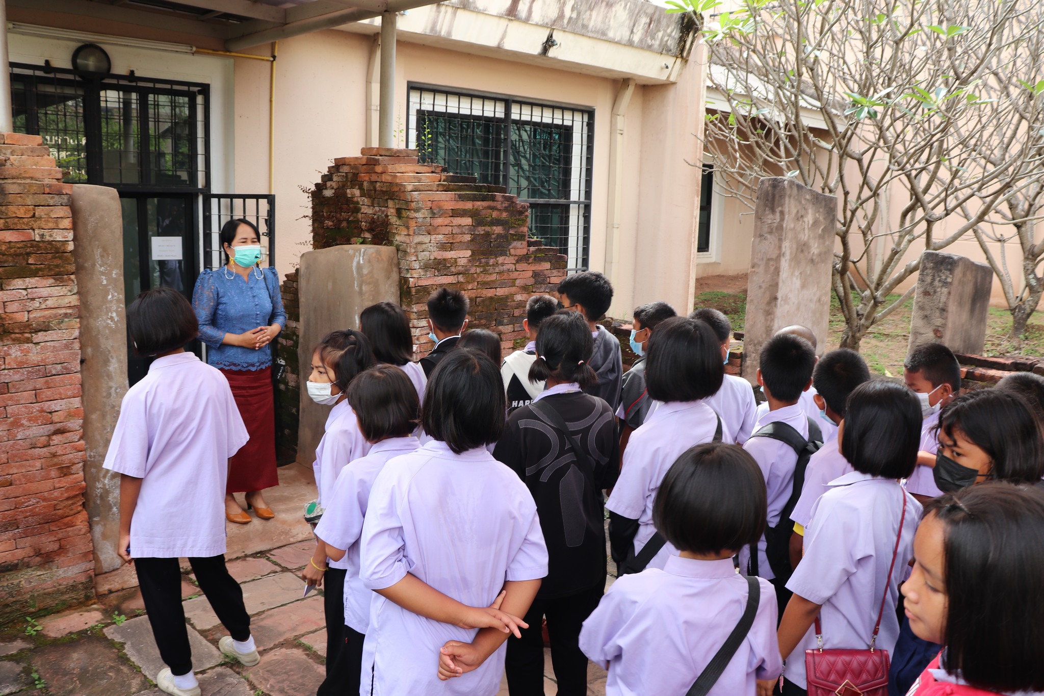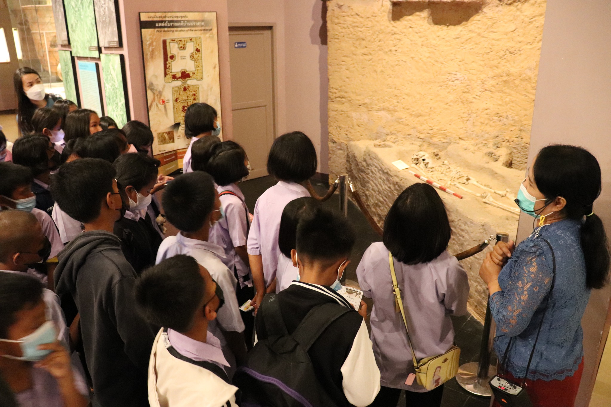 วันศุกร์ที่ ๒๕ พฤศจิกายน พ.ศ. ๒๕๖๕ เวลา ๑๐.๐๐ น. นักเรียนชั้นประถมศึกษาที่ ๕-๖ โรงเรียนบ้านคลอง ตำบลปรือ อำเภอปราสาท จังหวัดสุรินทร์ จำนวน ๔๑ คน คุณครูจำนวน ๑๐ คน เข้าเยี่ยมชมพิพิธภัณฑสถานแห่งชาติ สุรินทร์ โดยปฏิบัติตามกฎเฝ้าระวังการแพร่ระบาดของเชื้อโควิด - ๑๙ อย่างเคร่งครัด โดยมีนางศรีสุดา ศรีสด พนักงานประจำห้อง ให้การต้อนรับและบรรยายนำชม