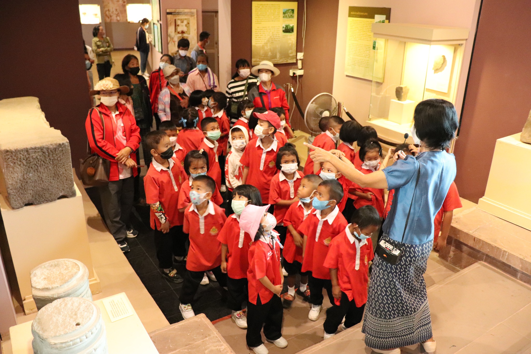 วันศุกร์ที่ ๒ ธันวาคม พ.ศ.๒๕๖๕ เวลา ๐๙.๓๐ น. นักเรียนชั้นอนุบาล ๒ ถึงชั้นประถมศึกษาที่ ๓ โรงเรียนไตรคามวิทยา ตำบลเบิด อำเภอรัตนบุรี จังหวัดสุรินทร์ จำนวน ๘๖ คน คุณครูจำนวน ๑๘ คน เข้าเยี่ยมชมพิพิธภัณฑสถานแห่งชาติ สุรินทร์ โดยแบ่งการบรรยายนำชมออกเป็น ๒ กลุ่มย่อย เพื่อป้องกันการแพร่ระบาดของเชื้อโควิด - ๑๙ อย่างเคร่งครัด โดยมีนางถนอม หลวงกลาง นายแก่นแก้ว หอมนวล พนักงานประจำห้อง ให้การต้อนรับและบรรยายนำชม