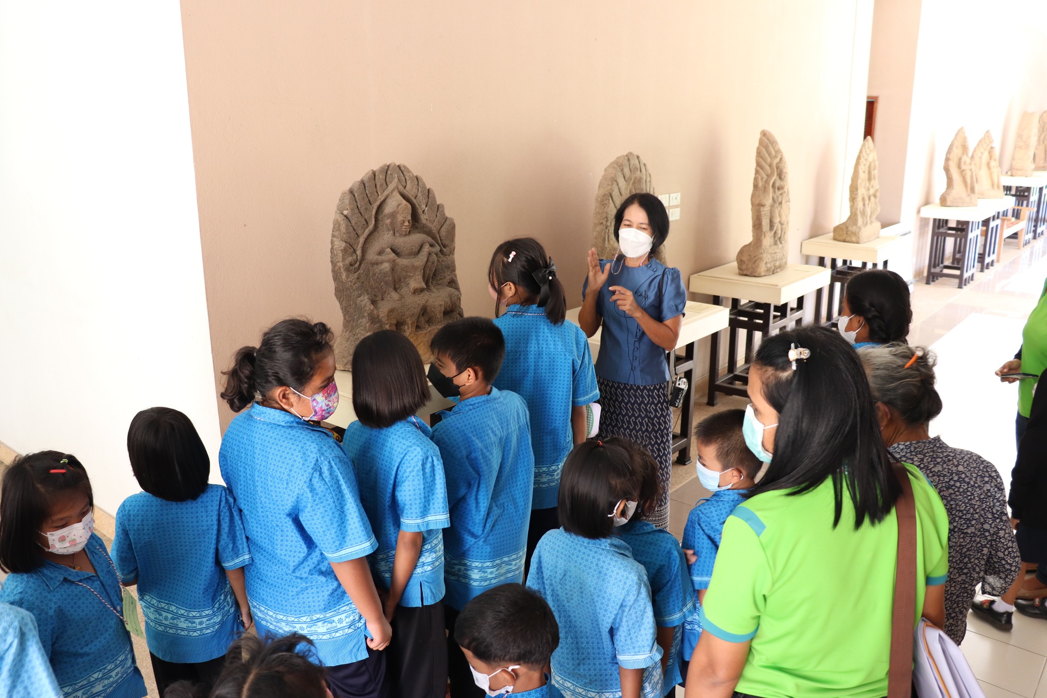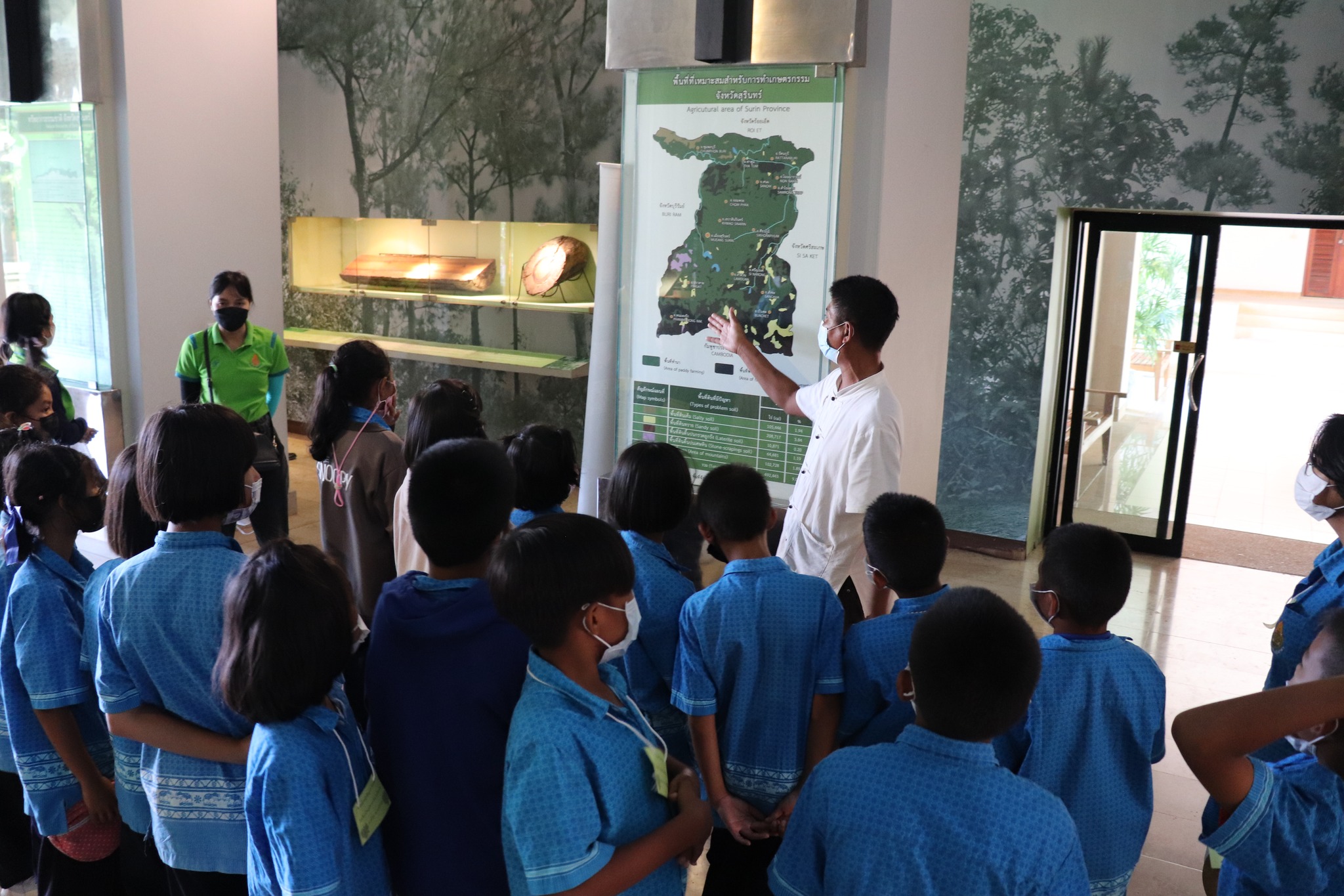 วันศุกร์ที่ ๒ ธันวาคม พ.ศ.๒๕๖๕ เวลา ๑๑.๐๐ น. นักเรียนชั้นอนุบาล ๒ ถึงชั้นประถมศึกษาที่ ๖ โรงเรียนบ้านภูมิศาลา ตำบลโคกเพชร อำเภอขุขันธ์ จังหวัดศรีสะเกษ จำนวน ๑๑๙ คน คุณครูจำนวน ๒๙ คน เข้าเยี่ยมชมพิพิธภัณฑสถานแห่งชาติ สุรินทร์ โดยแบ่งการบรรยายนำชมออกเป็น ๓ กลุ่มย่อย เพื่อป้องกันการแพร่ระบาดของเชื้อโควิด - ๑๙ อย่างเคร่งครัด โดยมีนางถนอม หลวงกลาง นางสาวอภิญญา สุขใหญ่ และนายแก่นแก้ว หอมนวล พนักงานประจำห้อง ให้การต้อนรับและบรรยายนำชม