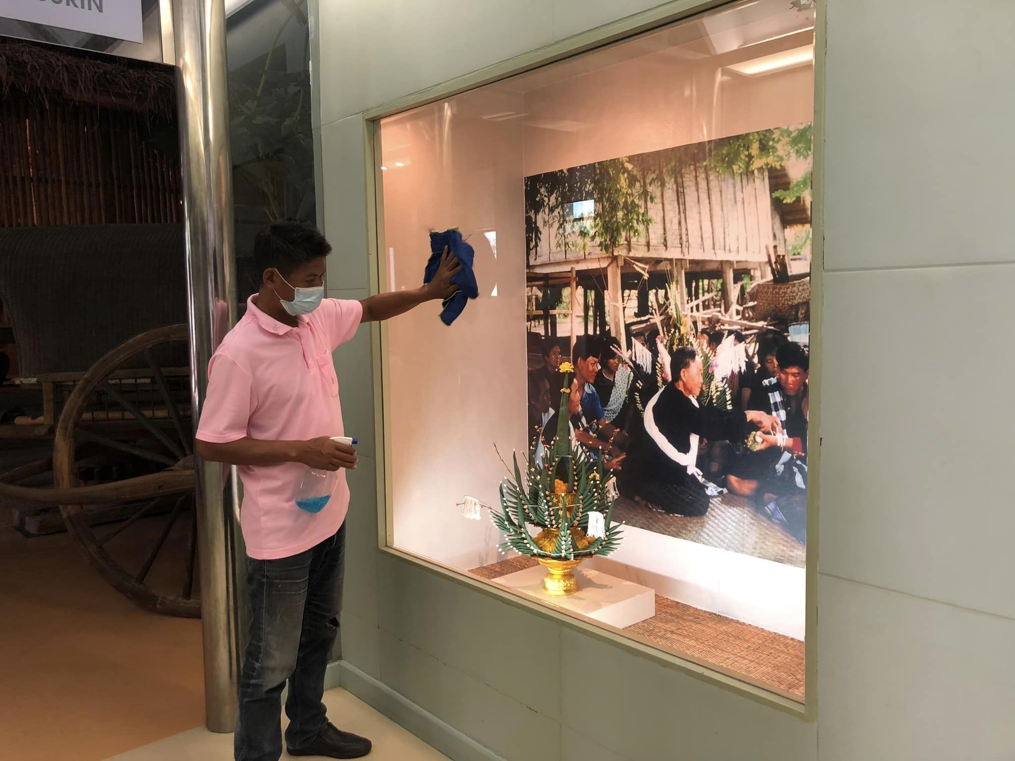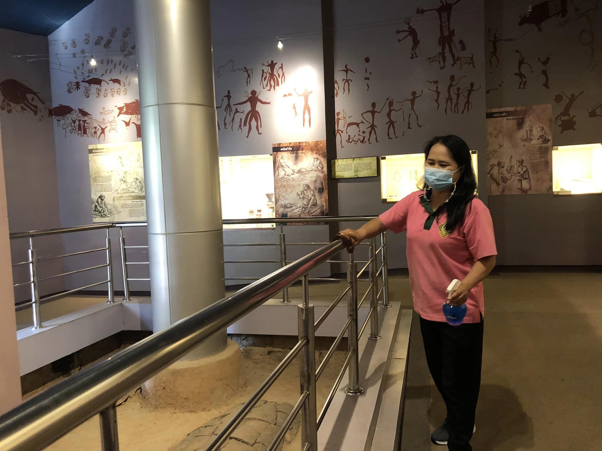 วันอาทิตย์ที่ ๔ พฤศจิกายน พ.ศ.๒๕๖๕ เจ้าหน้าที่พิพิธภัณฑสถานแห่งชาติ สุรินทร์ ร่วมกันทำความสะอาดและฆ่าเชื้อภายในห้องจัดแสดงและบริเวณพิพิธภัณฑสถานแห่งชาติ สุรินทร์ เป็นประจำทุกสัปดาห์ เพื่อเป็นการป้องกันและเฝ้าระวังโรคโควิท ๑๙