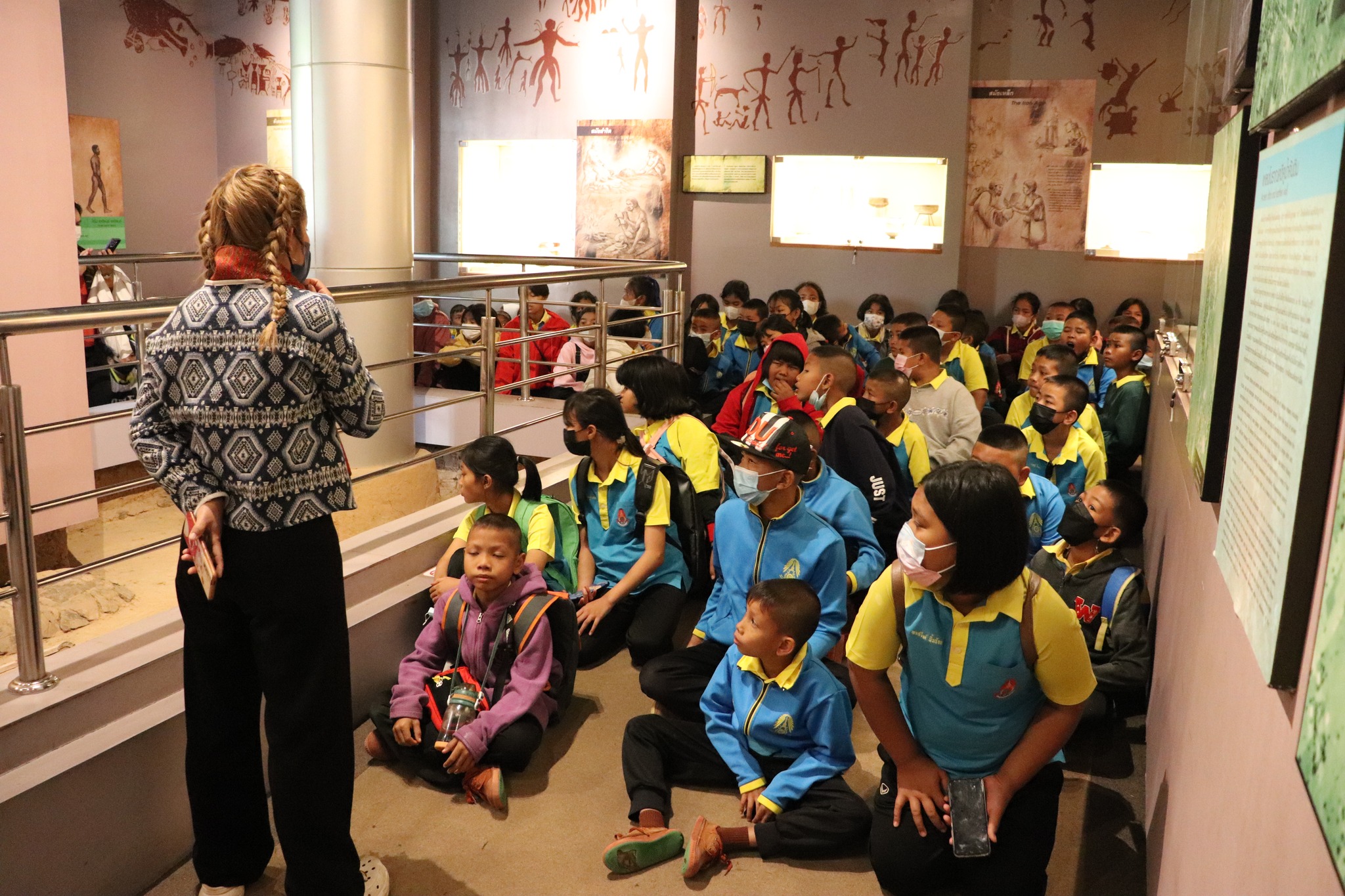 วันศุกร์ที่ ๒๓ ธันวาคม พ.ศ.๒๕๖๕ นักเรียนชั้นอนุบาล ๑ ถึงชั้นประถมศึกษาที่ ๖ โรงเรียนบ้านกะดาด ตำบลโคกยาง อำเภอปราสาท จังหวัดสุรินทร์ จำนวน ๒๙๔ คน คุณครูจำนวน ๓๐ คน เข้าเยี่ยมชมพิพิธภัณฑสถานแห่งชาติ สุรินทร์ แบ่งออกเป็นช่วงเช้าจำนวน ๒๐๐ คน และช่วงบ่าย ๙๔ คน โดยปฏิบัติตามมาตรการเฝ้าระวังการแพร่ระบาดของเชื้อโควิด - ๑๙ อย่างเคร่งครัด โดยมีนางสาวอาภาภรณ์ เปล่งปลั่งศรี นักวิชาการวัฒนธรรม นางถนอม หลวงกลาง นางศรีสุดา ศรีสด พนักงานประจำห้อง ให้การต้อนรับและบรรยายนำชม