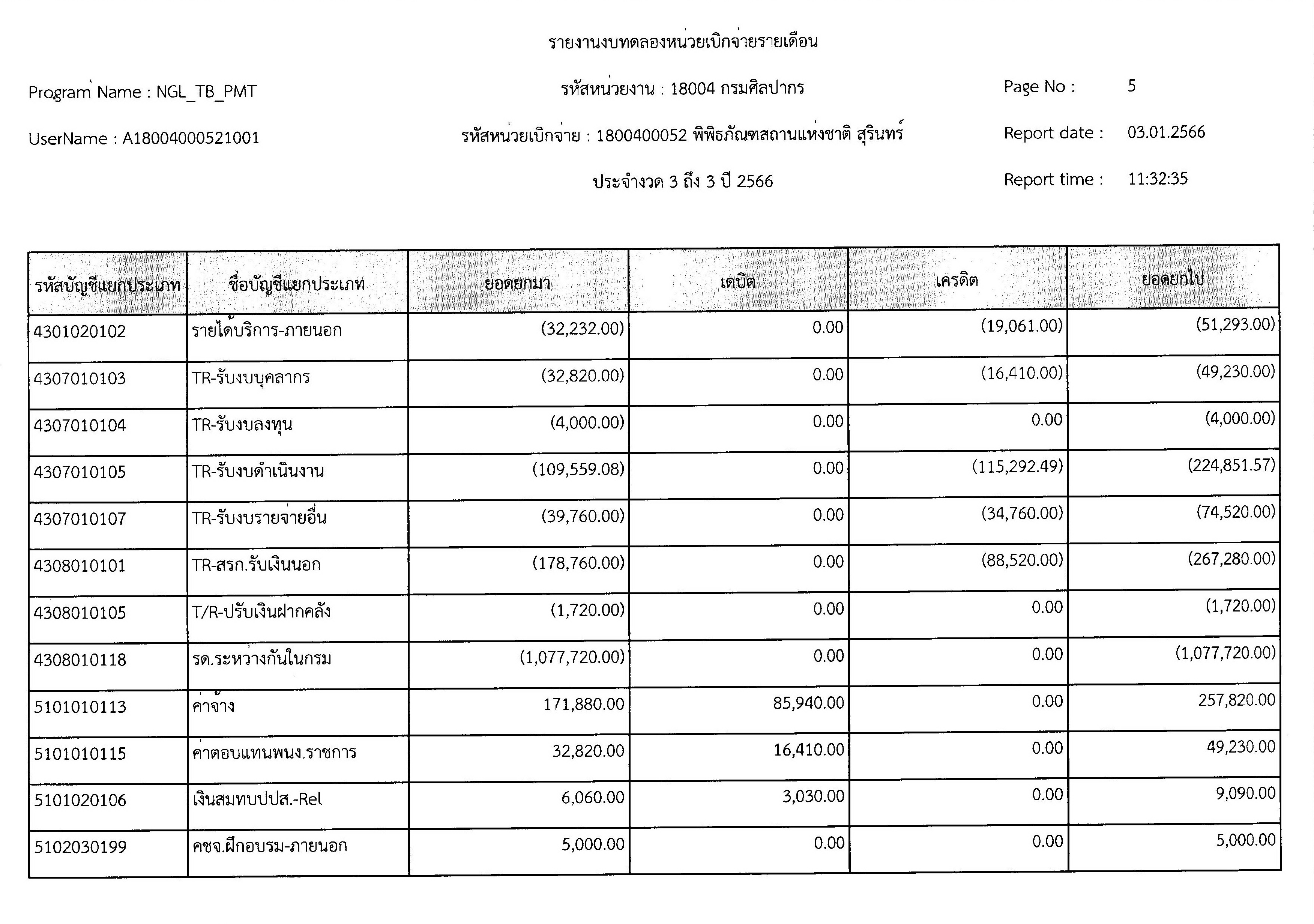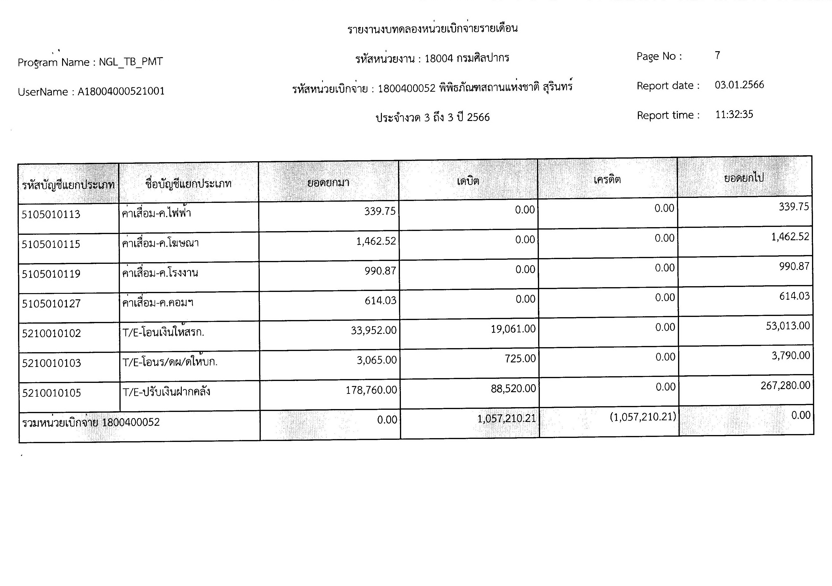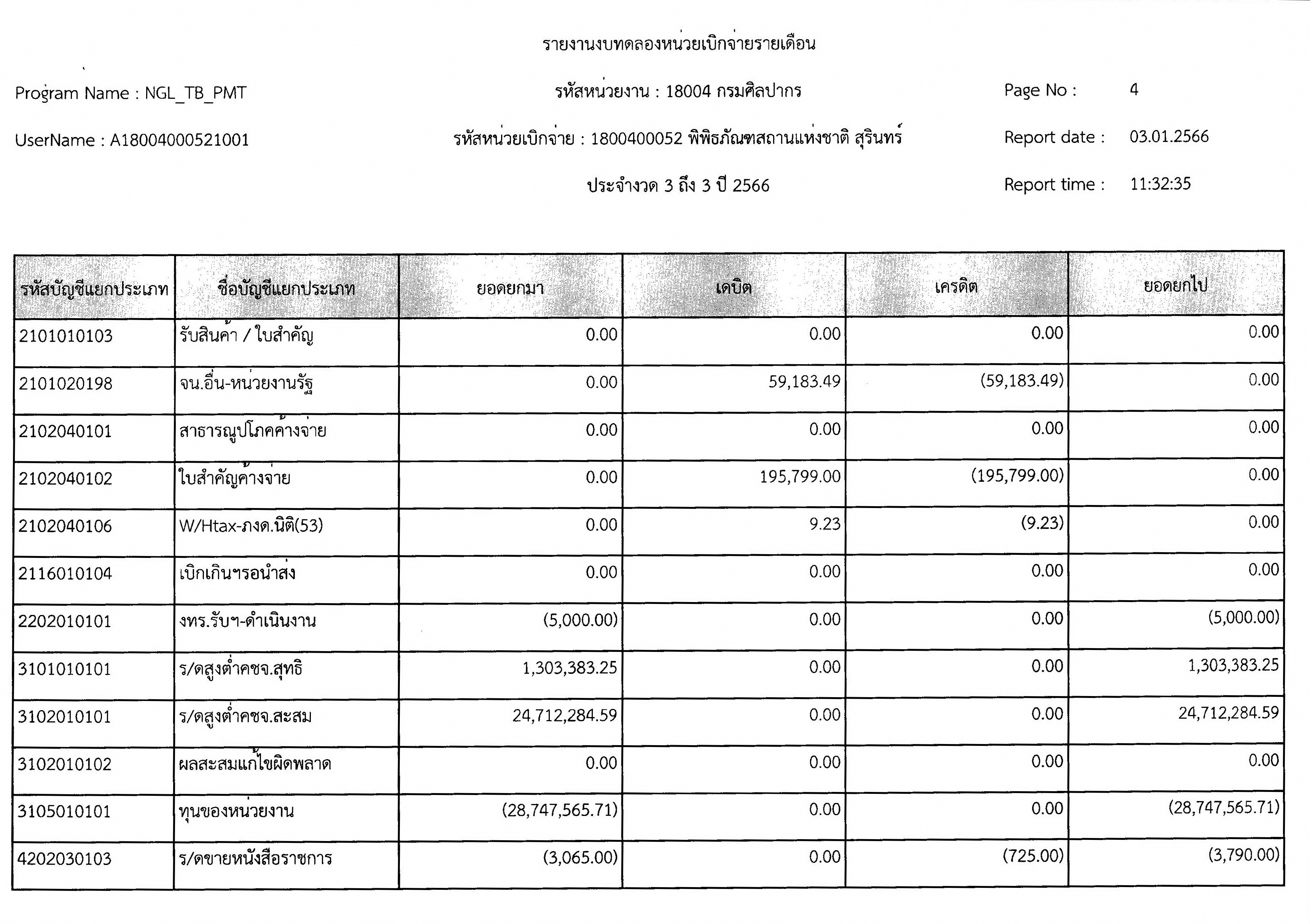 รายงานงบทดลองหน่วยเบิกจ่ายรายเดือนธันวาคม ๒๕๖๕