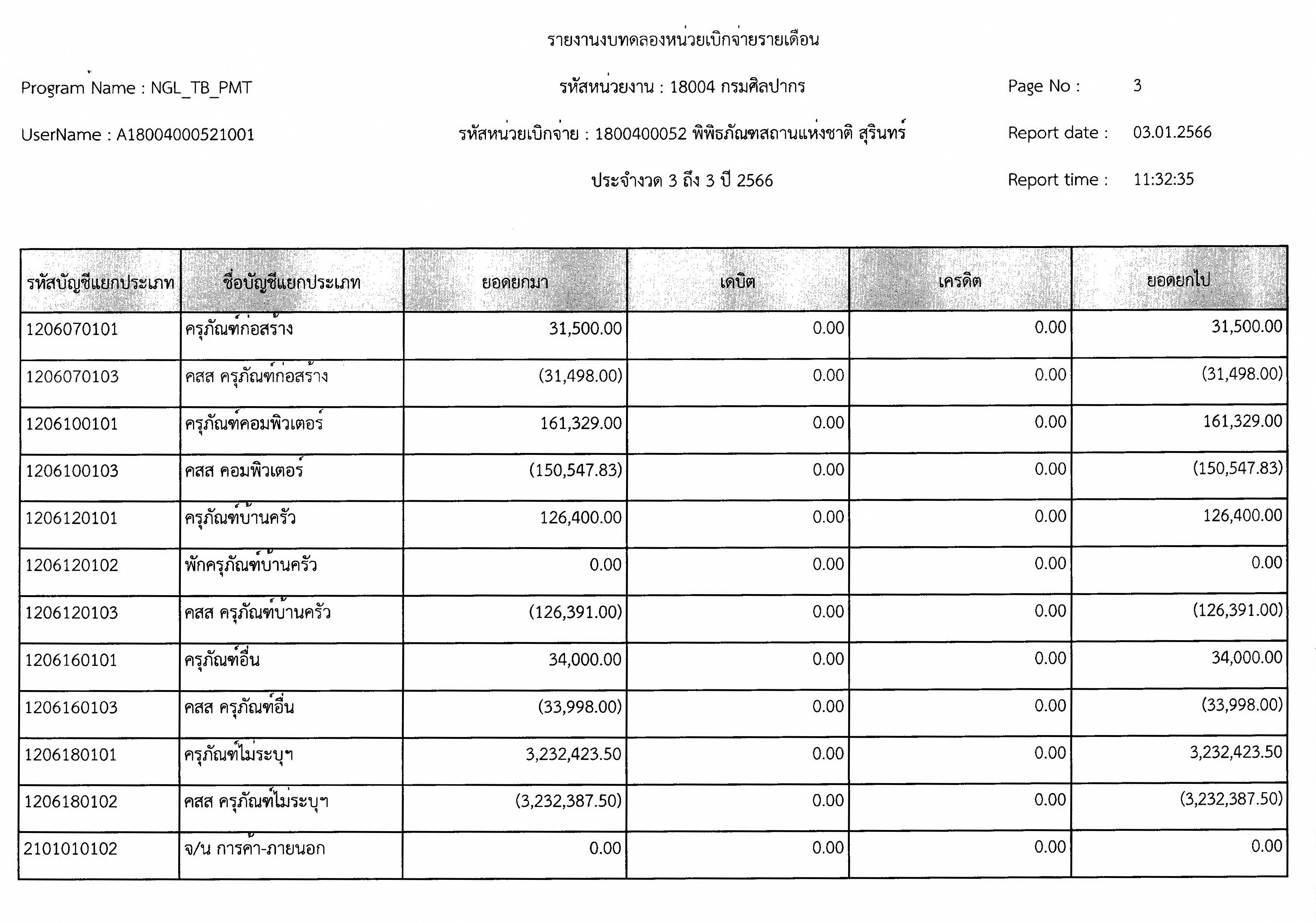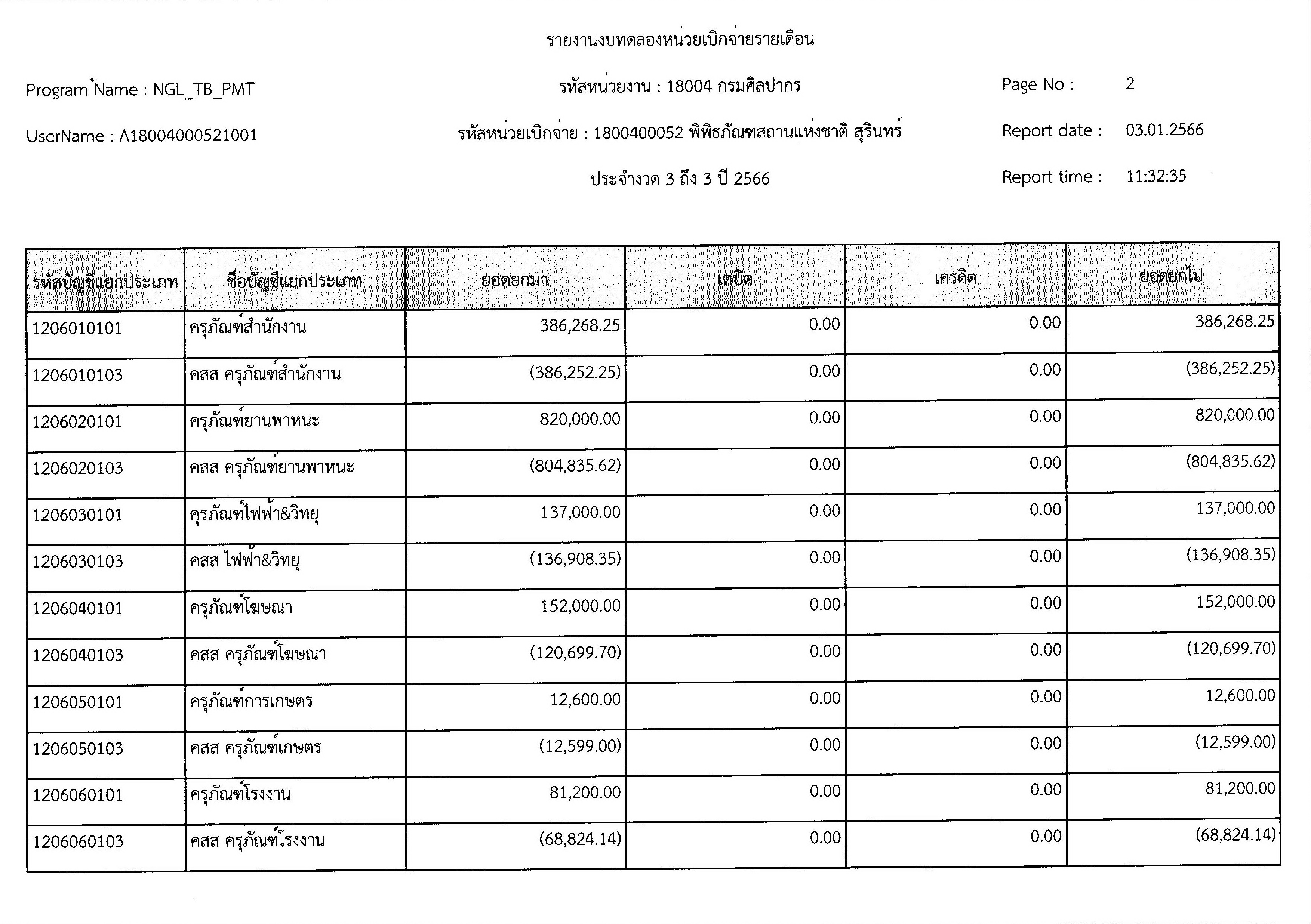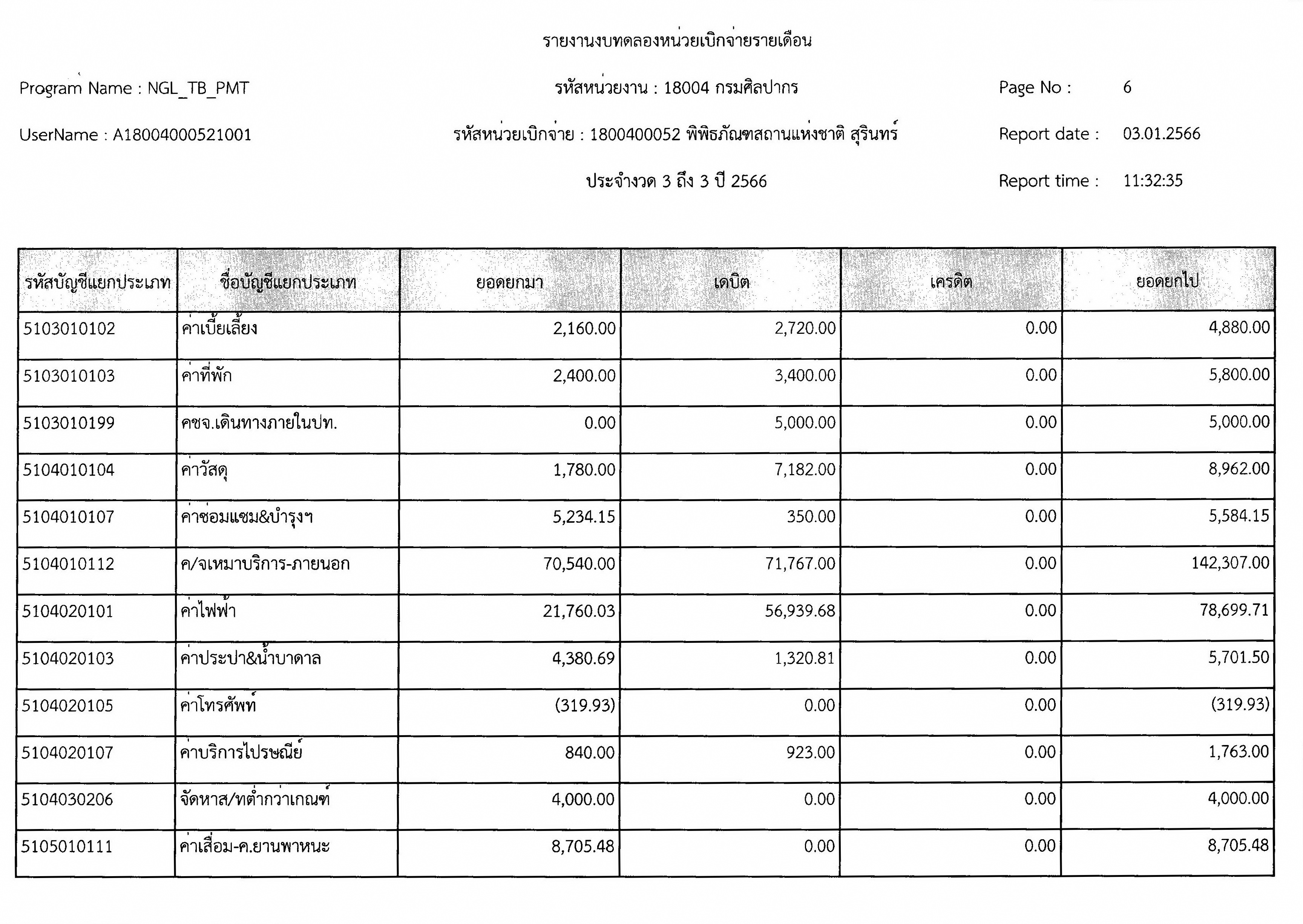 รายงานงบทดลองหน่วยเบิกจ่ายรายเดือนธันวาคม ๒๕๖๕