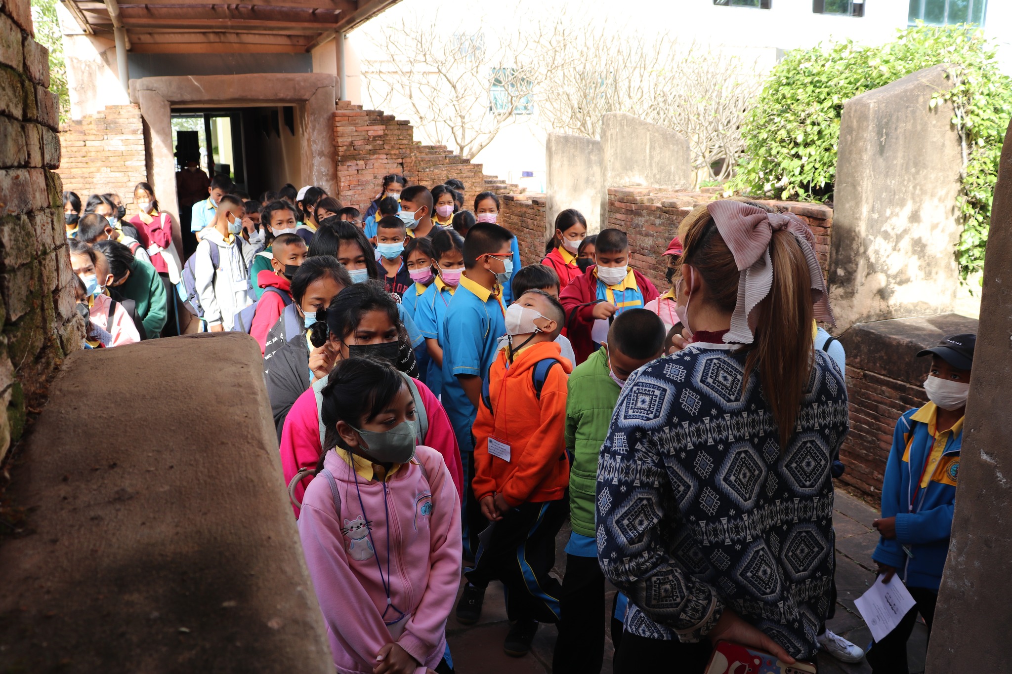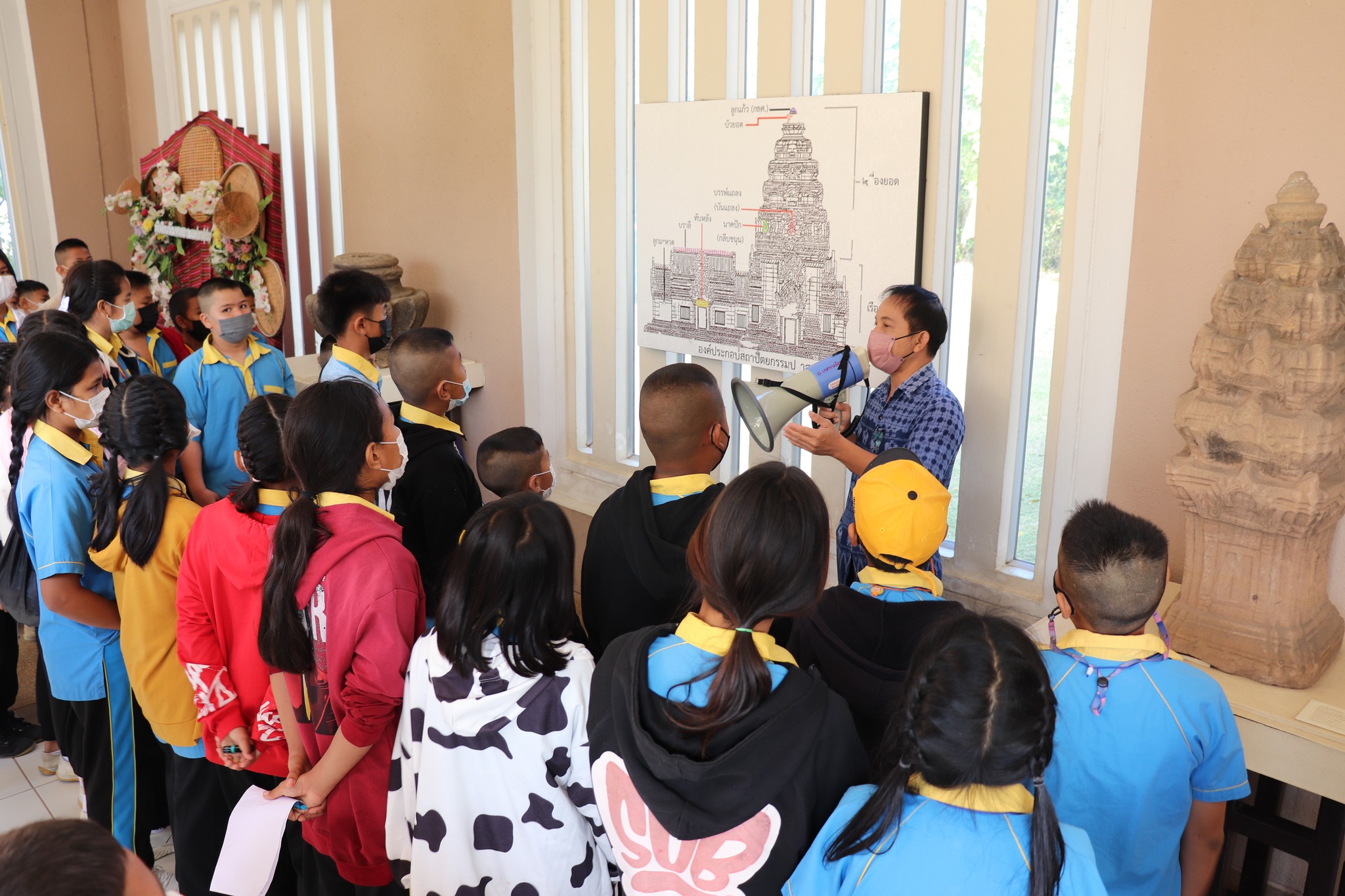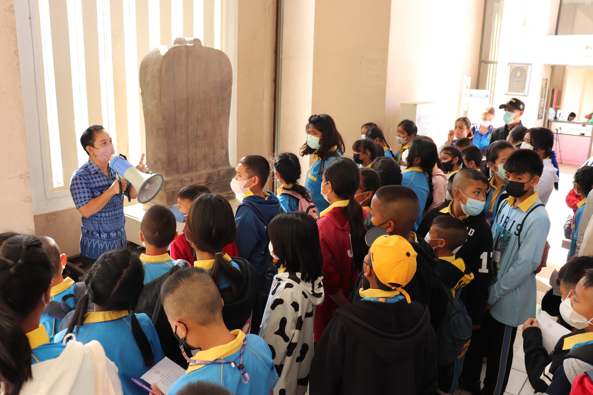 วันศุกร์ที่ ๖ มกราคม พ.ศ. ๒๕๖๕ เวลา ๐๙.๓๐ น. นักเรียนชั้นประถมศึกษาที่ ๔-๖ โรงเรียนเทศบาลสังขะ อำเภอสังขะ จังหวัดสุรินทร์ จำนวน ๑๓๓ คน คุณครู ๑๕ คน เข้าเยี่ยมชมพิพิธภัณฑสถานแห่งชาติ สุรินทร์ โดยแบ่งการบรรยายนำชมออกเป็น ๒ กลุ่มย่อย เพื่อป้องกันการแพร่ระบาดของเชื้อโควิด - ๑๙ โดยมีนายกรภัทร์ สุขใหญ่ พนักงานประจำพิพิธภัณฑ์ และนางสาวอาภาภรณ์ เปล่งปลั่งศรี นักวิชาการวัฒนธรรม ให้การต้อนรับและบรรยายนำชม