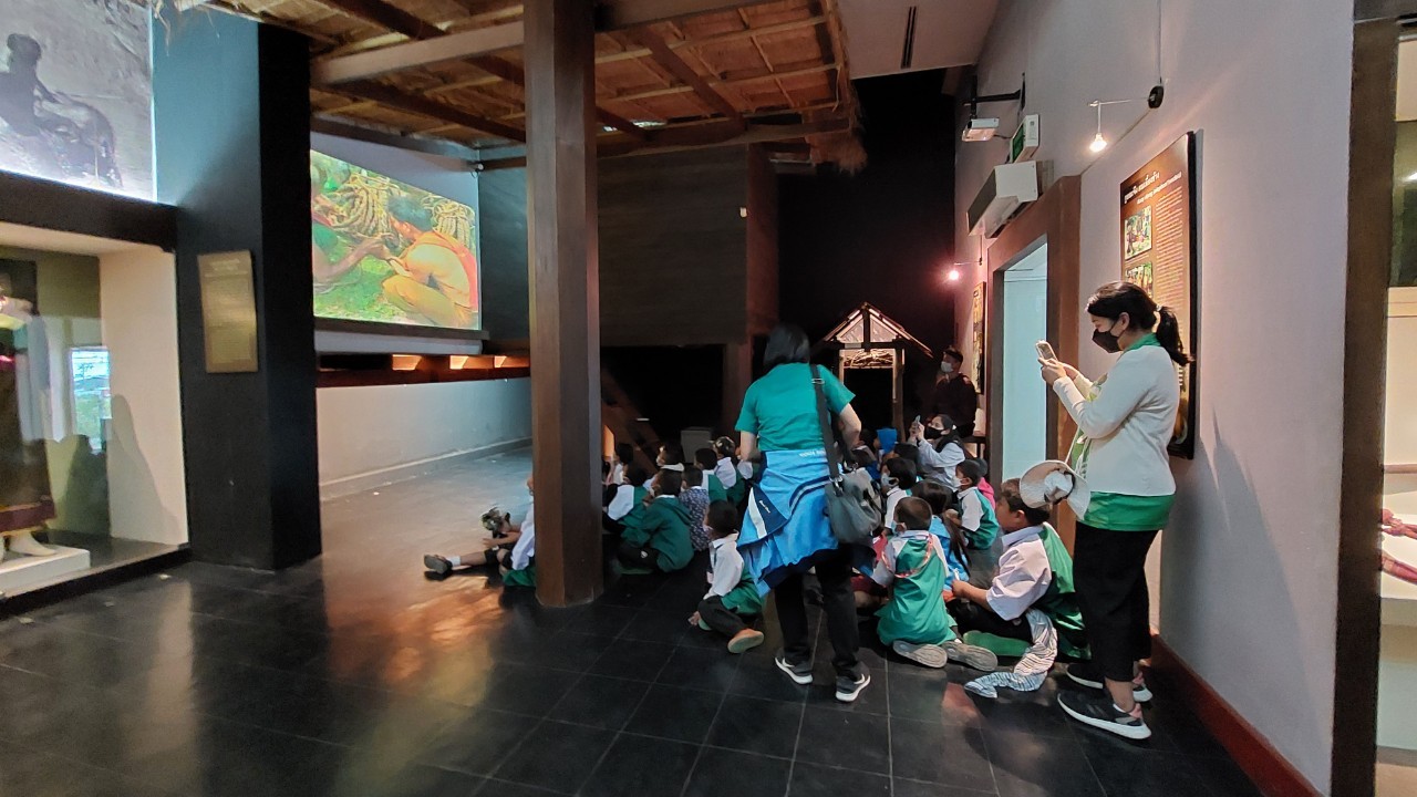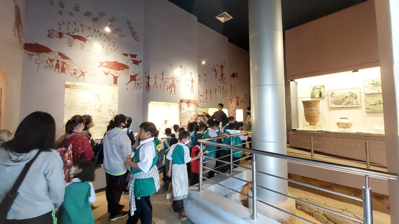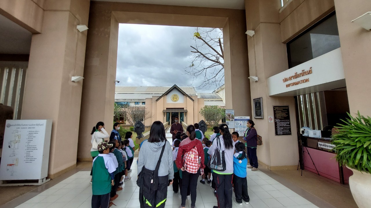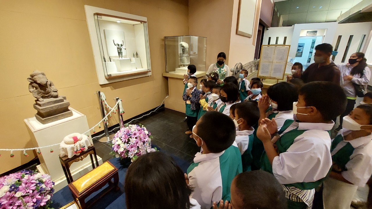 วันศุกร์ที่ ๖ มกราคม พ.ศ. ๒๕๖๕ เวลา ๑๓.๐๐ น. นักเรียนชั้นอนุบาล ๑ ถึงชั้นประถมศึกษาที่ ๒ โรงเรียนบ้านหนองกง ตำบลนอกเมือง อำเภอเมืองสุรินทร์ จังหวัดสุรินทร์ จำนวน ๔๐ คน คุณครู ๕ คน เข้าเยี่ยมชมพิพิธภัณฑสถานแห่งชาติ สุรินทร์ โดยปฏิบัติตามมาตรการเฝ้าระวังการแพร่ระบาดของเชื้อโควิด - ๑๙ อย่างเคร่งครัด โดยมีนายแก่นแก้ว หอมนวล พนักงานประจำห้อง ให้การต้อนรับและบรรยายนำชม