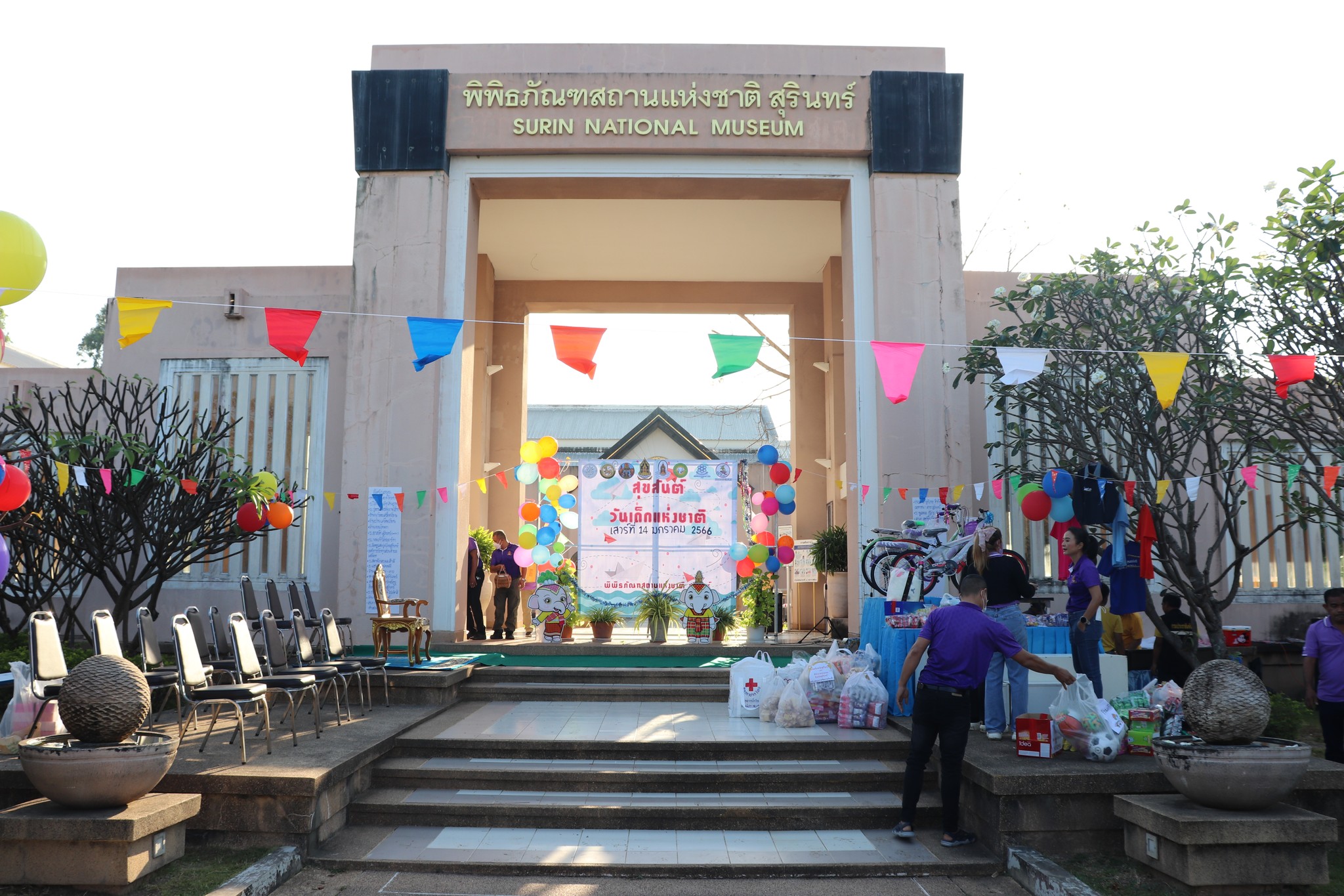 วันเสาร์ที่ ๑๔ มกราคม ๒๕๖๖ พิพิธภัณฑสถานแห่งชาติ สุรินทร์ จัดกิจกรรมวันเด็กแห่งชาติประจำปี พ.ศ. ๒๕๖๖ โดยบูรณาการร่วมกับจังหวัดสุรินทร์ สำนักงานวัฒนธรรมจังหวัดสุรินทร์ สภาวัฒนธรรมจังหวัดสุรินทร์ สถานีวิทยุกระจายเสียงแห่งประเทศไทยจังหวัดสุรินทร์ และสหกรณ์ออมทรัพย์คุรุสัมพันธ์จังหวัดสุรินทร์ มีหน่วยงานภาครัฐ ภาคเอกชน ให้การสนันสนุนการจัดกิจกรรม โดยมีนายสรสาสน์ สีเพ็ง รองผู้ว่าราชการจังหวัดสุรินทร์ เป็นประธานเปิดงาน กิจกรรมประกอบด้วยการแสดงบนเวที การประกวดร้องเพลง กิจกรรมPlay&Learn เพลินอุรา @พิพิธภัณฑสถานแห่งขาติ สุรินทร์ มีเยาวชน เด็กและผู้ปกครอง ร่วมกิจกรรมประมาณ ๕๔๔ คน