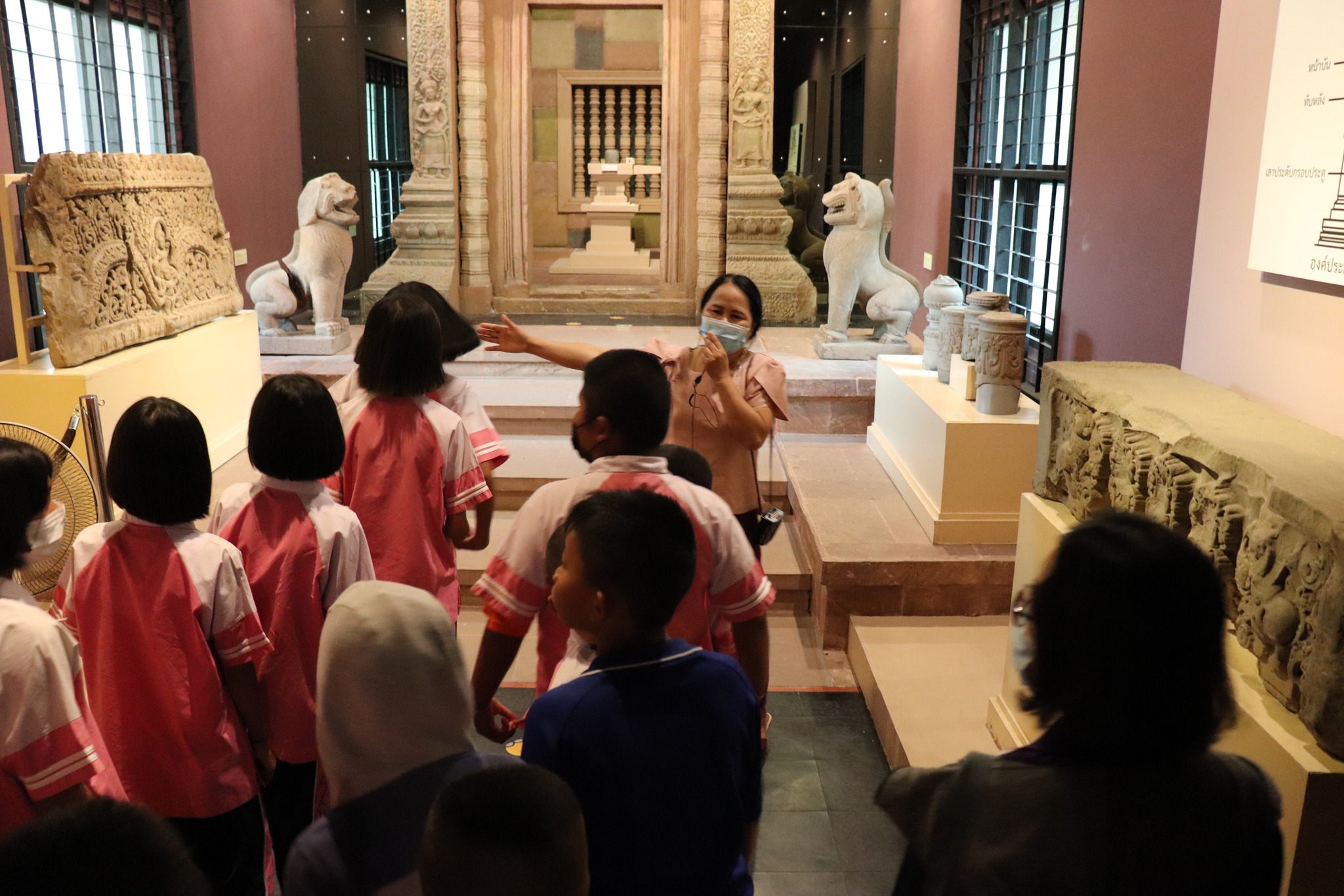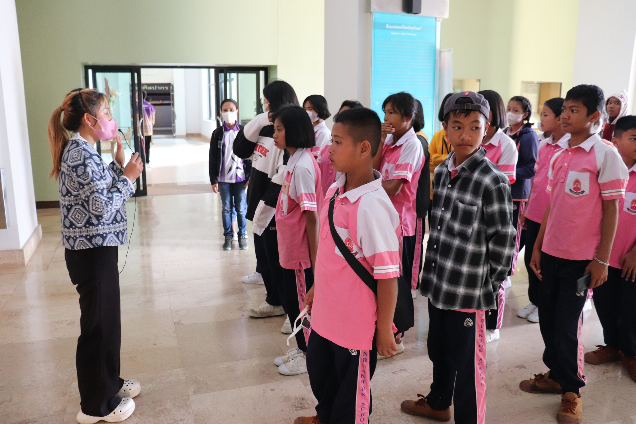 วันศุกร์ที่ ๑๗ กุมภาพันธ์ พ.ศ. ๒๕๖๖ เวลา ๑๕.๐๐ น. นักเรียนชั้นประถมศึกษาที่ ๔-๖ โรงเรียนบ้านบัวโคก ตำบลบัวโคก อำเภอท่าตูม จังหวัดสุรินทร์ จำนวน ๗๒ คน คุณครู ๖ คน เข้าเยี่ยมชมพิพิธภัณฑสถานแห่งชาติ สุรินทร์ โดยแบ่งการบรรยายนำชมออกเป็น ๒ กลุ่มย่อย เพื่อป้องกันการแพร่ระบาดของเชื้อโควิด - ๑๙ โดยมีนางสาวอาภาภรณ์ เปล่งปลั่งศรี นักวิชาการวัฒนธรรม และนางศรีสุดา ศรีสด พนักงานประจำห้อง ให้การต้อนรับและบรรยายนำชม