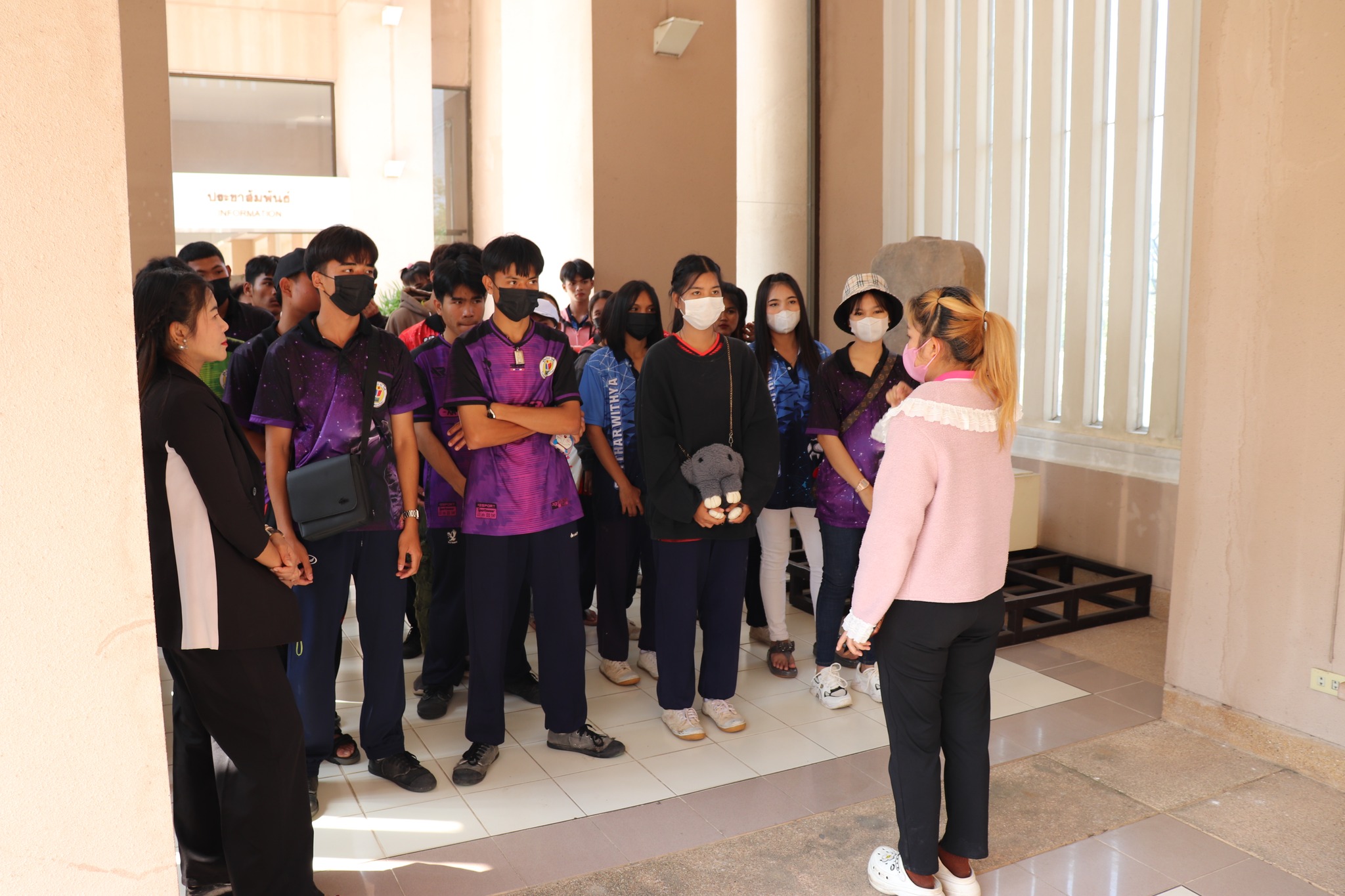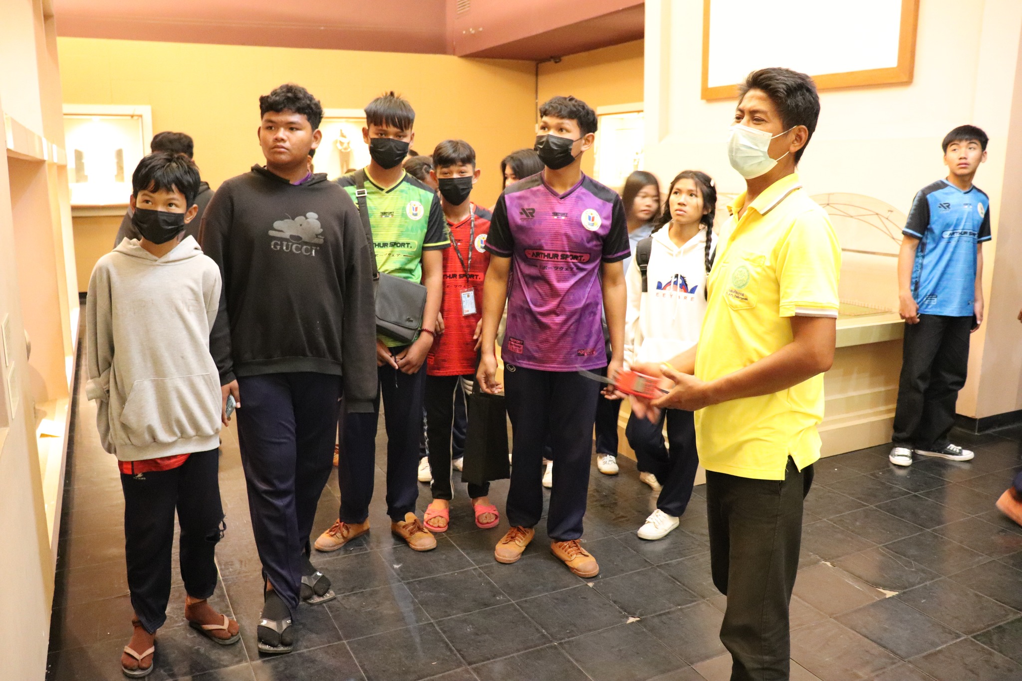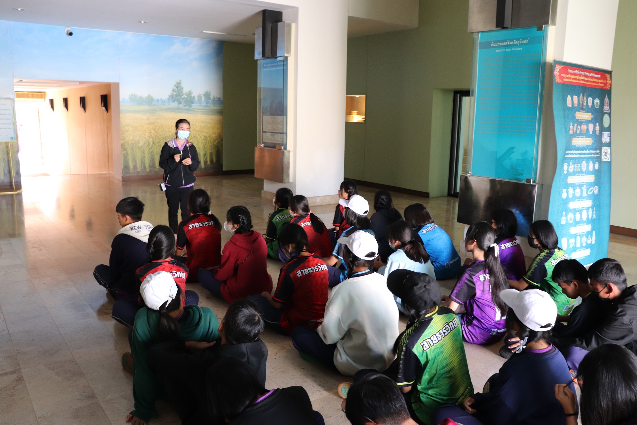 วันเสาร์ที่ ๑๘ กุมภาพันธ์ พ.ศ. ๒๕๖๖ เวลา ๑๐.๓๐ น. นักเรียนชั้นมัธยมศึกษาปีที่ ๓ และ ๖ โรงเรียนสายธารวิทยา อำเภอกันทราลักษ์ จังหวัดศรีสะเกษ จำนวน ๑๓๗ คน คุณครู ๑๐ คน เข้าเยี่ยมชมพิพิธภัณฑสถานแห่งชาติ สุรินทร์ โดยแบ่งการบรรยายนำชมออกเป็น ๔ กลุ่มย่อย เพื่อป้องกันการแพร่ระบาดของเชื้อโควิด - ๑๙ โดยมีนางสาวอาภาภรณ์ เปล่งปลั่งศรี นักวิชาการวัฒนธรรม และ พนักงานประจำห้องทุกคน ให้การต้อนรับและบรรยายนำชม