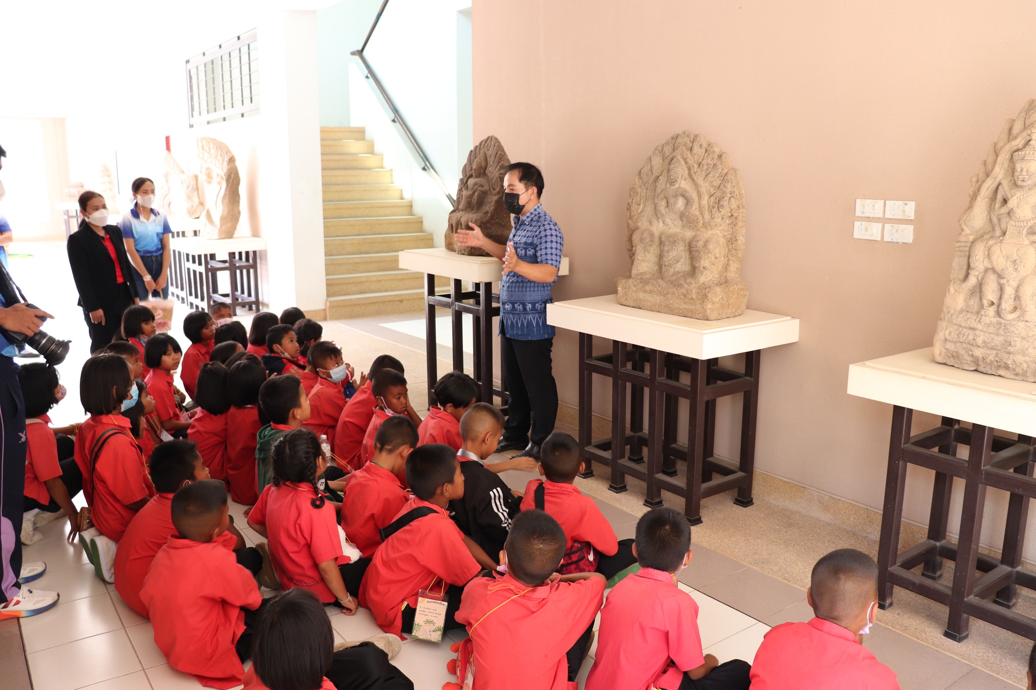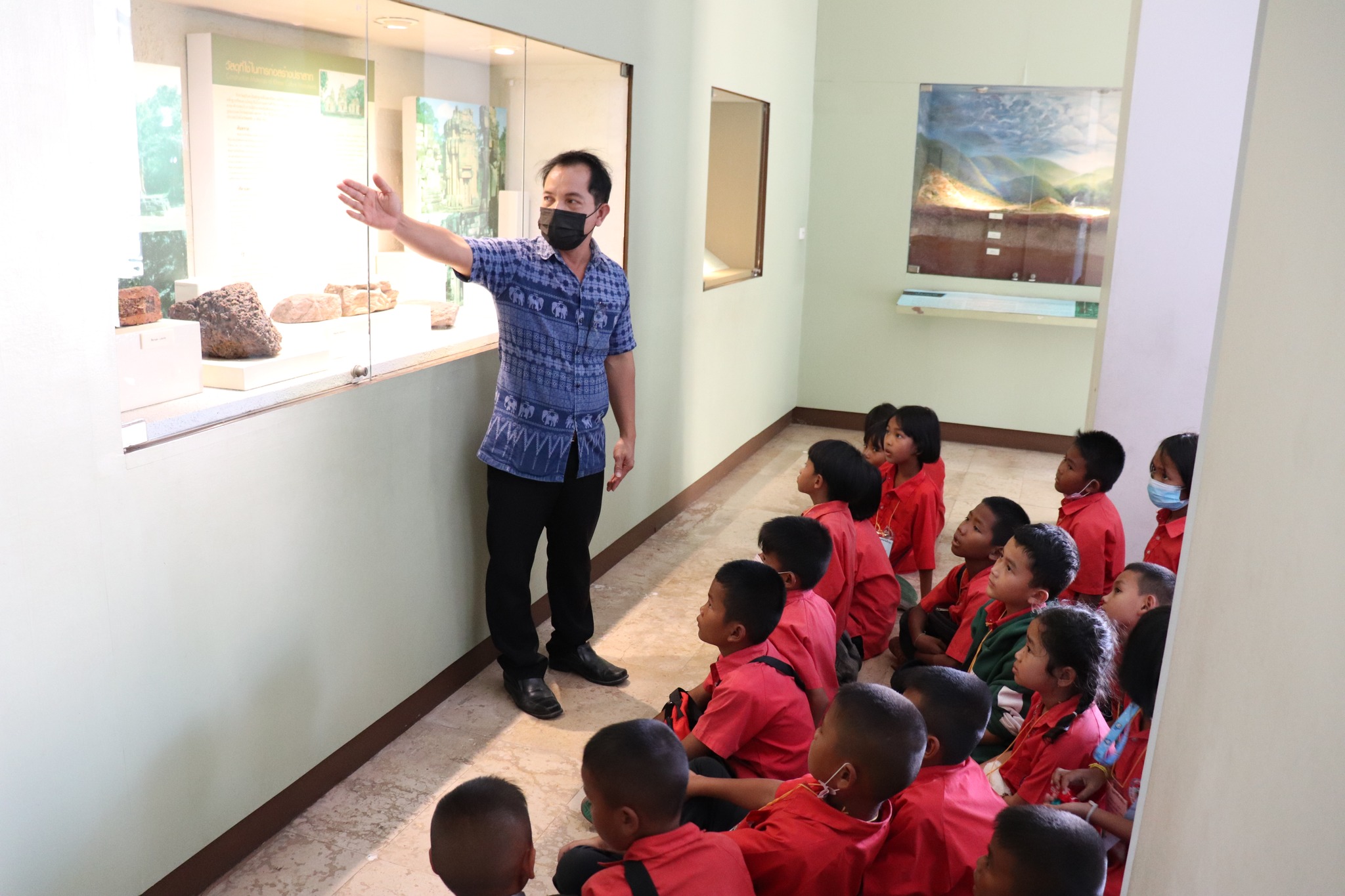 วันศุกร์ที่ ๒๔ กุมภาพันธ์ พ.ศ. ๒๕๖๖ เวลา ๑๔.๐๐ น. นักเรียนชั้นประถมศึกษาที่ ๑-๓ โรงเรียนบ้านเสกกอง ตำบลหนองใหญ่ อำเภอปราสาท จังหวัดสุรินทร์ จำนวน ๔๒ คน คุณครู ๘ คน เข้าเยี่ยมชมพิพิธภัณฑสถานแห่งชาติ สุรินทร์ โดยปฏิบัติตามมาตรการเฝ้าระวังการแพร่ระบาดของเชื้อโควิด - ๑๙ อย่างเคร่งครัด โดยมีนายกรภัทร์ สุขใหญ่ พนักงานประจำพิพิธภัณฑ์ ให้การต้อนรับและบรรยายนำชม