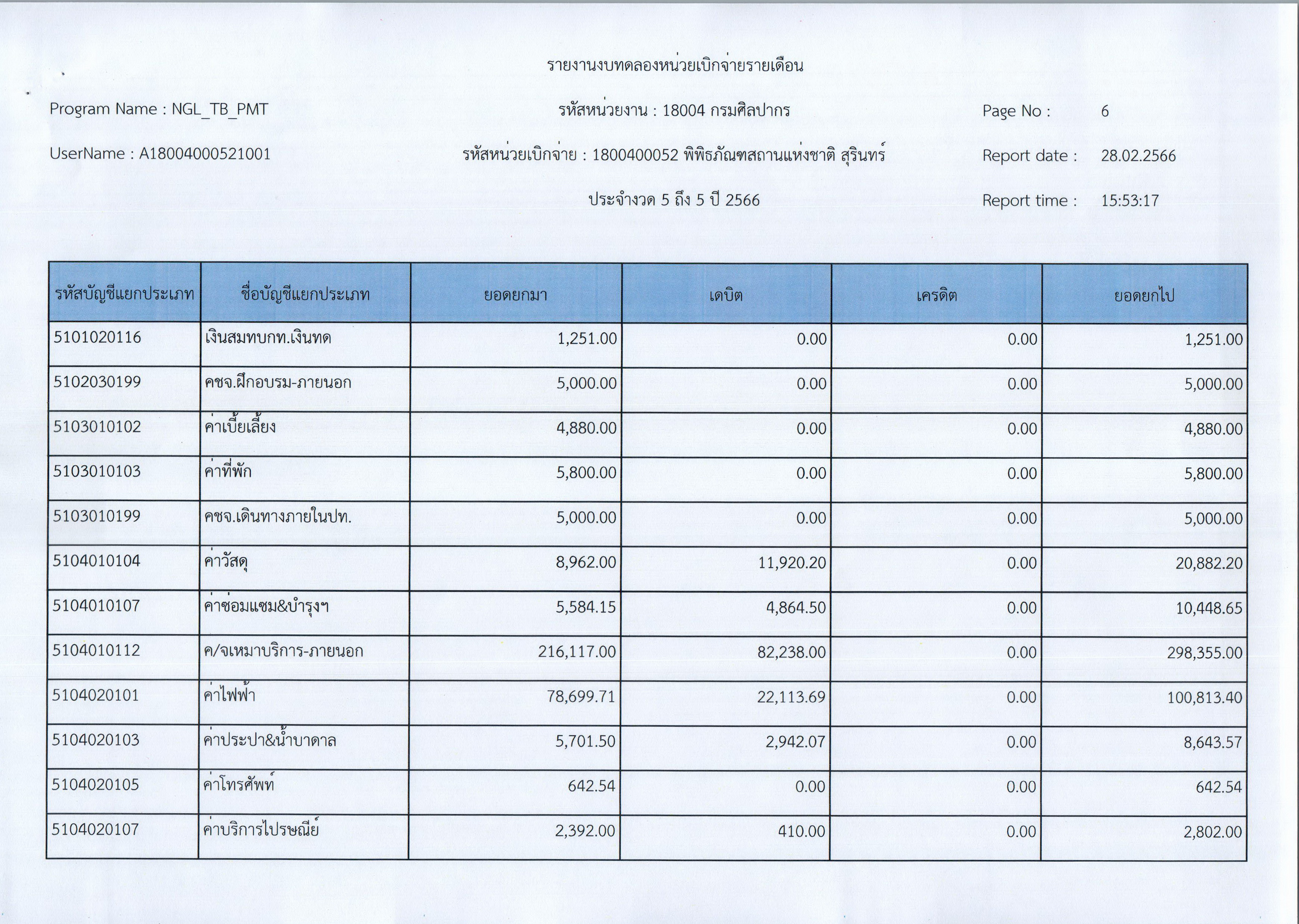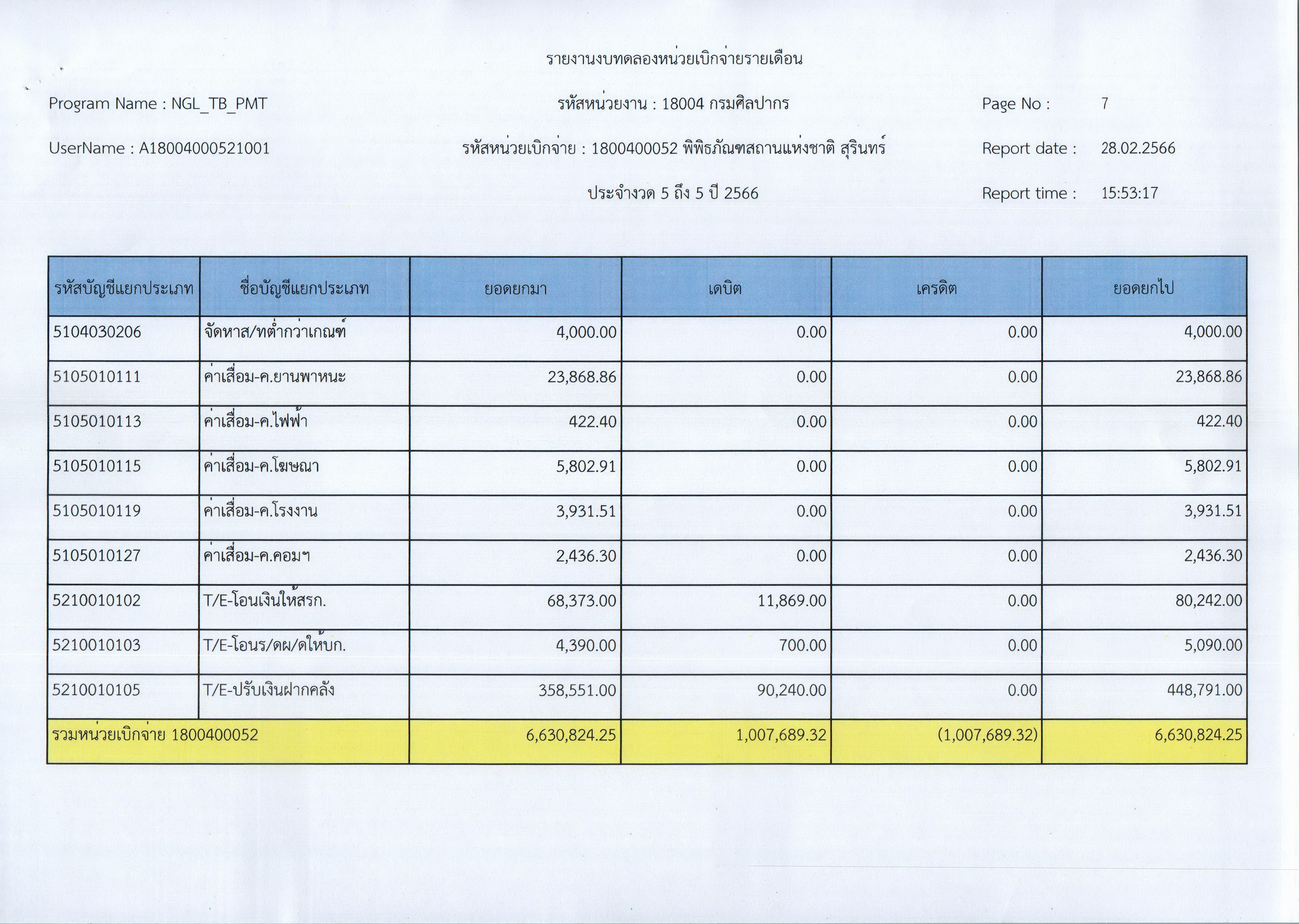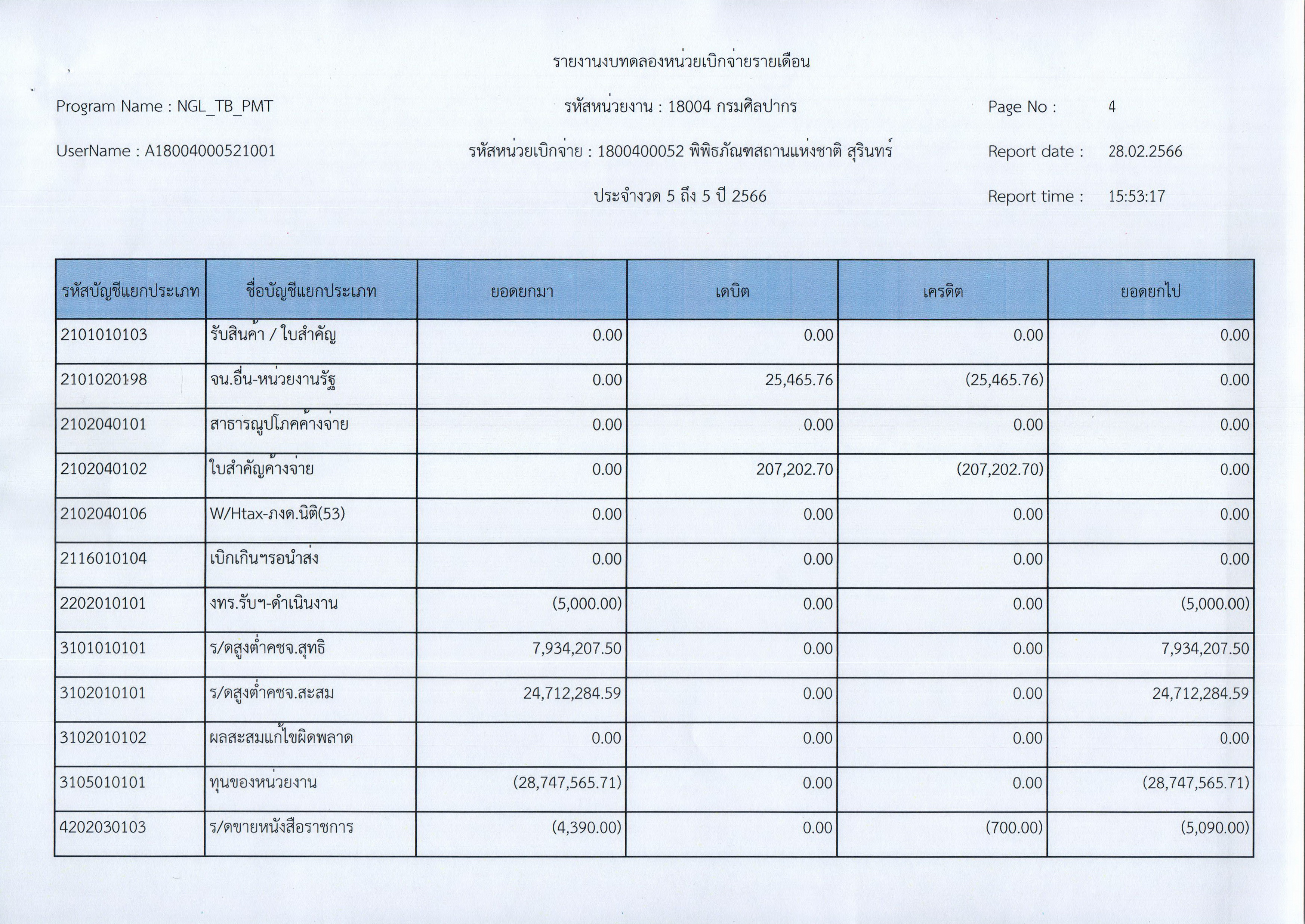 รายงานงบทดลองประจำเดือน กุมภาพันธ์ พ.ศ. ๒๕๖๖