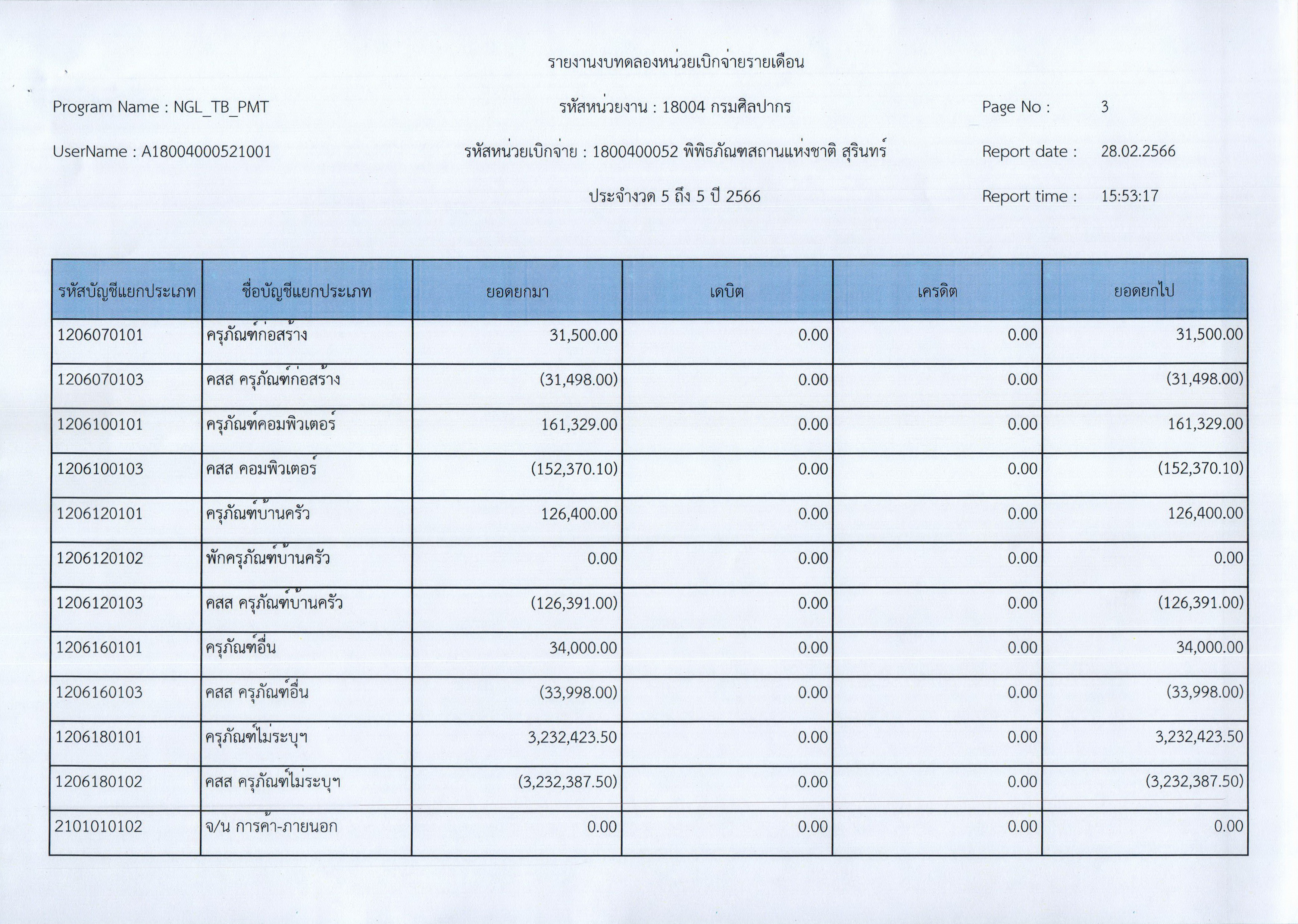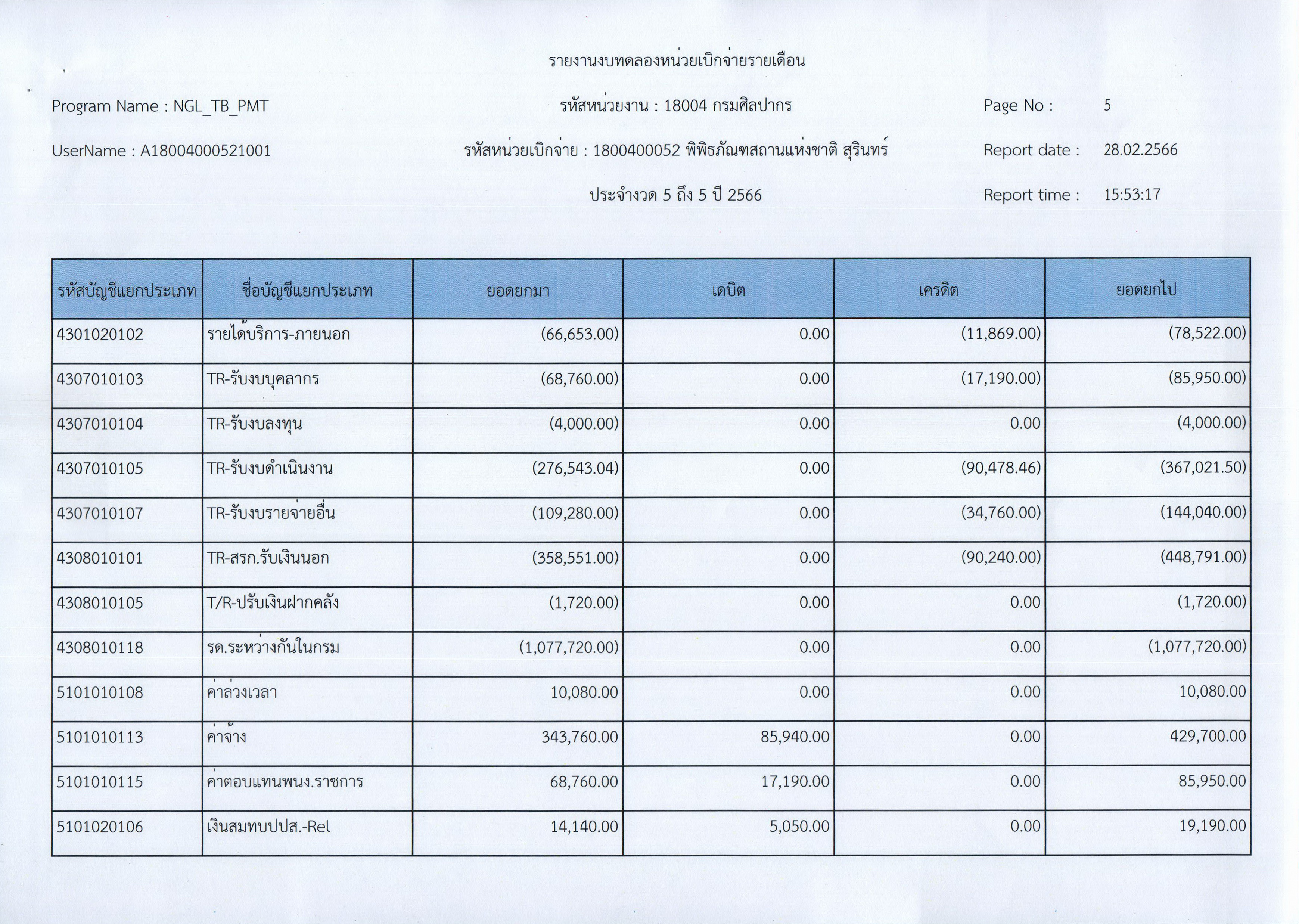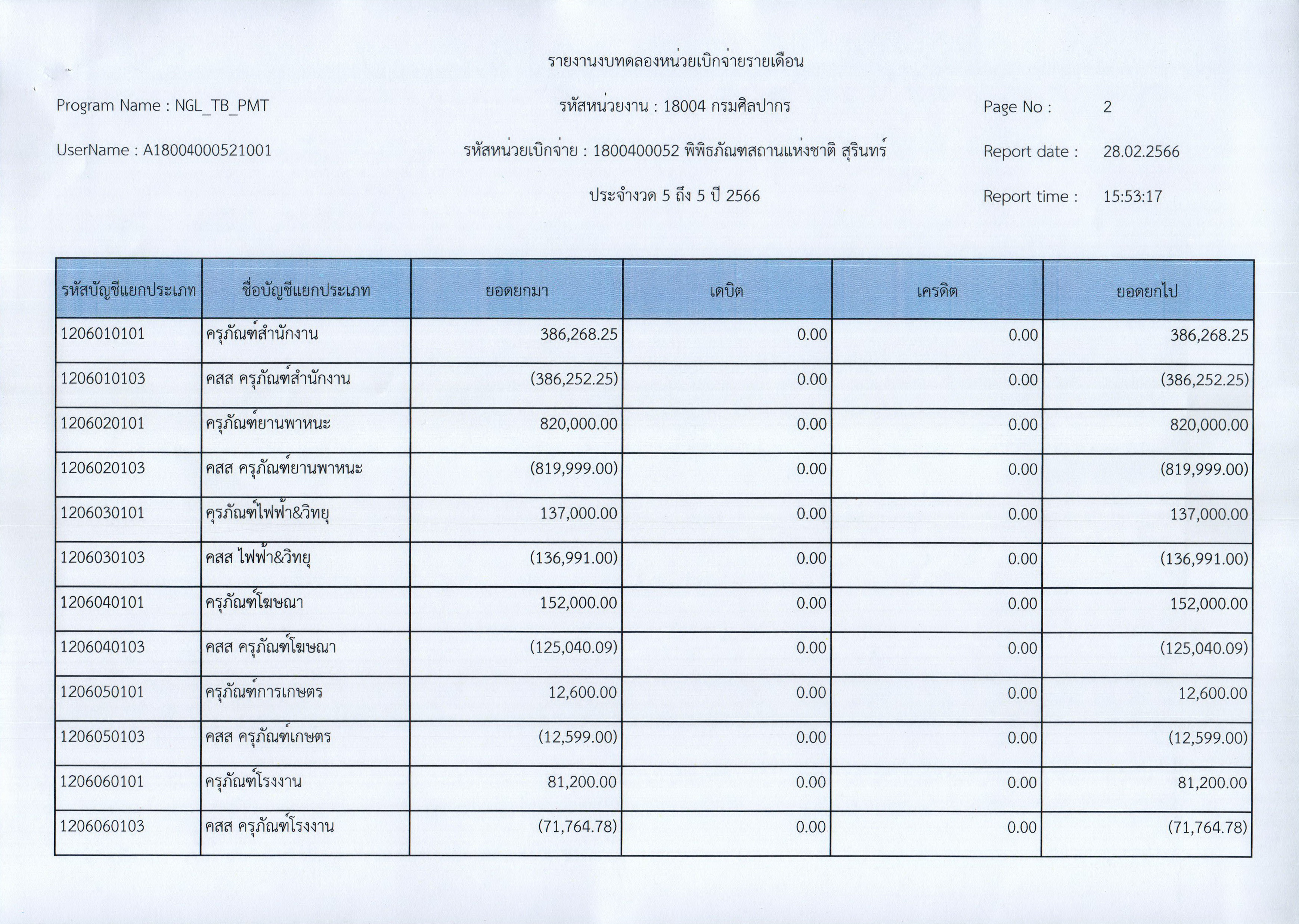 รายงานงบทดลองประจำเดือน กุมภาพันธ์ พ.ศ. ๒๕๖๖