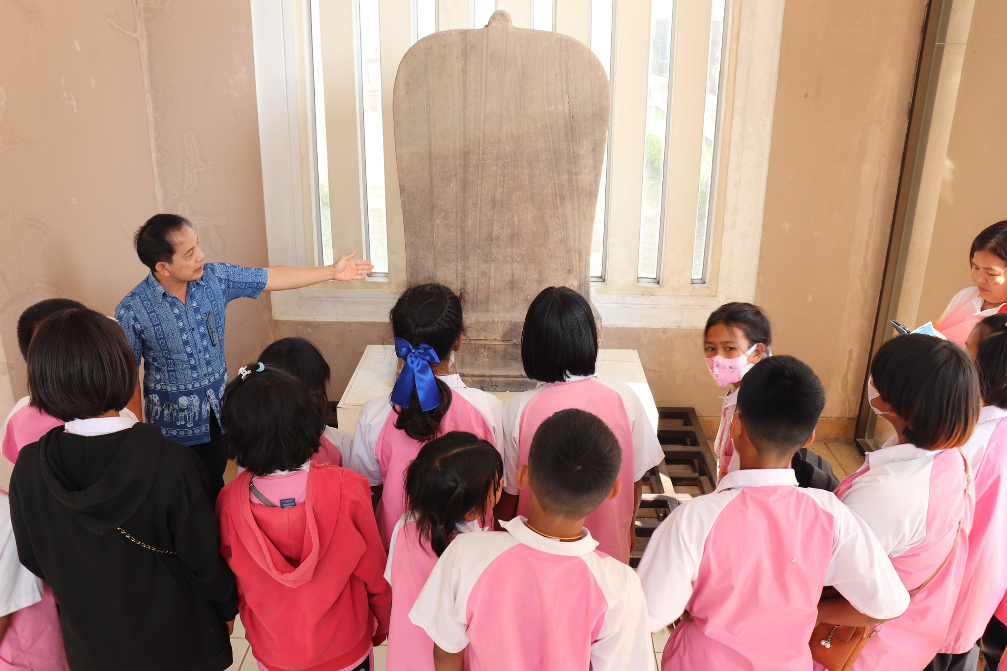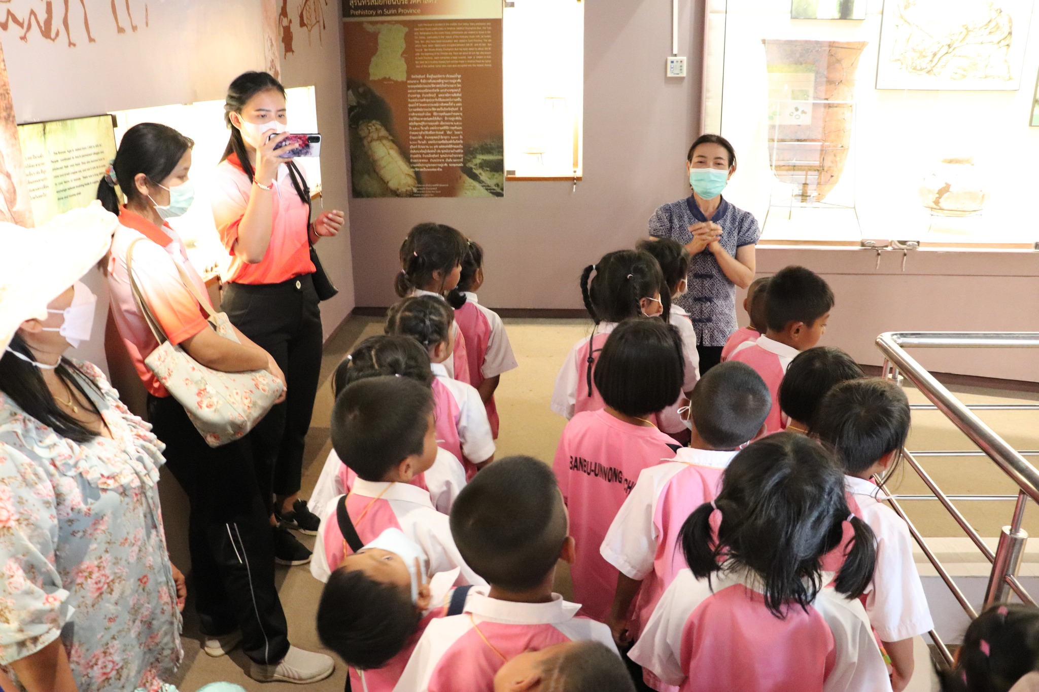 วันศุกร์ที่ ๓ มีนาคม พ.ศ. ๒๕๖๖ เวลา ๑๕.๓๐ น. นักเรียนชั้นอนุบาล ๑ ถึงชั้นประถมศึกษาที่ ๖ โรงเรียนบ้านบุอันโนง ตำบลปราสาททนง อำเภอปราสาท จังหวัดสุรินทร์ จำนวน ๙๘ คน คุณครูและผู้ปกครอง ๑๐ คน เข้าเยี่ยมชมพิพิธภัณฑสถานแห่งชาติ สุรินทร์ โดยแบ่งการบรรยายนำชมออกเป็น ๓ กลุ่มย่อย เพื่อป้องกันการแพร่ระบาดของเชื้อโควิด - ๑๙ โดยมีนายกรภัทร์ สุขใหญ่ พนักงานประจำพิพิธภัณฑ์ นางถนอม หลวงกลาง และนางสาวอภิญญา สุขใหญ่ พนักงานประจำห้อง ให้การต้อนรับและบรรยายนำชม