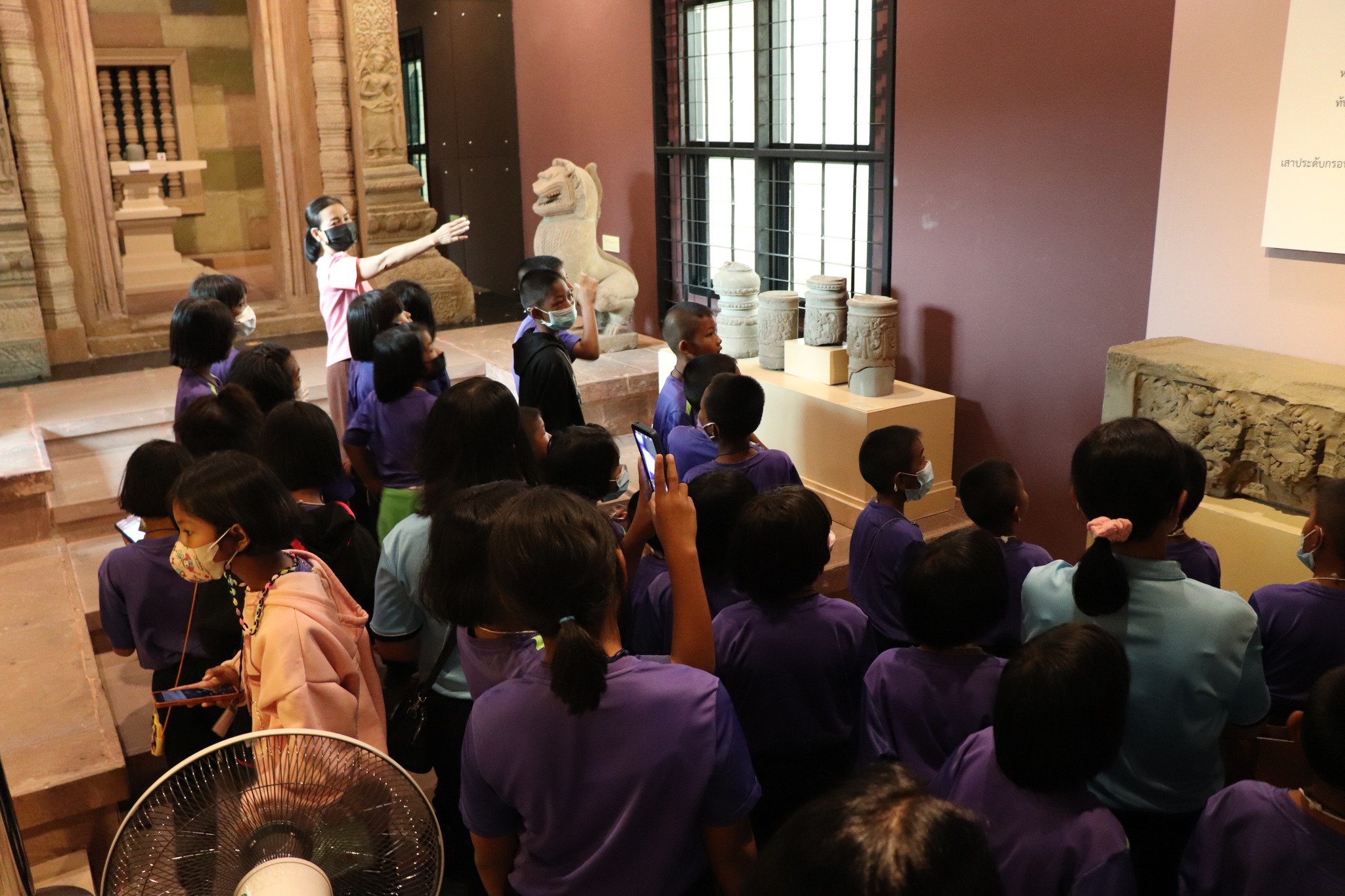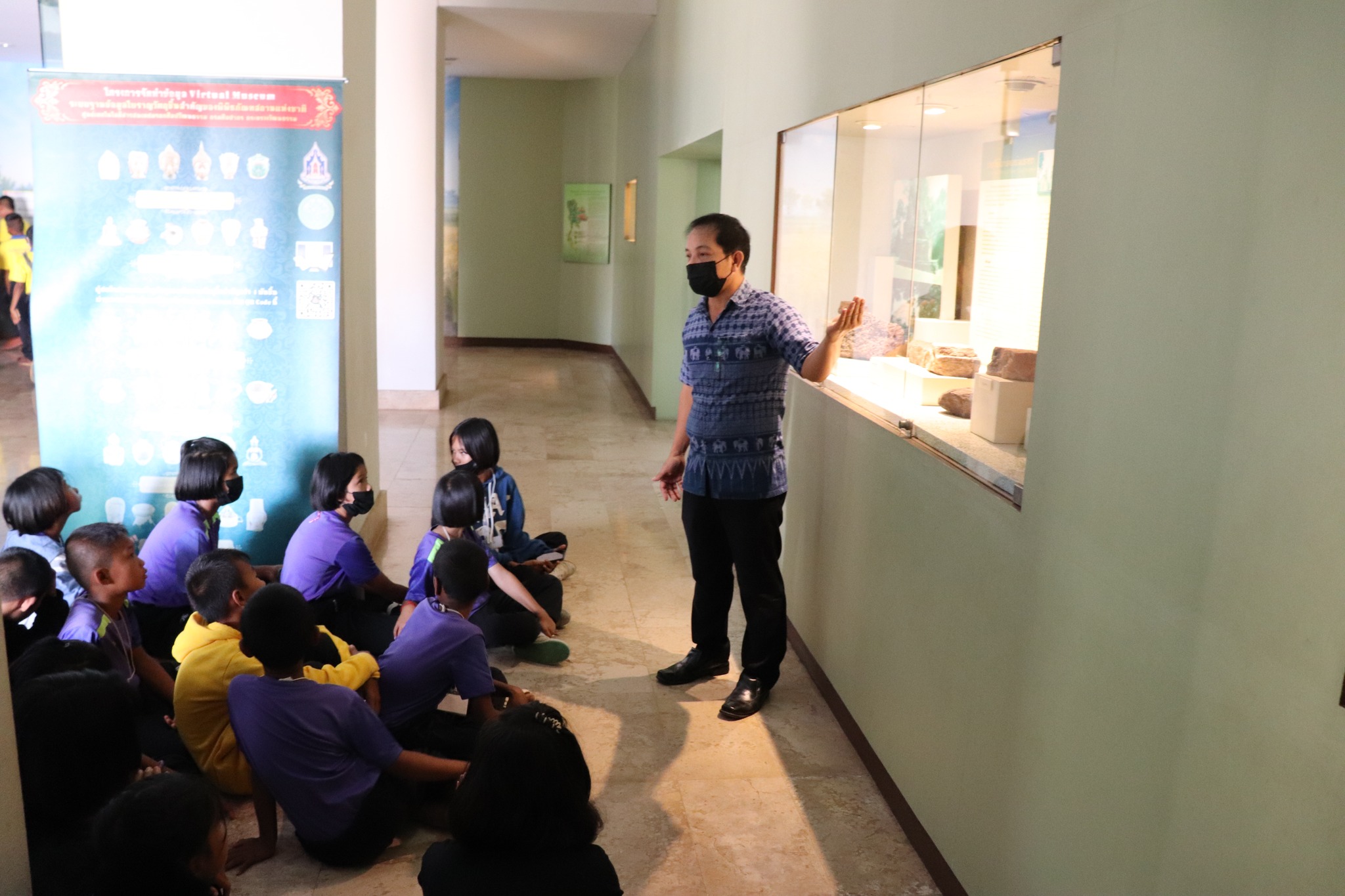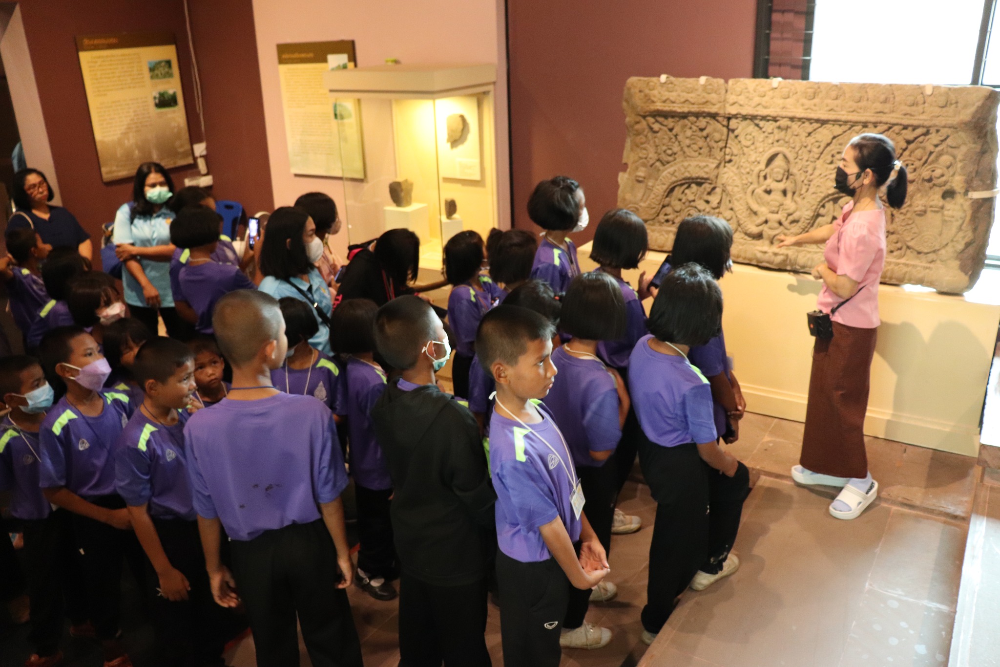 วันศุกร์ที่ ๑๗ มีนาคม พ.ศ. ๒๕๖๖ เวลา ๐๙.๓๐ น. นักเรียนชั้นอนุบาล ๒ ถึงชั้นประถมศึกษาที่ ๖ โรงเรียนบ้านร่มเย็น ตำบลทับทัน อำเภอสังขะ จังหวัดสุรินทร์ จำนวน ๗๕ คน คุณครู ๑๒ คน เข้าเยี่ยมชมพิพิธภัณฑสถานแห่งชาติ สุรินทร์ โดยแบ่งการบรรยายนำชมออกเป็น ๒ กลุ่มย่อย เพื่อป้องกันการแพร่ระบาดของเชื้อโควิด - ๑๙ โดยมีนายกรภัทร์ สุขใหญ่ พนักงานประจำพิพิธภัณฑ์ และนางสาวอภิญญา สุขใหญ่ พนักงานประจำห้อง ให้การต้อนรับและบรรยายนำชม