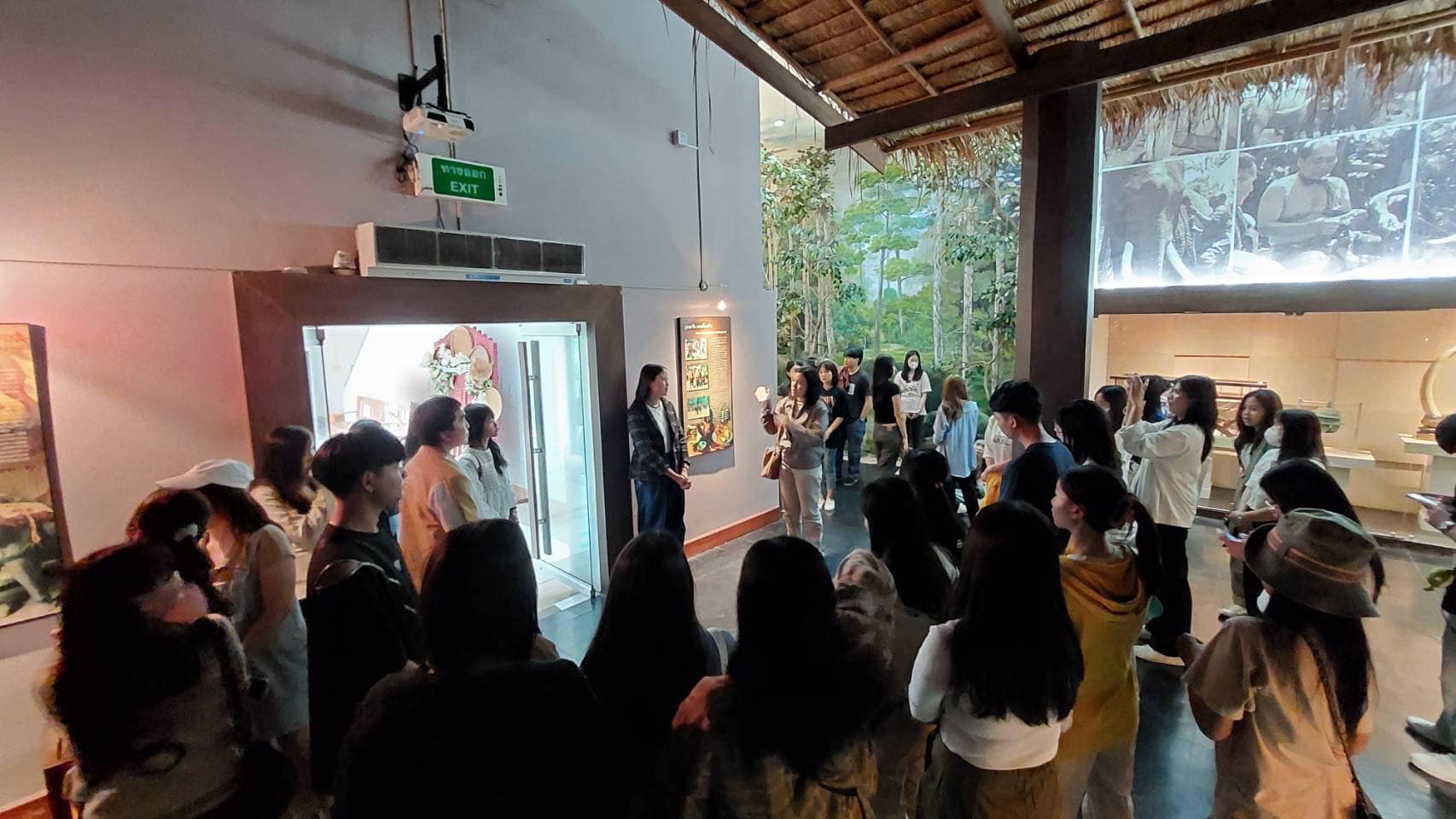วันอาทิตย์ที่ ๒ กรกฎาคม ๒๕๖๖ เวลา ๑๓.๓๐ น. คณะนักศึกษาและอาจารย์สาขาภาษาไทย คณะครุศาสตร์ มหาวิทยาลัยราชภัฏศรีสะเกษ จังหวัดศรีสะเกษ จำนวน ๖๖ คน เข้าเยี่ยมชมพิพิธภัณฑสถานแห่งชาติ สุรินทร์ โดยมีนพรัศม์ เมธีวราธนานันท์ ภัณฑารักษ์ปฏิบัติการ ให้การต้อนรับและบรรยายนำชม