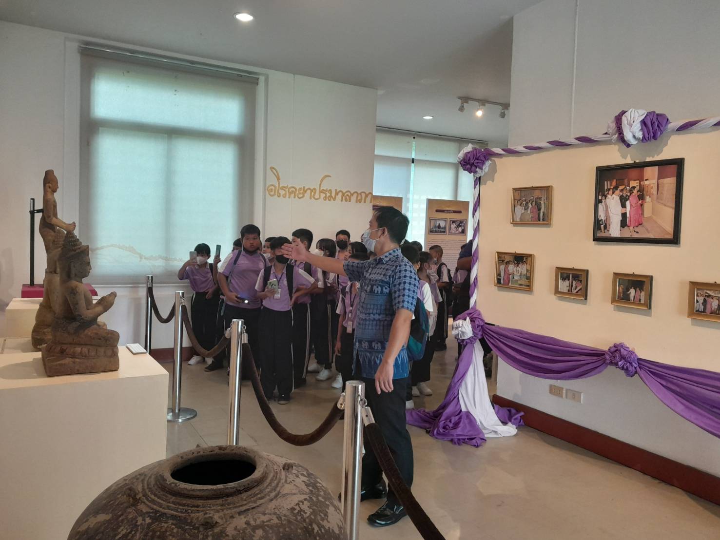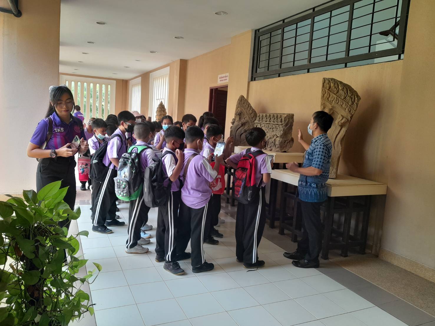 วันศุกร์ที่ ๗ กรกฎาคม ๒๕๖๖ นักเรียนชั้นประถมศึกษาที่ ๔ จำนวน ๓๓ คน ครู ๓ คน โรงเรียนอนุบาลทองอุ่น อำเภอท่าตูม จังหวัดสุรินทร์ เข้าเยี่ยมชมนิทรรศการพิพิธภัณฑสถานแห่งชาติ สุรินทร์ โดยมีนายกรภัทร์ สุขใหญ่ พนักงานประจำพิพิธภัณฑ์ ให้การต้อนรับและบรรยายนำชม