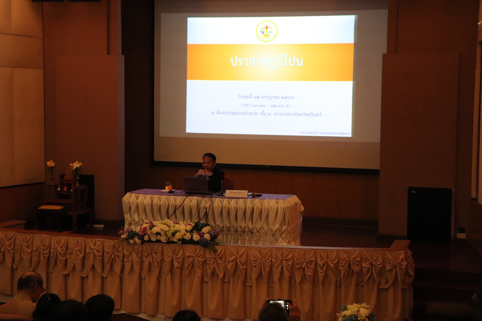 - การบรรยาย(พิเศษ)เรื่อง การพัฒนาโบราณสถานปราสาทภูมิโปน ตำบลดม อำเภอสังขะ จังหวัดสุรินทร์ วิทยากร นายอภิชาติ โสรีกุล หัวหน้ากลุ่มงานวิชาการผังเมือง รักษาการโยธาธิการจังหวัดและผังเมืองสุรินทร์