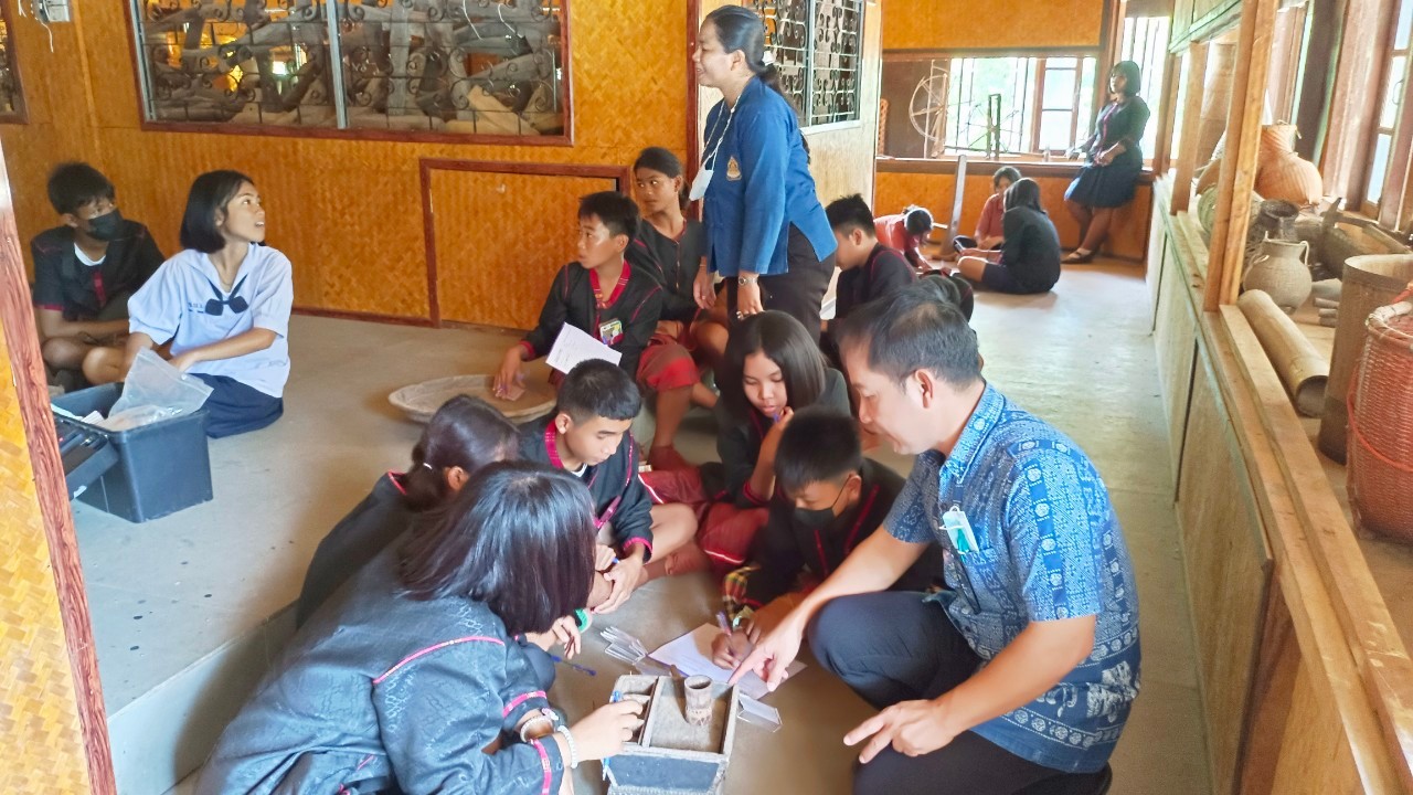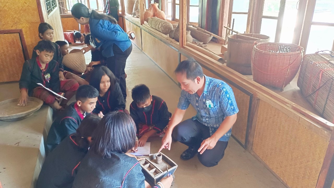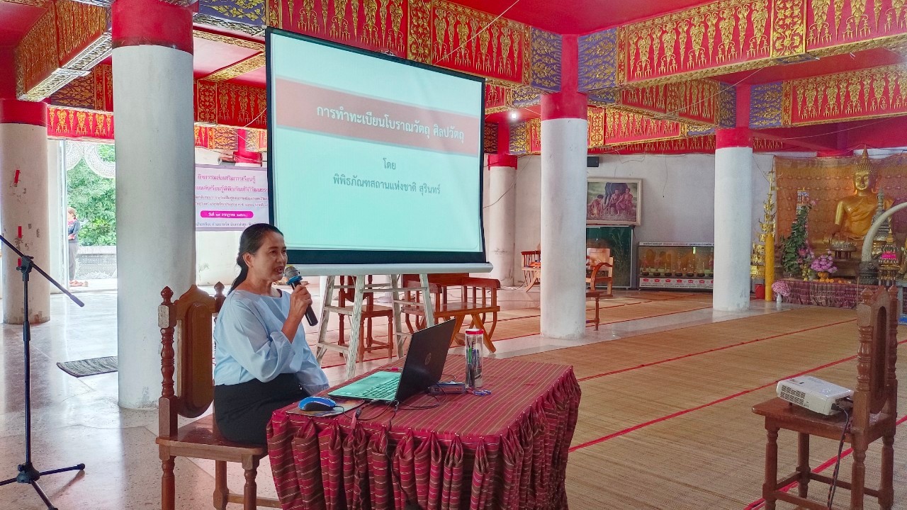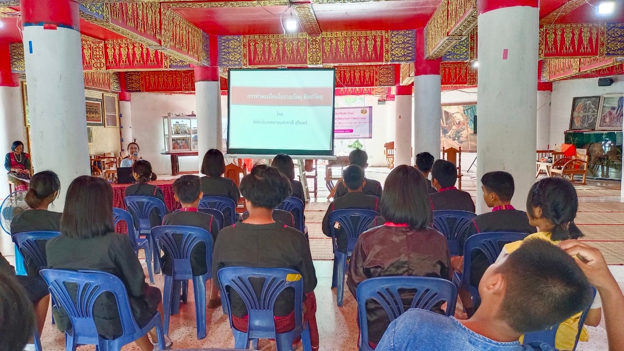 วันพุธที่ ๑๙ กรกฎาคม พ.ศ. ๒๕๖๖ นางปริญญา สุขใหญ่ หัวหน้าพิพิธภัณฑสถานแห่งชาติ สุรินทร์ นายนพรัศม์ เมธีวราธนานันท์ ภัณฑารักษ์ปฏิบัติการ และนายกรภัทร์ สุขใหญ่ พนักงานประจำพิพิธภัณฑ์ ร่วมกิจกรรมส่งเสริมการเรียนรู้และพัฒนาแหล่งเรียนรู้พิพิธภัณฑ์วิถีวัฒนธรรมกูย ภายใต้โครงการส่งเสริมสนับสนุนการฟื้นฟูขนบธรรมเนียมประเพณีวัฒนธรรมท้องถิ่นของจังหวัดสุรินทร์ ประจำปีงบประมาณ ๒๕๖๖ ณ วัดป่าอาเจียง ตำบลกระโพ อำเภอท่าตูม จังหวัดสุรินทร์ และเป็นวิทยากรบรรยายการจัดทำทะเบียนโบราณวัตถุ ศิลปวัตถุ แก่ผู้เข้าร่วมกิจกรรม จัดโดยสำนักงานวัฒนธรรมจังหวัดสุรินทร์