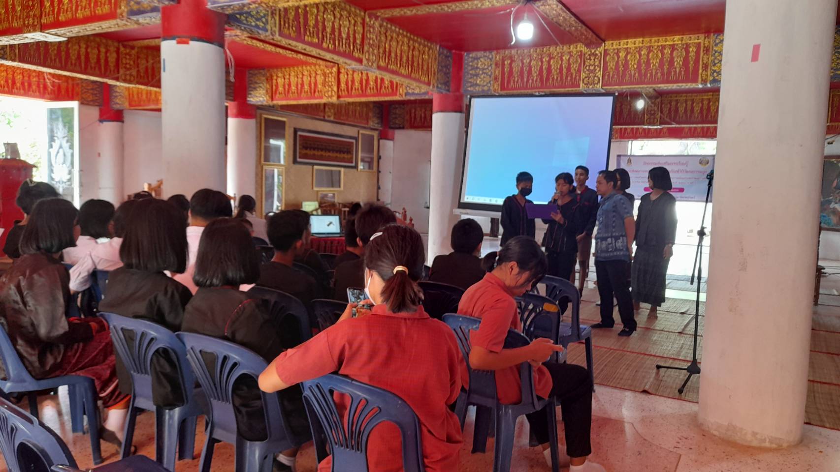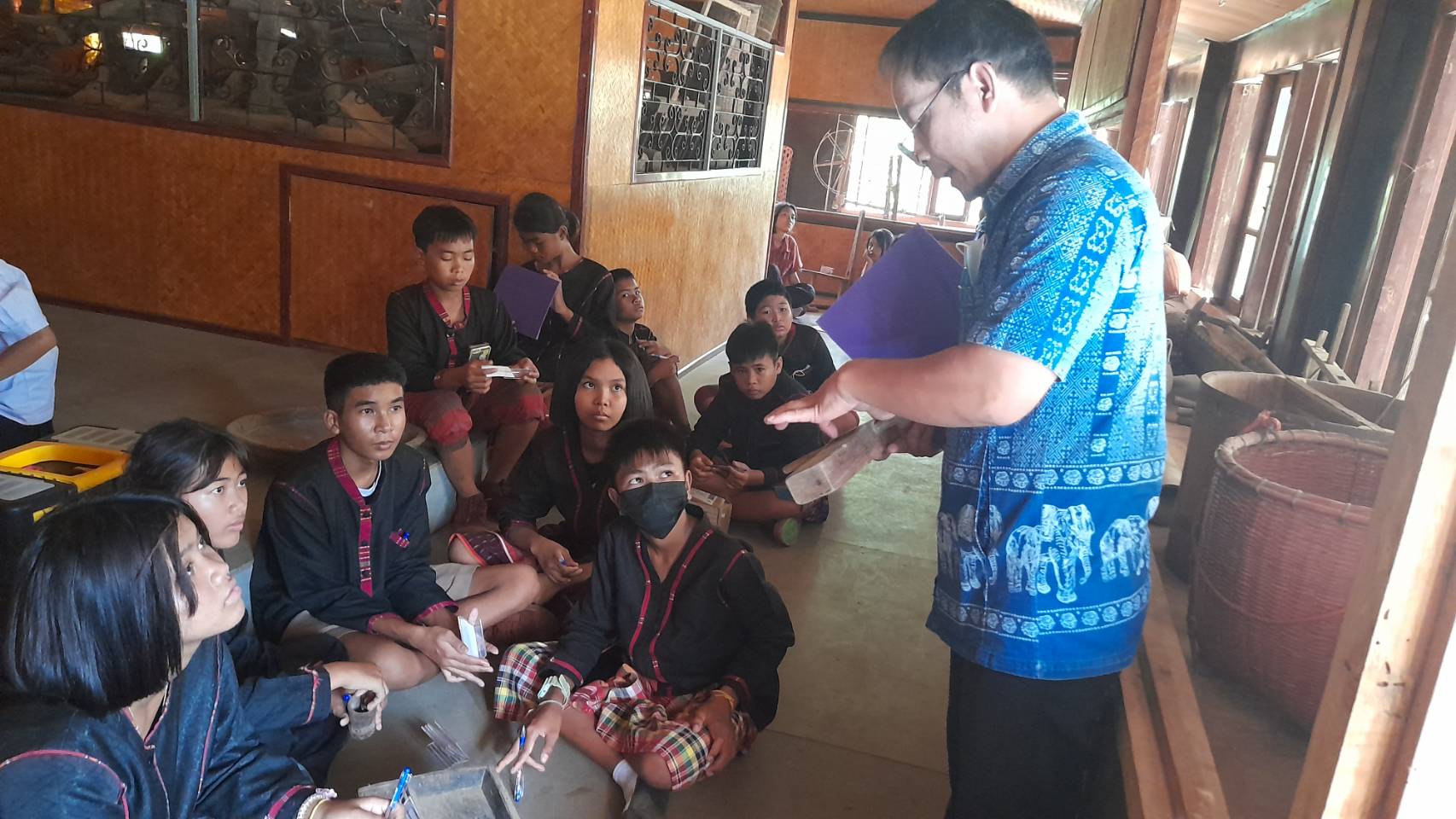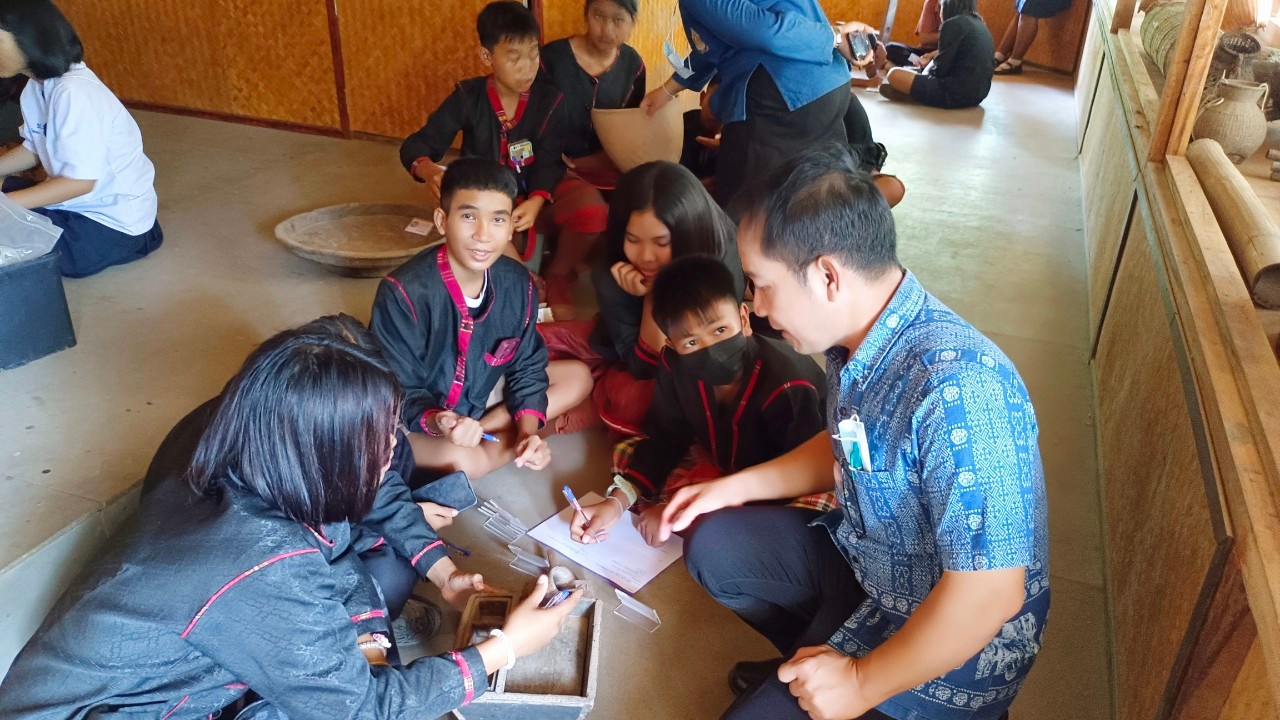 วันพุธที่ ๑๙ กรกฎาคม พ.ศ. ๒๕๖๖ นางปริญญา สุขใหญ่ หัวหน้าพิพิธภัณฑสถานแห่งชาติ สุรินทร์ นายนพรัศม์ เมธีวราธนานันท์ ภัณฑารักษ์ปฏิบัติการ และนายกรภัทร์ สุขใหญ่ พนักงานประจำพิพิธภัณฑ์ ร่วมกิจกรรมส่งเสริมการเรียนรู้และพัฒนาแหล่งเรียนรู้พิพิธภัณฑ์วิถีวัฒนธรรมกูย ภายใต้โครงการส่งเสริมสนับสนุนการฟื้นฟูขนบธรรมเนียมประเพณีวัฒนธรรมท้องถิ่นของจังหวัดสุรินทร์ ประจำปีงบประมาณ ๒๕๖๖ ณ วัดป่าอาเจียง ตำบลกระโพ อำเภอท่าตูม จังหวัดสุรินทร์ และเป็นวิทยากรบรรยายการจัดทำทะเบียนโบราณวัตถุ ศิลปวัตถุ แก่ผู้เข้าร่วมกิจกรรม จัดโดยสำนักงานวัฒนธรรมจังหวัดสุรินทร์