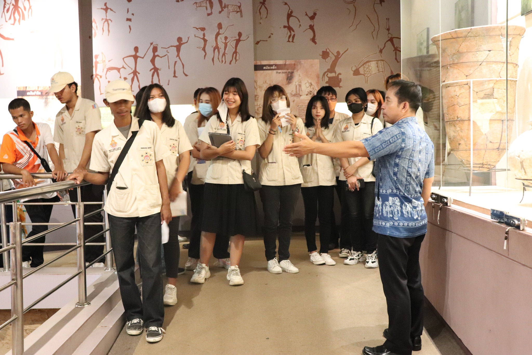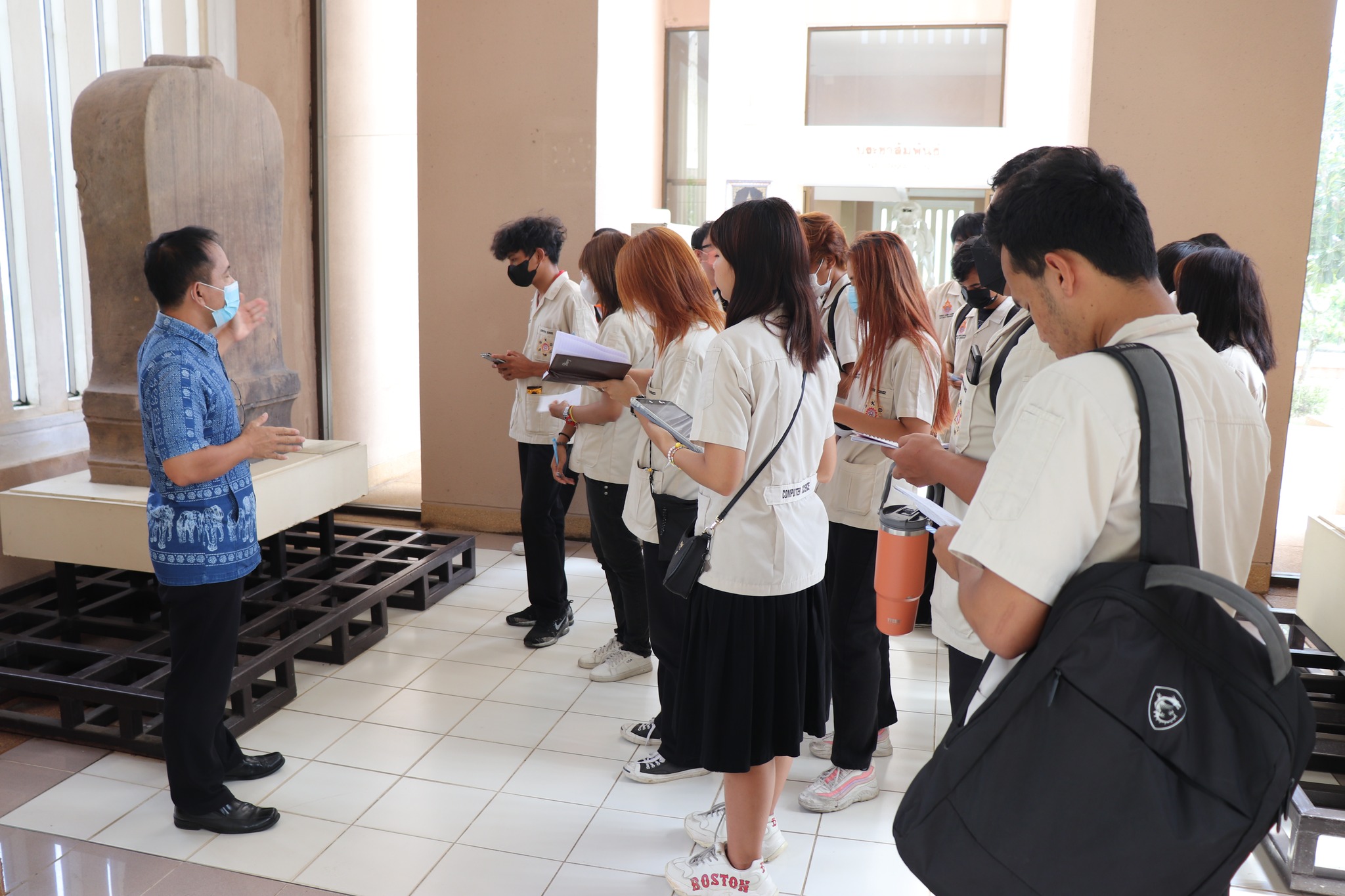 วันศุกร์ที่ ๔ สิงหาคม พ.ศ. ๒๕๖๖ เวลา ๑๔.๒๐ น. นักศึกษาชั้นปีที่ ๒ สาขาเทคโนโลยีคอมพิวเตอร์ คณะเกษตรศาสตร์และเทคโนโลยี มหาวิทยาลัยเทคโนโลยีราชมงคลอีสาน วิทยาเขตสุรินทร์ จำนวน ๒๒ คน อาจารย์ ๑ คน เข้าเยี่ยมชมพิพิธภัณฑสถานแห่งชาติ สุรินทร์ โดยมีนายกรภัทร์ สุขใหญ่ พนักงานประจำพิพิธภัณฑ์ ให้การต้อนรับและบรรยายนำชม