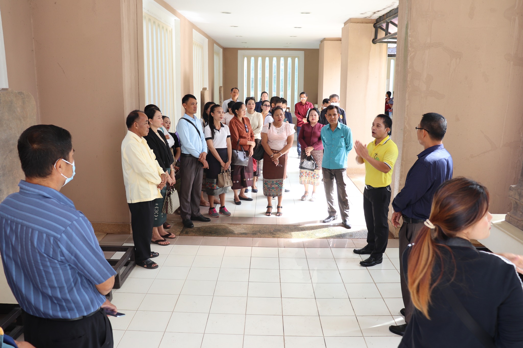 วันพุธที่ ๙ สิงหาคม พ.ศ. ๒๕๖๖ เวลา ๐๘.๓๐ น. มหาวิทยาลัยราชภัฏสุรินทร์นำคณะบุคลากรจากวิทยาลัยครูปากเซ และพิพิธภัณฑ์มรดกทางประวัติศาสตร์จำปาสัก ประเทศสาธารณรัฐประชาธิปไตยประชาชนลาว จำนวน ๔๐ คน เข้าเยี่ยมชมพิพิธภัณฑสถานแห่งชาติ สุรินทร์ โดยมีนายกรภัทร์ สุขใหญ่ พนักงานประจำพิพิธภัณฑ์ ให้การต้อนรับและบรรยายนำชม