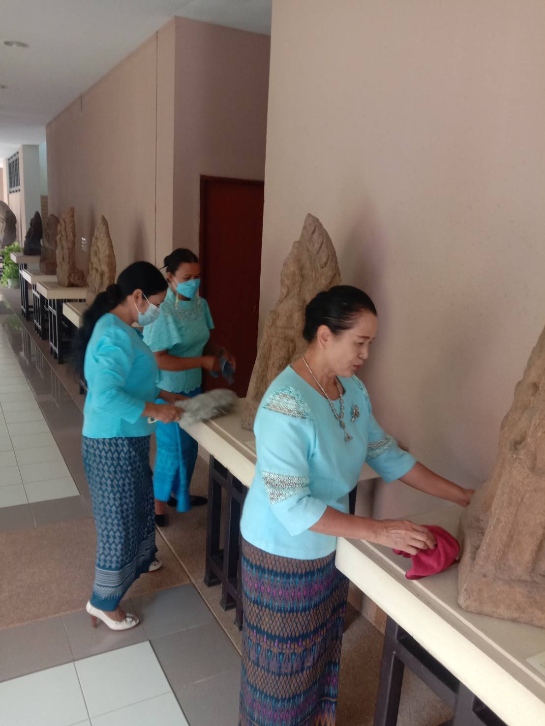 วันศุกร์ที่ ๑๑ สิงหาคม พ.ศ.๒๕๖๖ พิพิธภัณฑสถานแห่งชาติ สุรินทร์ นำโดย นางปริญญา สุขใหญ่ หัวหน้าพิพิธภัณฑสถานแห่งชาติ สุรินทร์ จัดพิธีถวายพระพรสมเด็จพระนางเจ้าสิริกิติ์ พระบรมราชินีนาถ พระบรมราชชนนีพันปีหลวงและกิจกรรมพัฒนาพิพิธภัณฑ์ เนื่องในโอกาสวันเฉลิมพระชนมพรรษา ๑๒ สิงหาคม ๒๕๖๖ นำโดยนางปริญญา สุขใหญ่ หัวหน้าพิพิธภัณฑสถานแห่งชาติ สุรินทร์ ข้าราชการ พนักงานราชการและเจ้าหน้าที่ กล่าวคำถวายคำสัตย์ปฏิญาณและพัฒนาพิพิธภัณฑ์โดยการทำความสะอาดห้องจัดแสดงนิทรรศการ