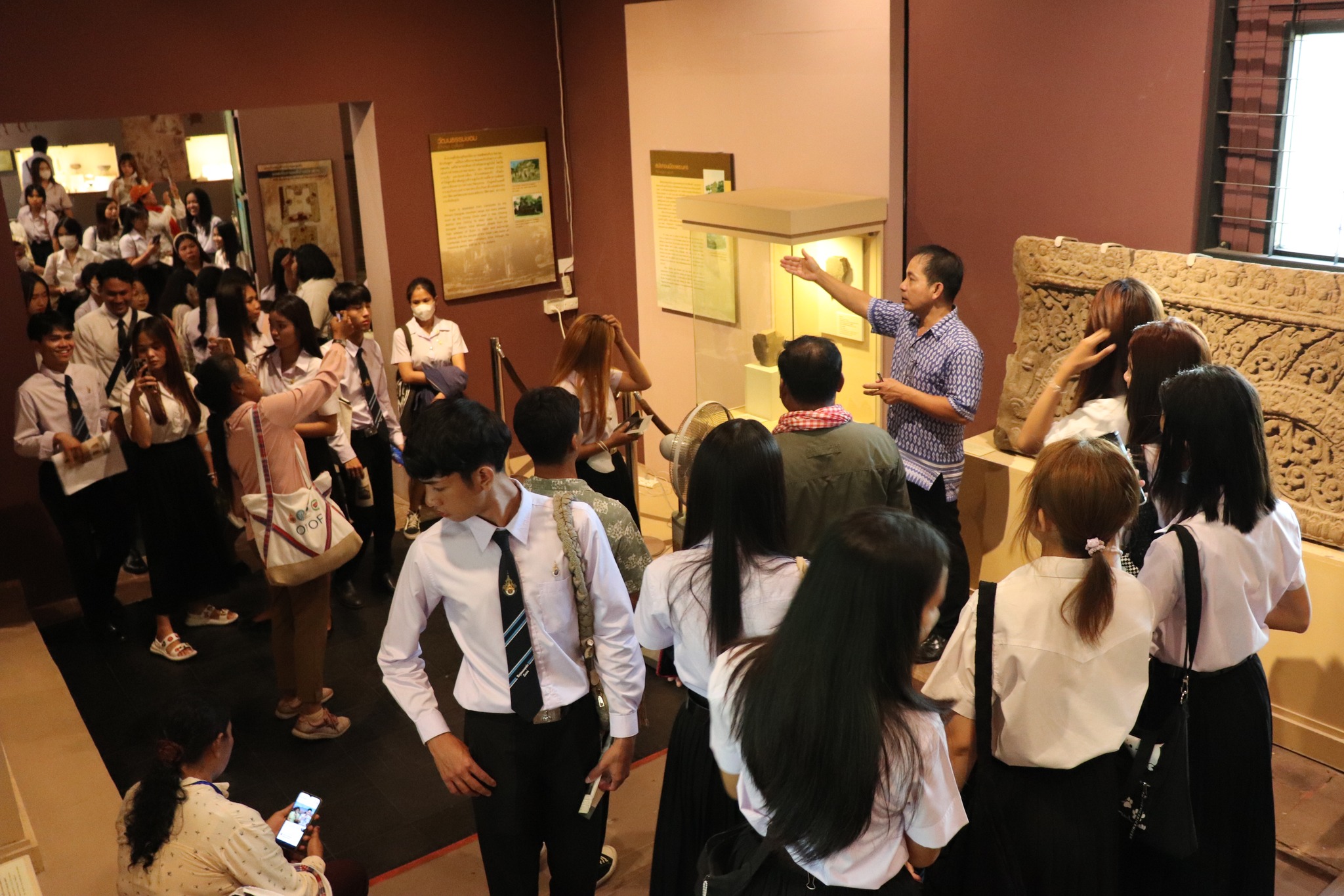 วันศุกร์ที่ ๑๑ สิงหาคม ๒๕๖๖ เวลา ๑๓.๓๐ น. นักศึกษารายวิชาสุรินทร์ศึกษา สาขาการท่องเที่ยวและการโรงแรม คณะเทคโนโลยีการจัดการ มหาวิทยาลัยเทคโนโลยีราชมงคลอีสาน วิทยาเขตสุรินทร์ จำนวน ๖๐ คน เข้าเยี่ยมชมพิพิธภัณฑสถานแห่งชาติ สุรินทร์ โดยมีนายกรภัทร์ สุขใหญ่ พนักงานประจำพิพิธภัณฑ์ ให้การต้อนรับและบรรยายนำชม