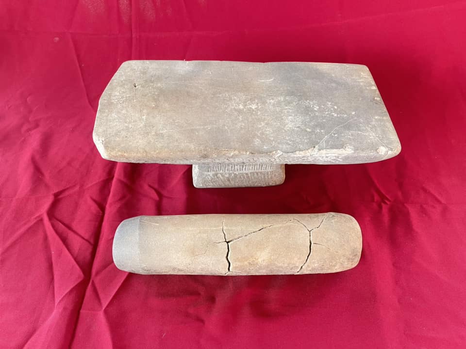 วันพุธที่ ๑๖ สิงหาคม พ.ศ. ๒๕๖๖ เวลา ๑๐.๐๐ น. นางปริญญา สุขใหญ่ หัวหน้าพิพิธภัณฑสถานแห่งชาติ สุรินทร์ และนายนพรัศม์ เมธีวราธนานันท์ ภัณฑารักษ์ปฏิบัติการ ได้รับประสานว่ามีการขุดพบโบราณวัตถุในพื้นที่บริเวณโนนยาง บ้านโนนขวาว ต.น้ำเขียว อ.รัตนบุรี จ.สุรินทร์ จึงเดินทางไปตรวจสอบซึ่งเป็นแท่นหินบด และลูกหินบด และตรวจสอบบริเวณที่ขุดพบเป็นพื้นที่ทำนาอยู่ห่างจากหมู่บ้านโนนขวาวประมาณ ๕๐๐ เมตร พร้อมรับมอบโบราณวัตถุดังกล่าวมาเก็บรักษาเพื่อศึกษาต่อไป