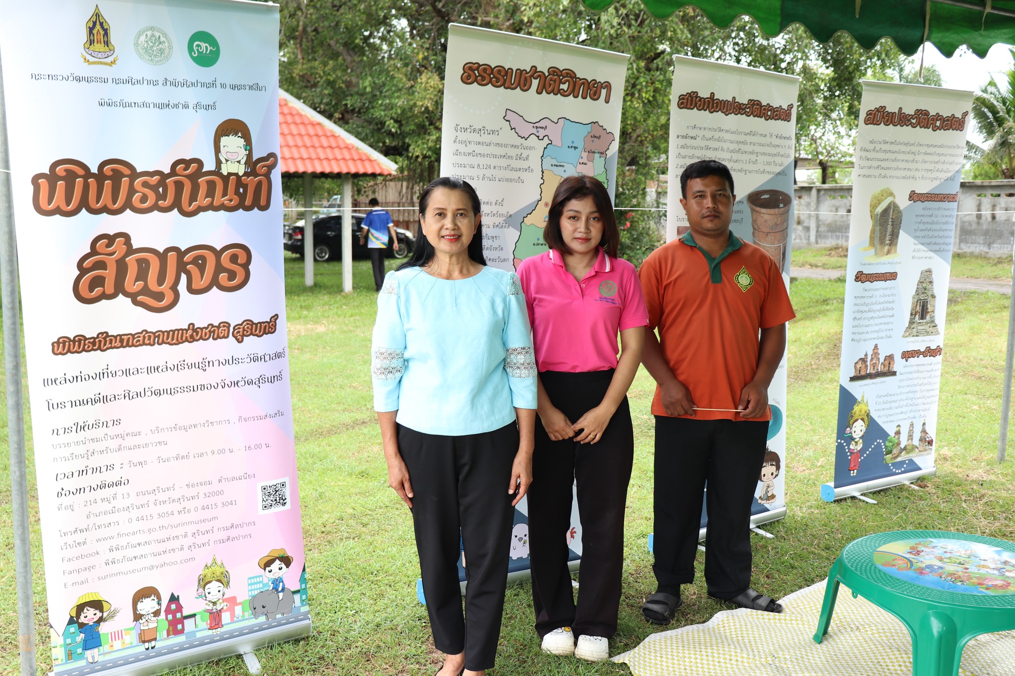 วันพฤหัสบดีที่ ๓๑ สิงหาคม พ.ศ. ๒๕๖๖ นางปริญญา สุขใหญ่ หัวหน้าพิพิธภัณฑสถานแห่งชาติ สุรินทร์ พร้อมเจ้าหน้าที่ จัดกิจกรรมโครงการพิพิธภัณฑ์สัญจร ประจำปีงบประมาณ พ.ศ.๒๕๖๖ โดยบูรณาการร่วมกับโครงการจังหวัดสุรินทร์สร้างสุข สร้างรอยยิ้ม ประจำปีงบประมาณ พ.ศ.๒๕๖๖ และโครงการเหล่ากาชาดห่วงใยสร้างบ้านผู้ยากไร้และด้อยโอกาส เฉลิมพระเกียรติ ๖๗ พรรษา สมเด็จพระกนิษฐาธิราชเจ้า กรมสมเด็จพระเทพรัตนราชสุดาฯ สยามบรมราชกุมารี จังหวัดสุรินทร์ ประจำปีงบประมาณ พ.ศ.๒๕๖๖ ณ โรงเรียนบ้านแสรออ ตำบลปราสาททอง อำเภอเขวาสินรินทร์ จังหวัดสุรินทร์ กิจกรรมประกอบด้วยการออกหน่วยบริการประชาชน จัดแสดงนิทรรศการเคลื่อนที่ แจกแผ่นพับประชาสัมพันธ์หน่วยงาน และกิจกรรมประดิษฐ์พวงมโหตร