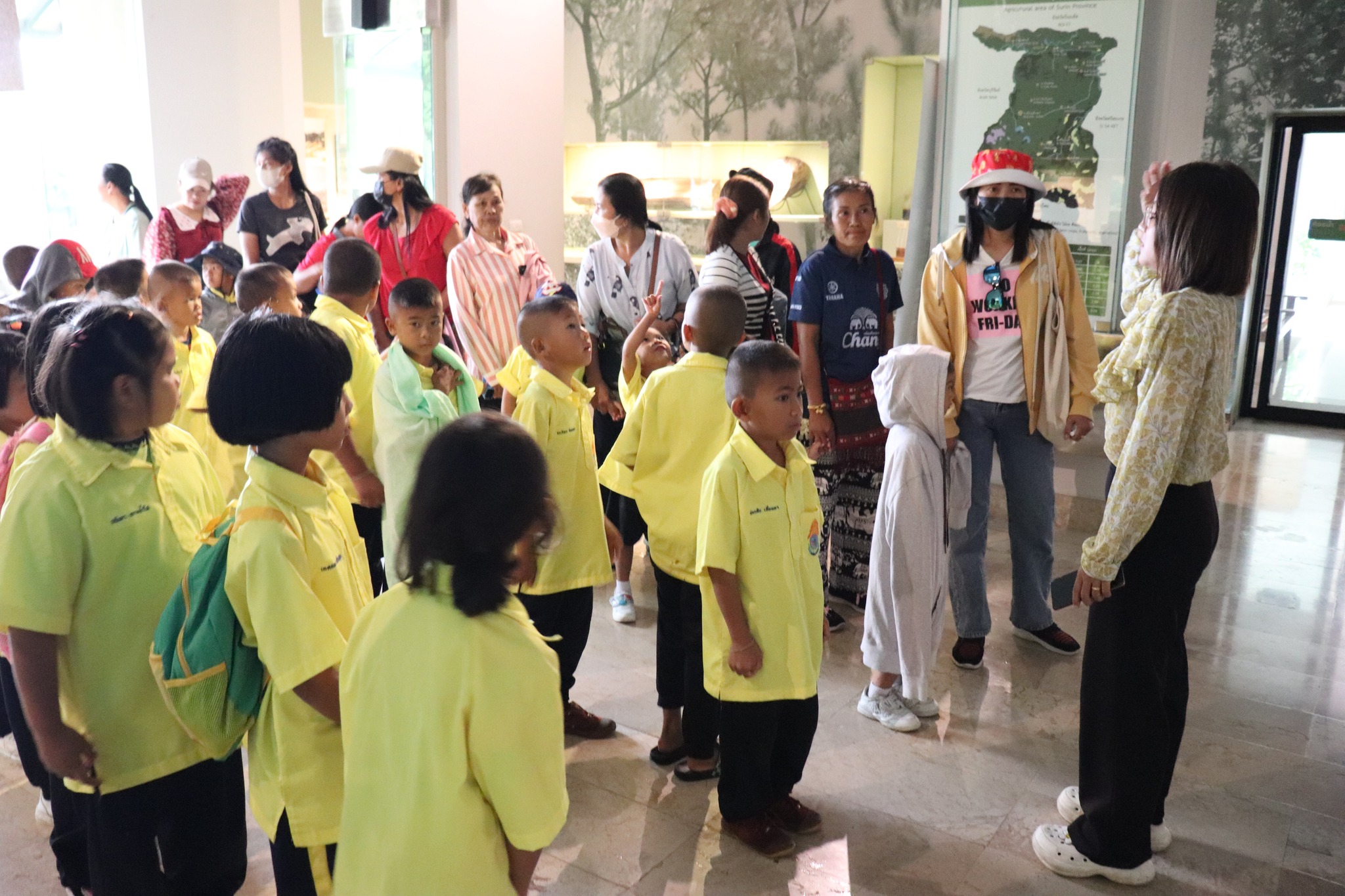 วันพุธ ที่ ๖ กันยายน พ.ศ. ๒๕๖๖ เวลา ๐๙.๓๐ น. นักเรียนชั้นอนุบาล ๒ ถึง ชั้นประถมศึกษาที่ ๖ โรงเรียนบ้านตูม ตำบลตูมใหญ่ อำเภอคูเมือง จังหวัดบุรีรัมย์ จำนวน ๑๔๗ คน คุณครูและผู้ปกครอง ๔๕ คน เข้าเยี่ยมชมพิพิธภัณฑสถานแห่งชาติ สุรินทร์ โดยมีนางสาวอาภาภรณ์ เปล่งปลั่งศรี นักวิชาการวัฒนธรรม นางถนอม หลวงกลาง นายแก่นแก้ว หอมนวล พนักงานประจำห้องทุกคน ให้การต้อนรับและบรรยายนำชม