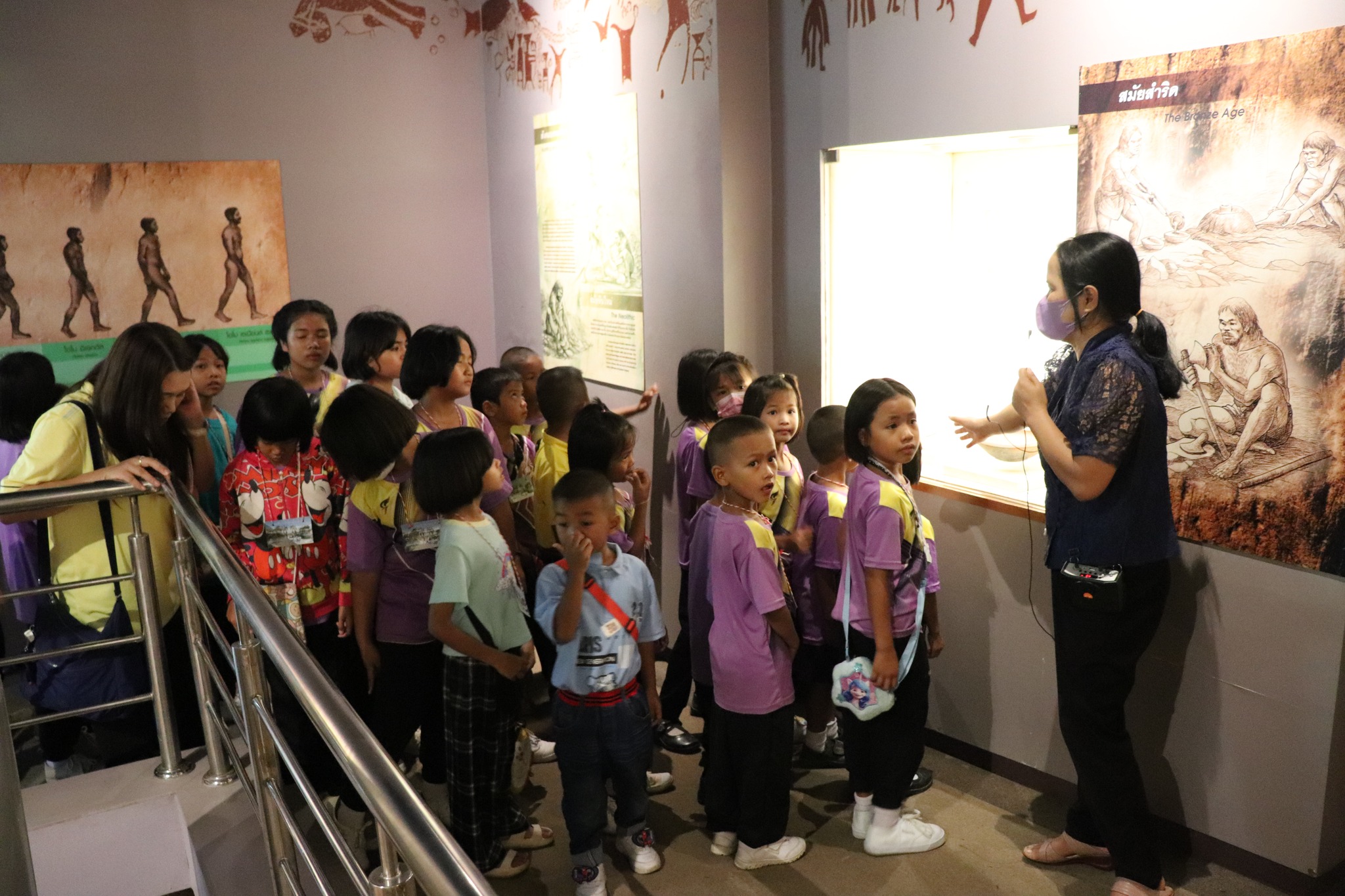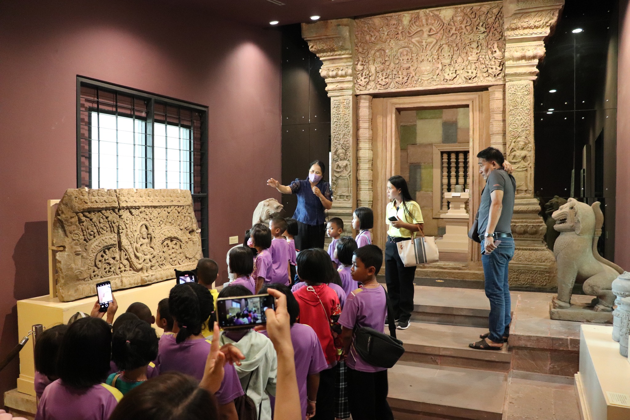 วันพฤหัสบดีที่ ๒๘ กันยายน พ.ศ. ๒๕๖๖ เวลา ๑๔.๓๐ น. นักเรียนชั้นอนุบาล ๑ ถึงชั้นประถมศึกษาที่ ๖ โรงเรียนบ้านโนนเสน่ห์ ตำบลหนองบอน อำเภอประโคนชัย จังหวัดบุรีรัมย์ จำนวน ๔๑ คน คุณครูและผู้ปกครอง ๑๕ คน เข้าเยี่ยมชมพิพิธภัณฑสถานแห่งชาติ สุรินทร์ โดยมีนางศรีสุดา ศรีสด พนักงานประจำห้อง ให้การต้อนรับและบรรยายนำชม