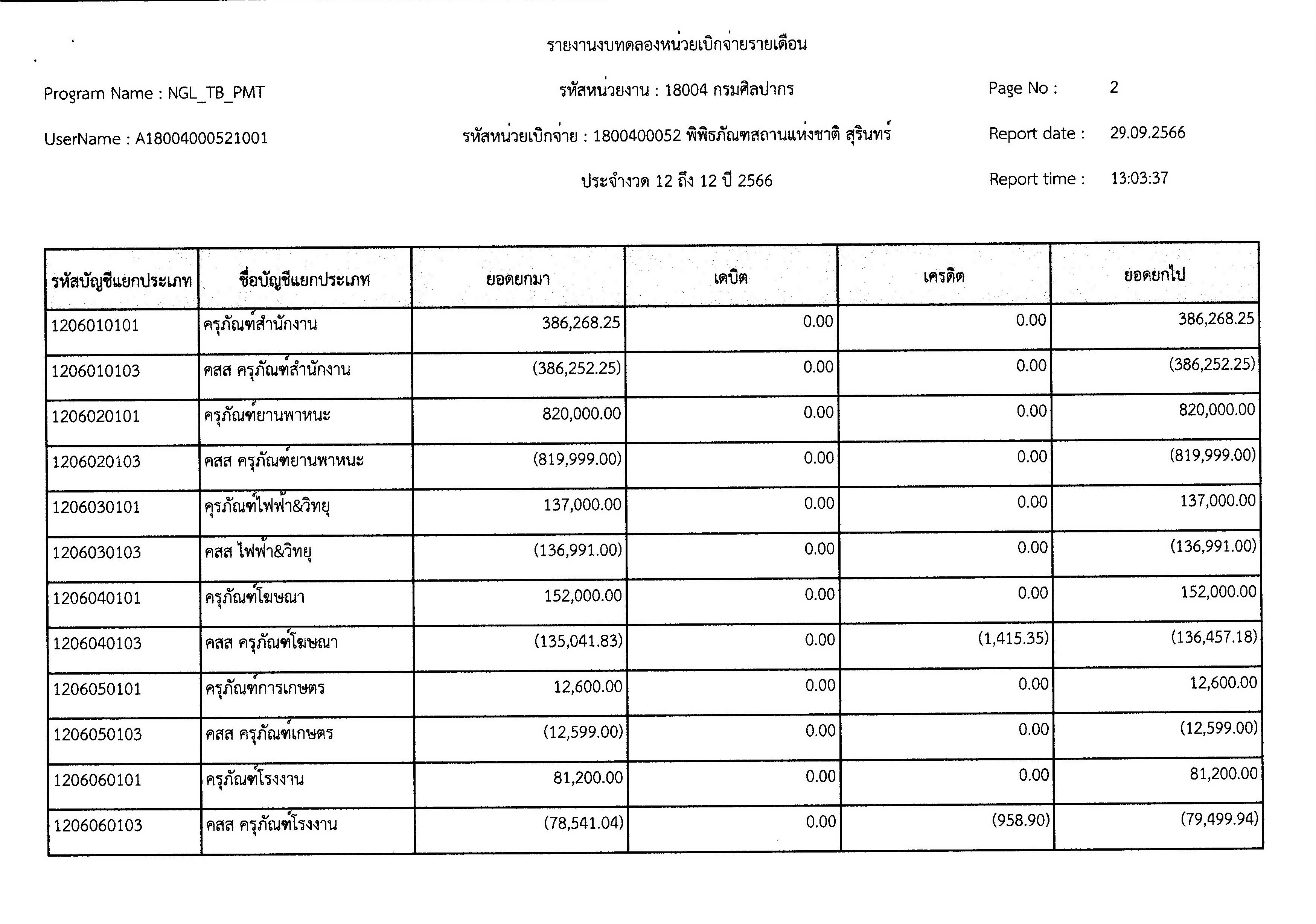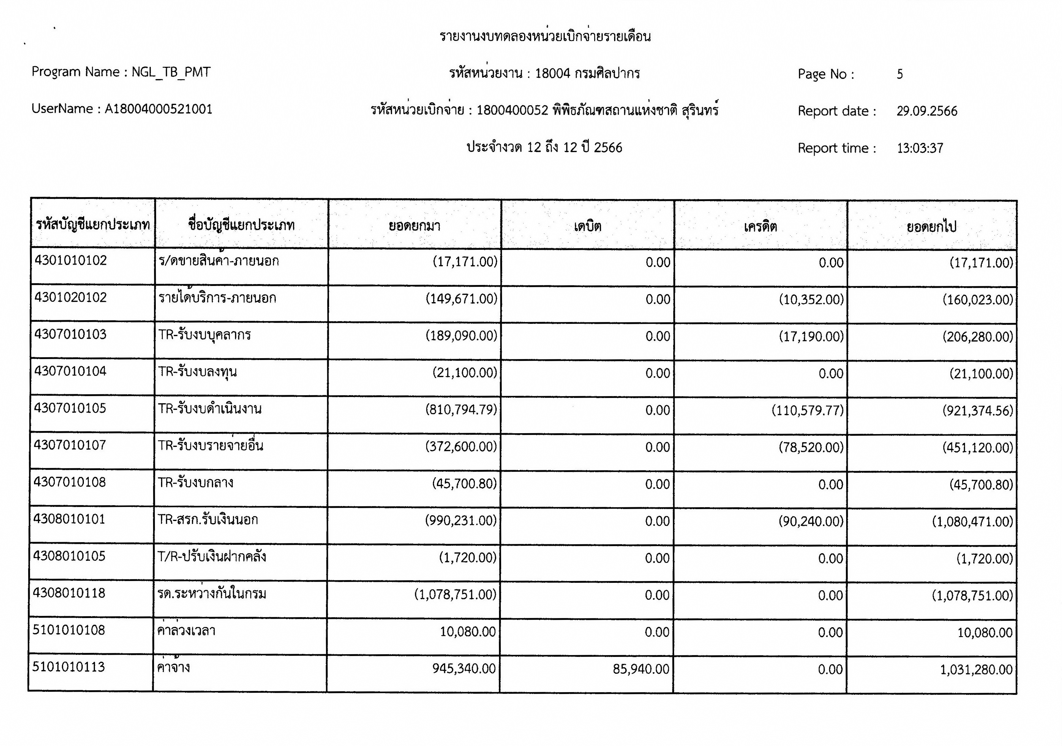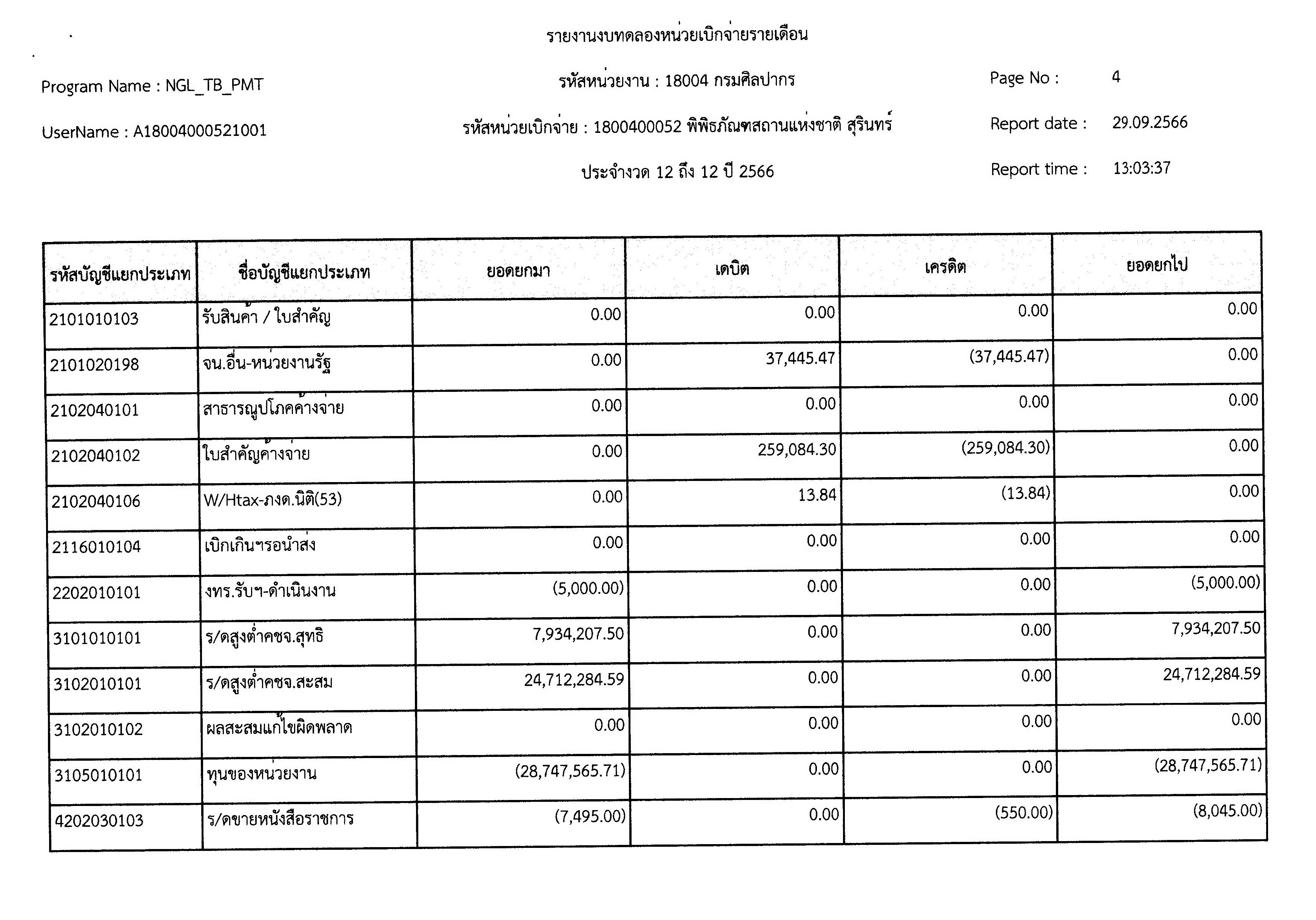 รายงานงบทดลองหน่วยเบิกจ่ายรายเดือน กันยายน พ.ศ. ๒๕๖๖